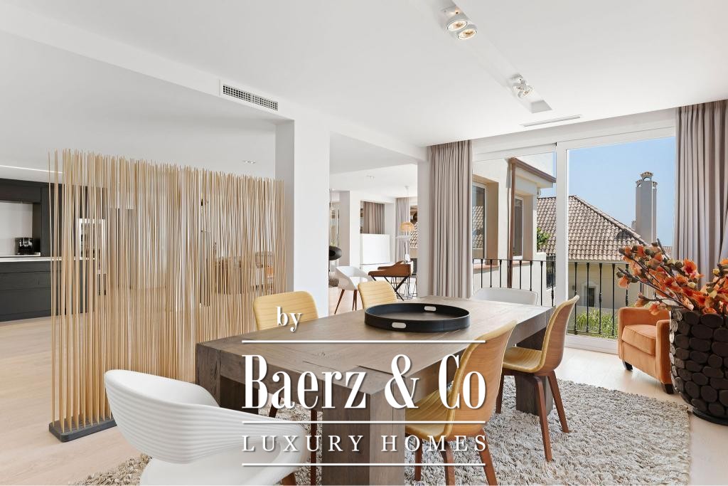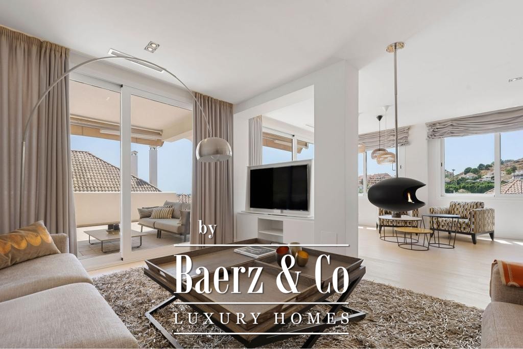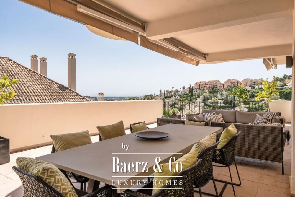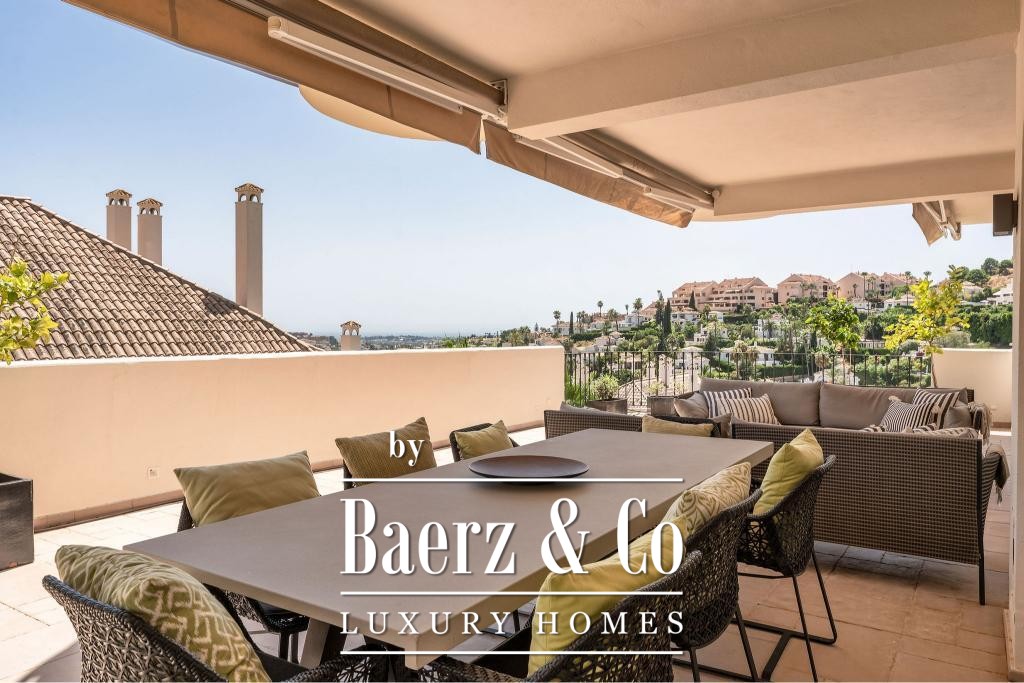 Dit duplexappartement in Marbella ligt in de geliefde Aloha-community in Nueva Andalucía en biedt een harmonieuze balans tussen hedendaagse architectuur en verfijnd design. De woning van 232 m² straalt vanaf het eerste moment discretie en comfort uit, met een royale indeling over twee verdiepingen die privacy combineert met open, gastvrije leefruimtes. De woning beschikt over vier slaapkamers en vier badkamers, elk ontworpen met oog voor rust en gebruiksgemak. Strategisch geplaatste terrassen onthullen een panoramisch uitzicht op de Middellandse Zee en de omliggende bergen.