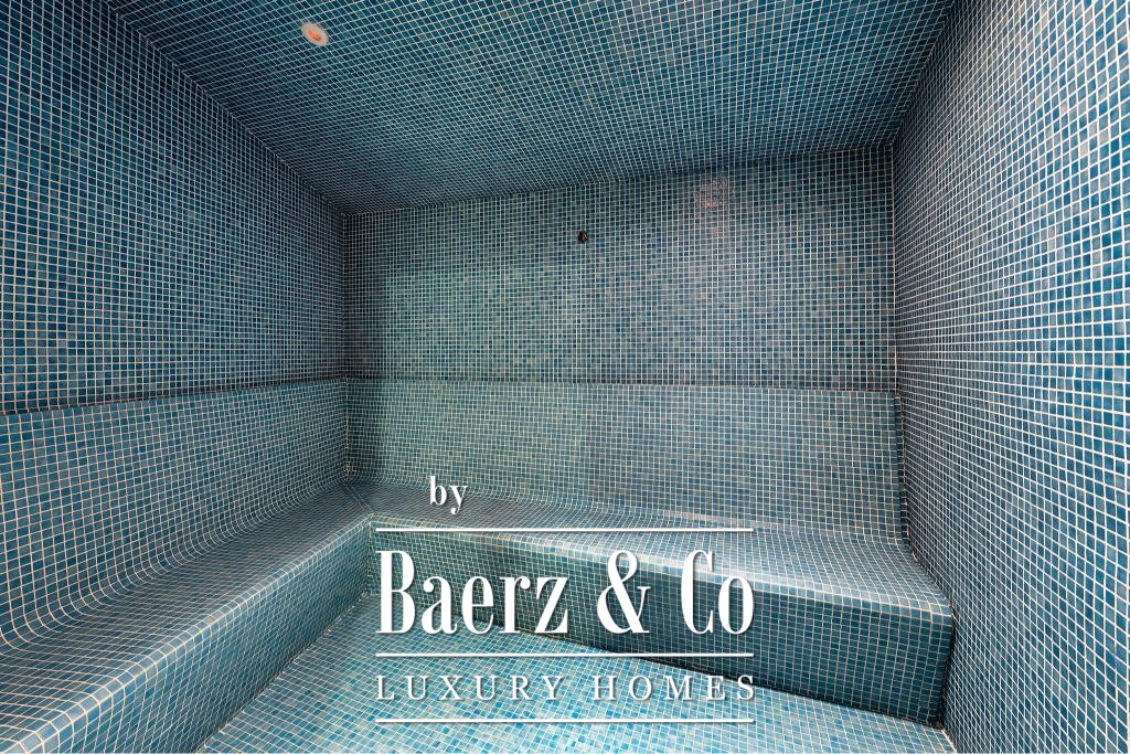 De hoofdverdieping kenmerkt zich door een open ontwerp met een high-end keuken voorzien van premium Gaggenau-apparatuur, een riante woonkamer en een stijlvolle eetruimte. Hoogwaardige houten vloeren, elektrische rolluiken, een geavanceerd alarmsysteem en een lift onderstrepen het samenspel van elegantie en functionaliteit. Twee ondergrondse parkeerplaatsen en twee bergingen verhogen het dagelijkse gemak.