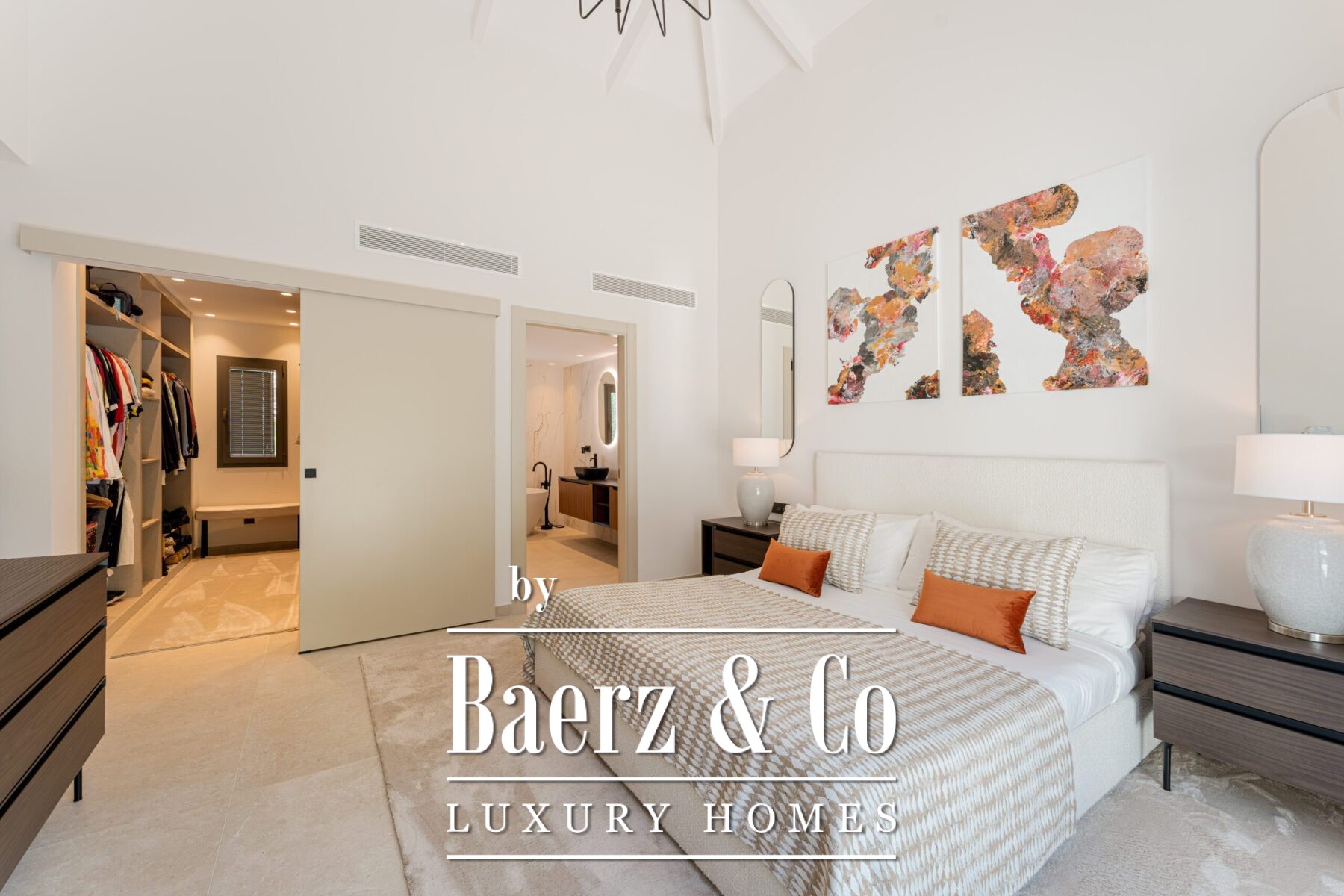 Villa Nueva Andalucía Marbella is een toonbeeld van verfijnd design en ingetogen luxe en biedt royale, eigentijdse leefruimtes in het serene hart van La Cerquilla. Deze in 2025 gerenoveerde villa met vijf slaapkamers combineert functioneel ontwerp met elegante, hoogwaardige interieurafwerking en weerspiegelt een moderne levensstijl waarin licht en comfort centraal staan. Gelegen in de prestigieuze Golfvallei van Marbella, bevindt het pand zich op korte afstand van Los Naranjos, Las Brisas en Aloha Golf Club en zijn uitstekende voorzieningen en gastronomische restaurants, waaronder de befaamde eetgelegenheden van Puente Romano, binnen enkele minuten bereikbaar.
