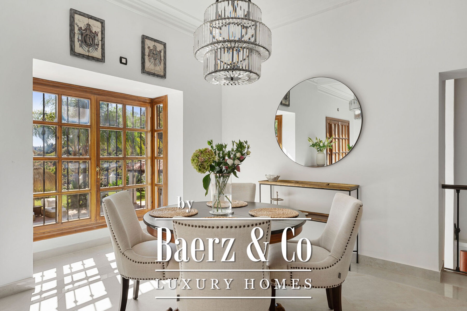 Villa El Madroñal Benahavís, met panoramisch zeezicht, vertegenwoordigt een zeldzaam niveau van verfijnd wonen in het hart van een geëerde beveiligde residentie. Deze volledig in 2024 gerenoveerde villa van 531 m² vormt een harmonieus samenspel tussen tijdloze Andalusische charme en doordachte moderne luxe. De woning is gesitueerd op een perceel van 5.344 m² en biedt weidse, blijvende uitzichten over zee en het berglandschap, ongeacht het seizoen, terwijl de zon haar zuidelijke en zuidwestelijke baan volgt.