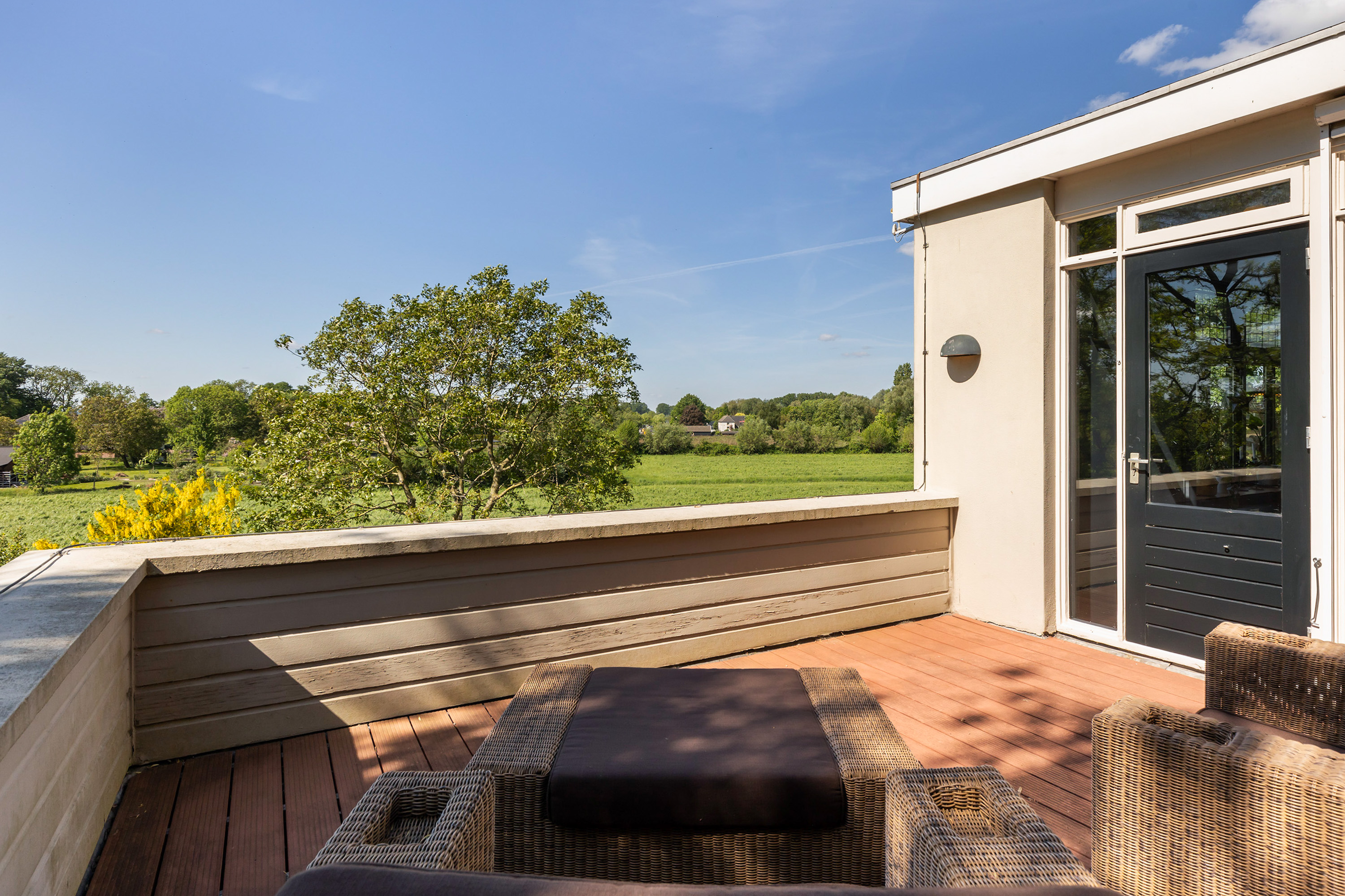 Een verdieping hoger ontvouwt zich een bijzonder element van de woning: de volledig gerestaureerde serre. Deze ruimte, omgeven door glas, biedt een spectaculair zicht op het veranderende rivierlandschap en vormt een ideale plek voor ontspanning of contemplatie. Aansluitend ligt een beschut dakterras. Op deze etage bevinden zich daarnaast drie comfortabele slaapkamers, een inloopgarderobe en een ruime badkamer voorzien van ligbad, douche, dubbele wastafel en toilet.