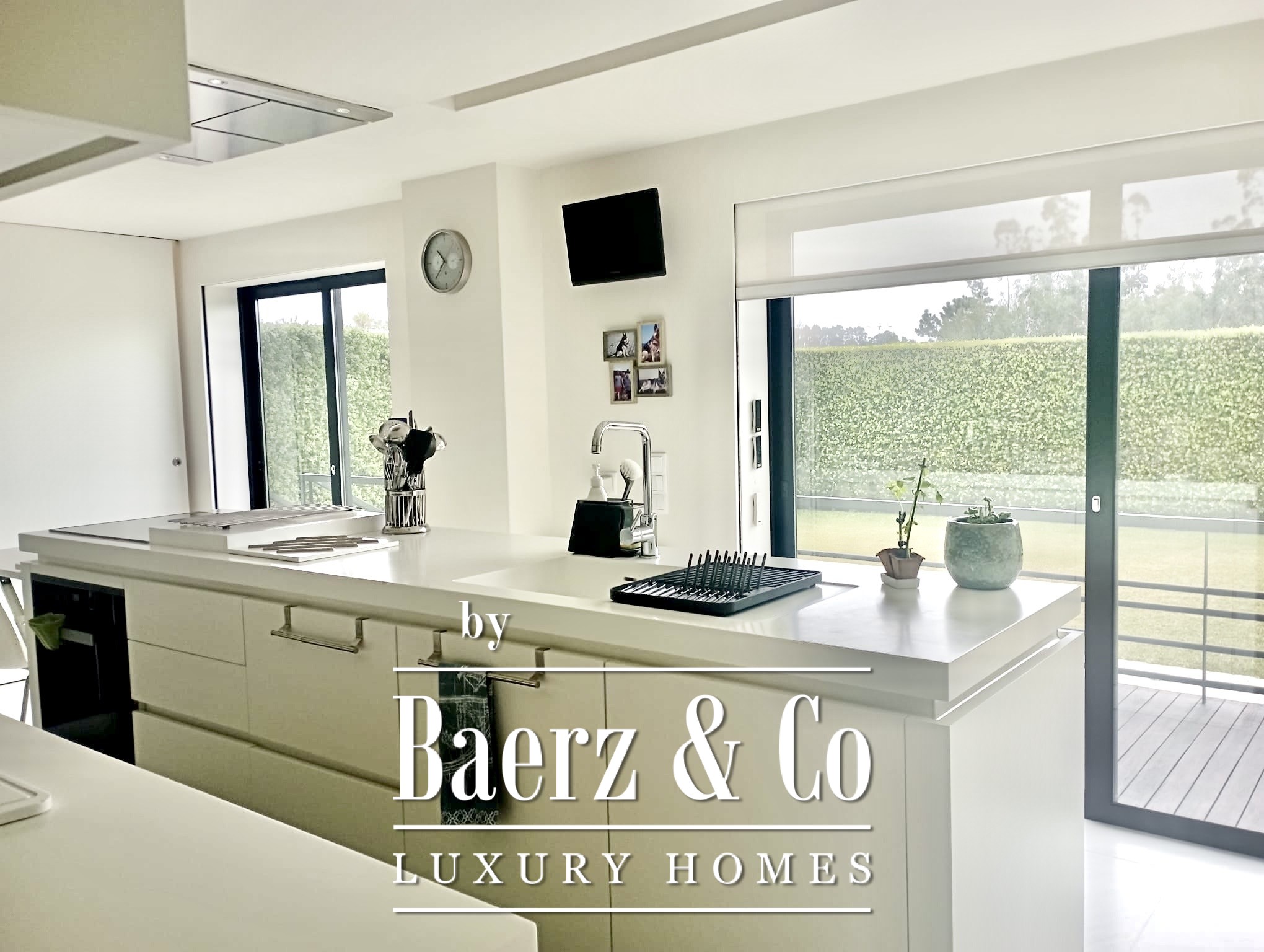 Twin villa Miramar Vila Nova de Gaia biedt een sfeer van verfijnde elegantie, gelegen op een perceel van 825 m² in een discrete woonwijk. De villa beslaat 341 m² en vormt een stijlvol vertrekpunt om te genieten van het veelgevraagde levensritme van Miramar, op slechts enkele stappen van het strand en de Miramar Golf Club. De begane grond opent met een royale entreehal die overloopt in een reeks onderling verbonden ontvangstruimtes: een woonkamer en eetkamer gescheiden door een sfeervolle haard, een volledig uitgeruste keuken met Miele-apparatuur op Corian werkbladen, en vier slaapkamers, waaronder twee suites en een gastentoilet. De leefruimtes komen direct uit op een terras van 35 m² en een privé tuin van 350 m², die zowel schaduw als zon biedt en ruimte laat voor een mogelijk zwembad.