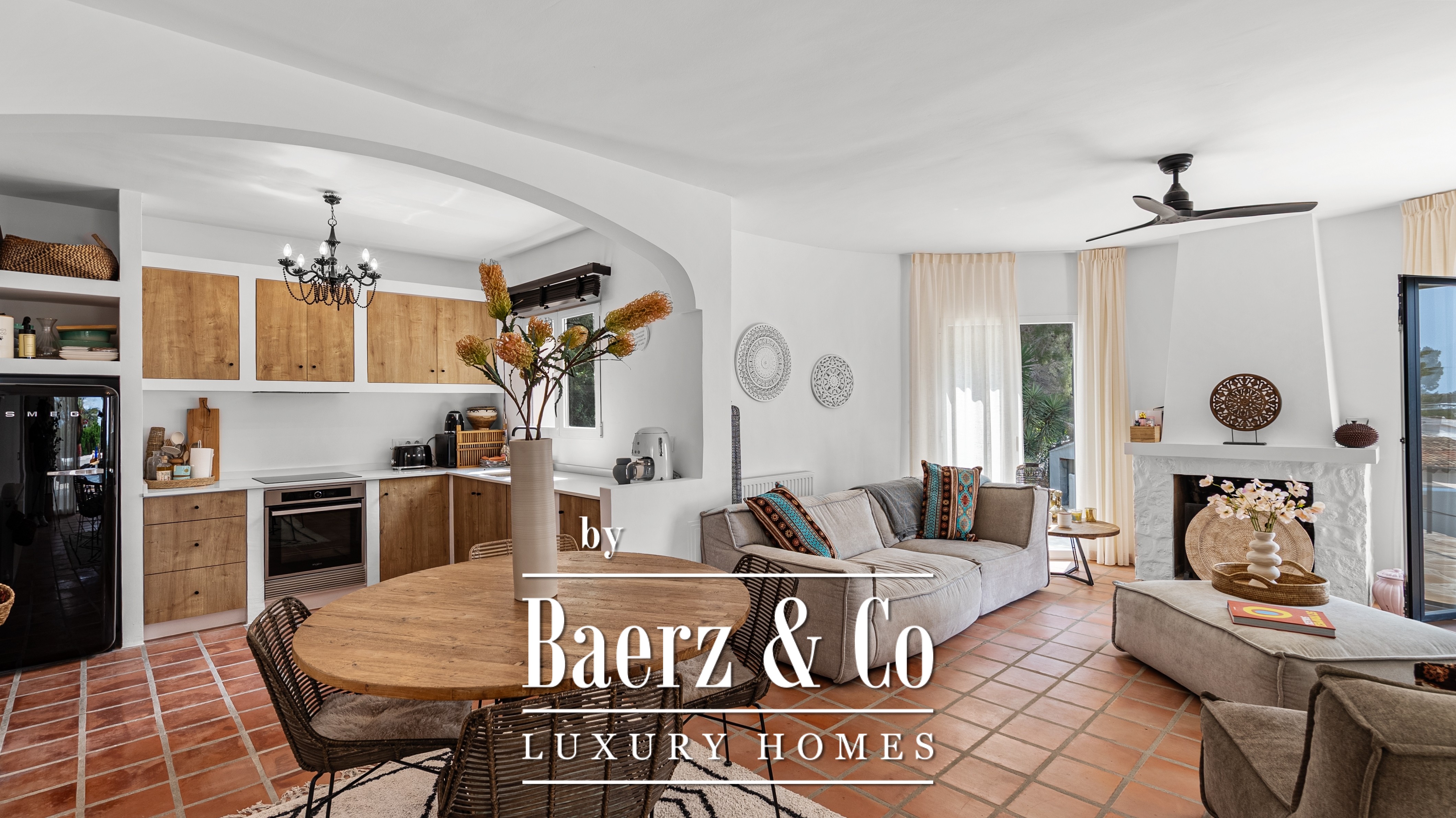 Op slechts 900 meter van het charmante strand van Cala L’Andragò, ontdek je deze stijlvolle en volledig gerenoveerde villa in warme mediterrane stijl. Een woning waar rust, comfort en een prachtig zeezicht elkaar ontmoeten in een harmonieuze setting.