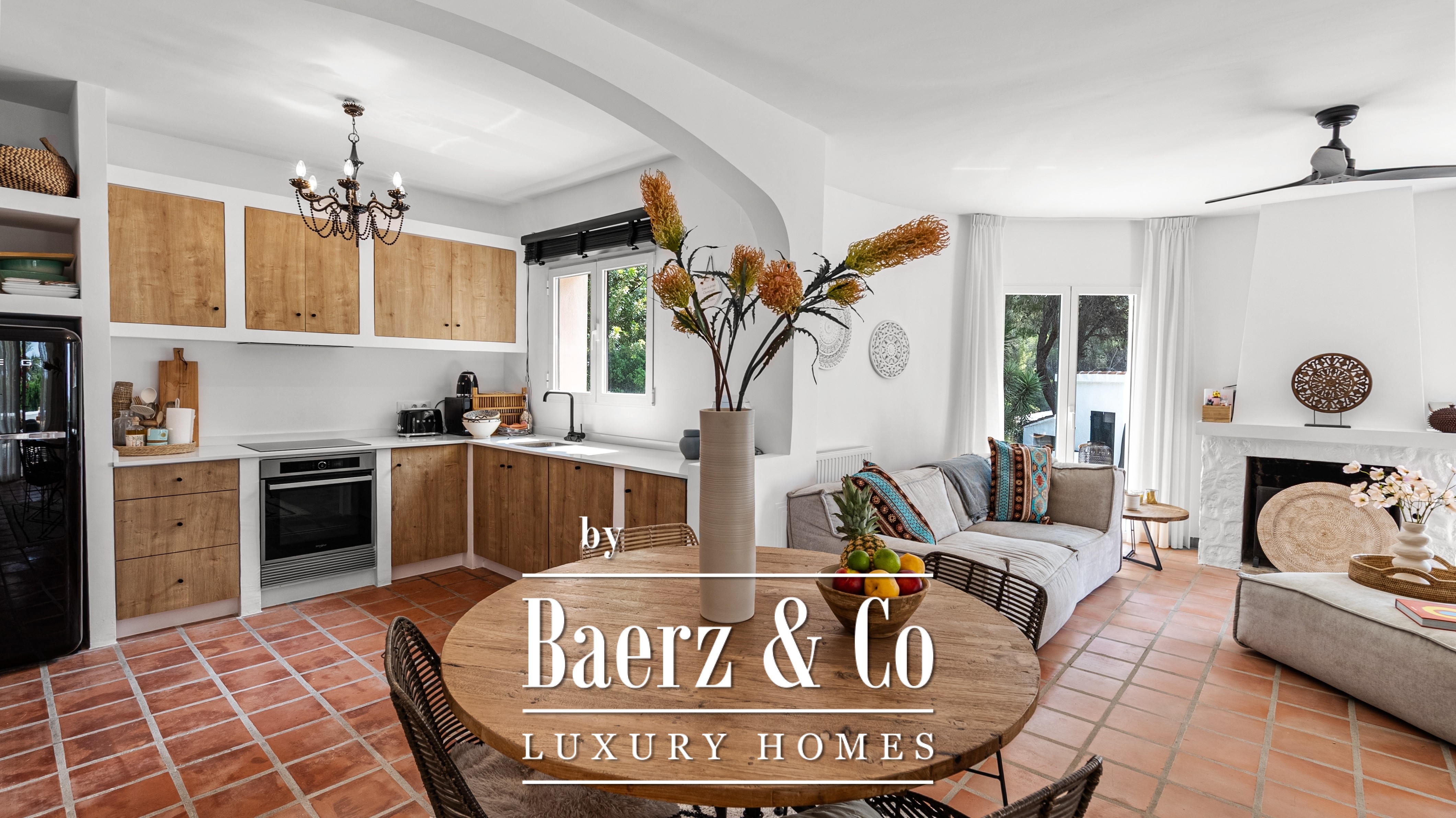 De open keuken vloeit naadloos over in de leefruimte, waar natuurlijk licht en sfeer samenkomen. De directe toegang tot het terras maakt het geheel perfect voor wie houdt van het buitenleven, met elke dag opnieuw het gevoel van vakantie.