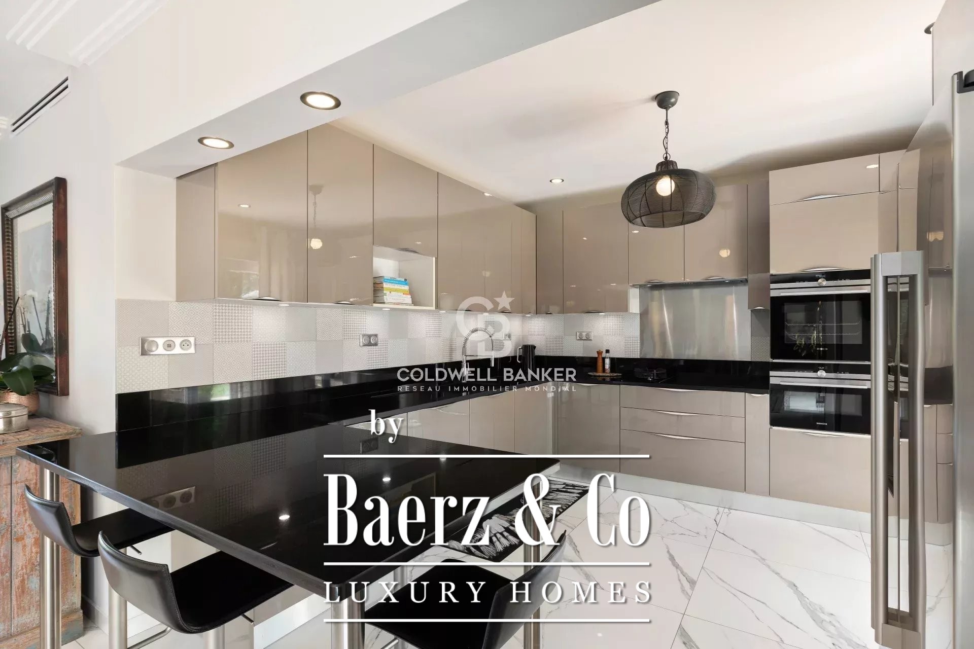 Het buitenleven vloeit moeiteloos over tussen de diverse terrassen, een verwarmd zwembad en een afzonderlijke zomer-eetkamer, allemaal gelegen boven de fraai aangelegde tuin. Comfort en veiligheid worden onderstreept door onder meer airconditioning, dubbele beglazing, alarm- en intercomsystemen, een elektrische poort en zonwering.
