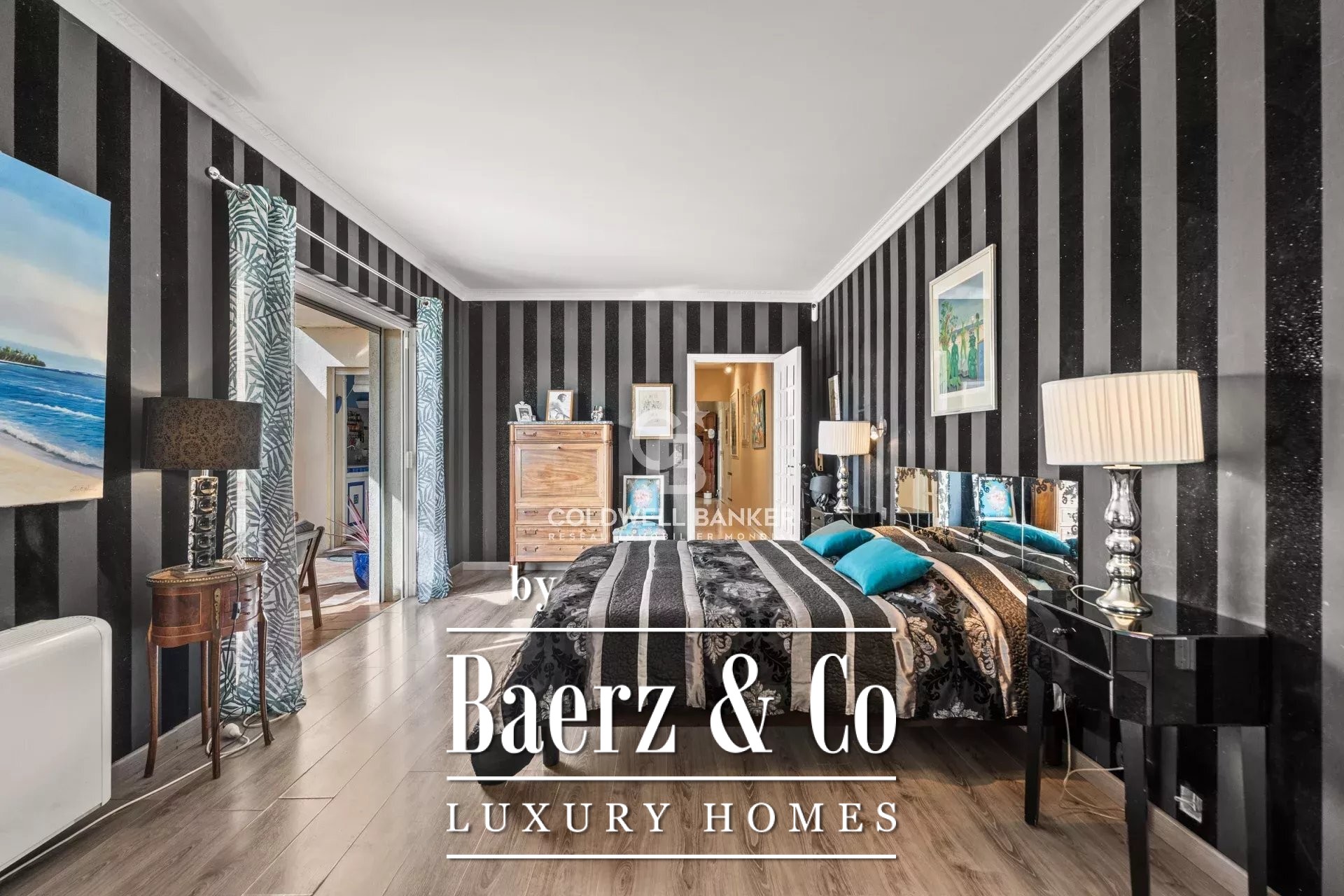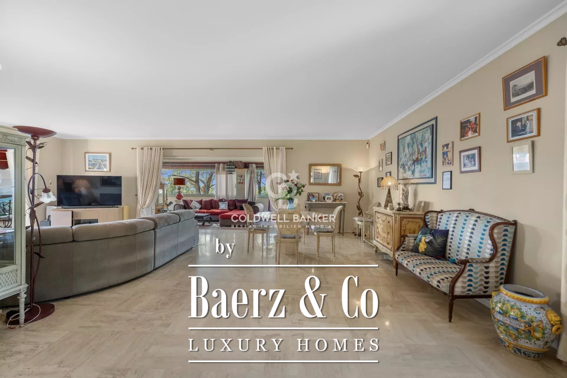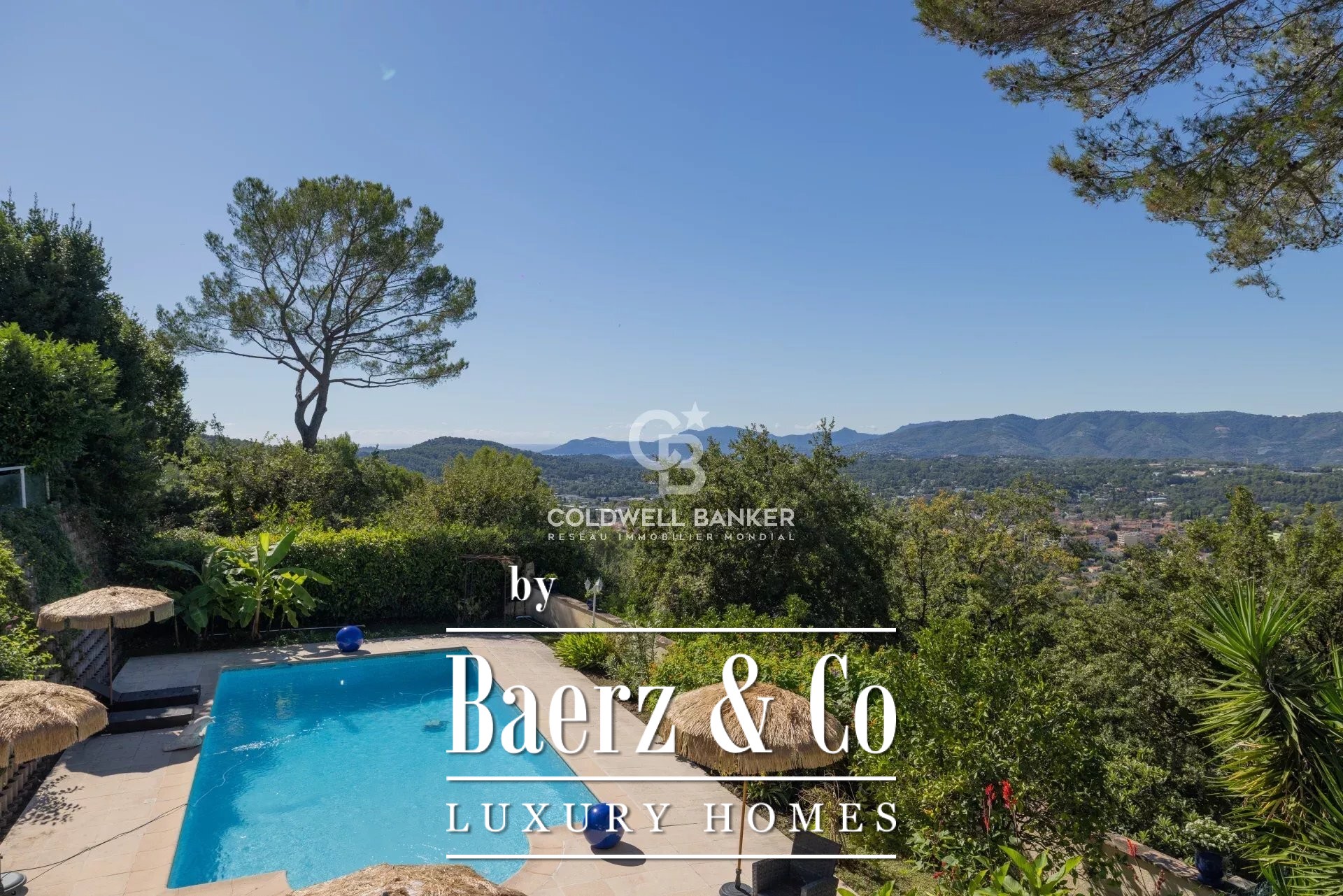 Co-Exclusivity - Nice property located in absolute calm and enjoying a very beautiful view of the sea and the Esterel as well as on the surrounding hills, a few minutes from the center of Mouans Sartoux or international schools. The villa is structured on three levels: - on the ground floor: an imposing living room of 95 m2, a kitchen opening onto the pretty terrace, a master suite and a second independent suite (possibility to create a very large master