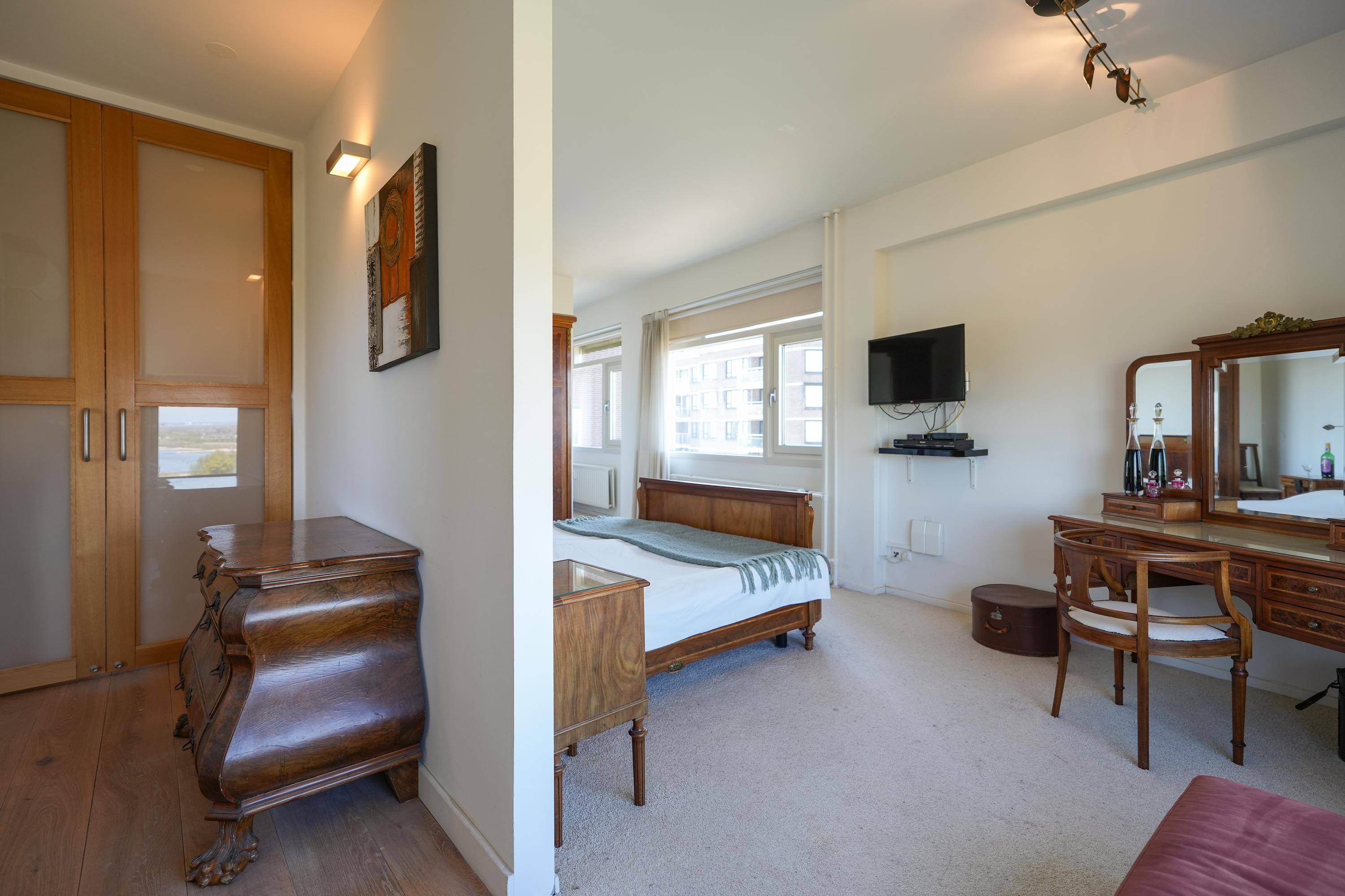 De overige twee slaapkamers zijn eveneens ruim en genieten, net als de rest van de woning, van veel daglicht en een vrij uitzicht. Één van deze kamers beschikt bovendien over een eigen balkon op het westen, perfect om te genieten van de middag- en avondzon. De tweede badkamer is voorzien van een douche en wastafel.
