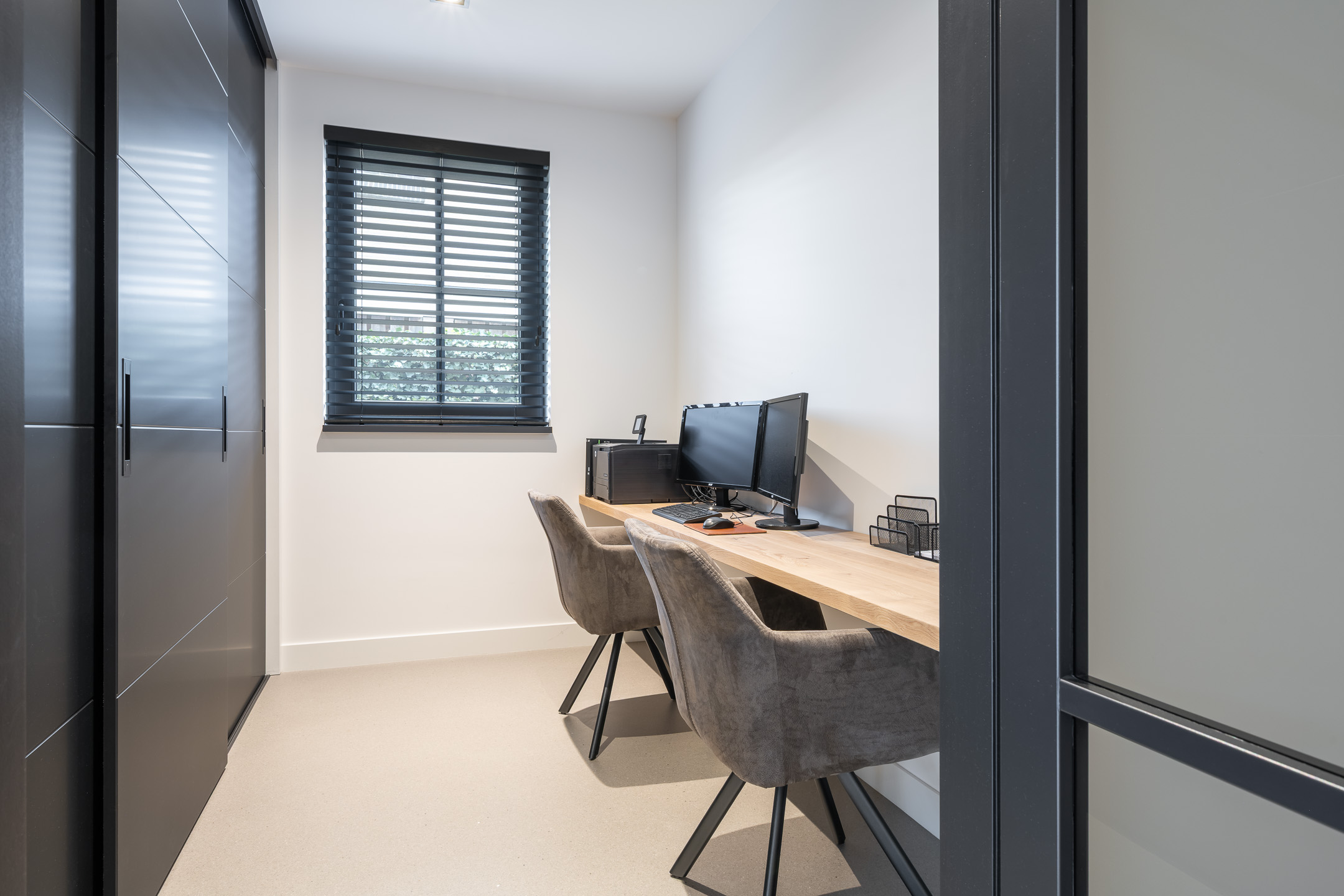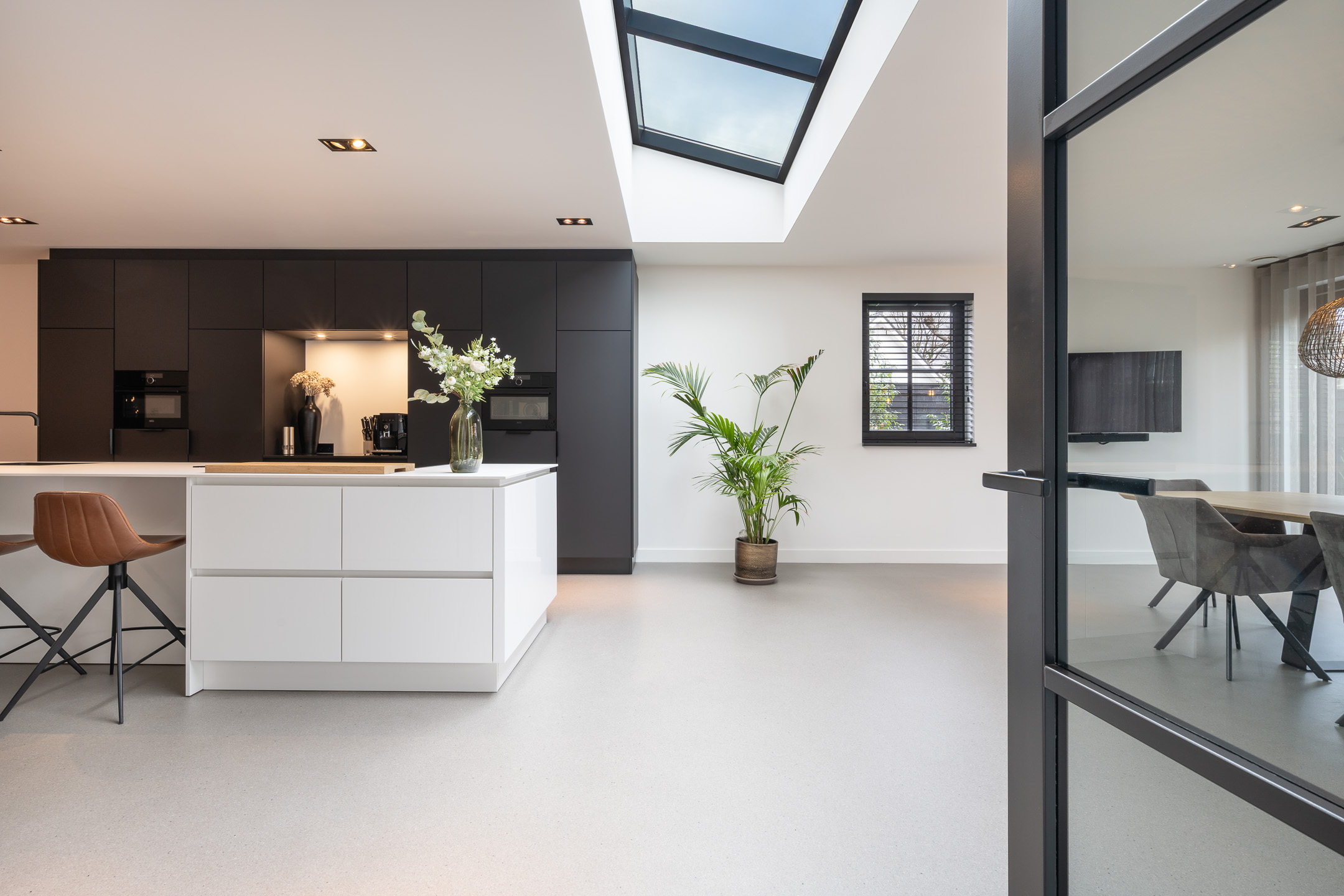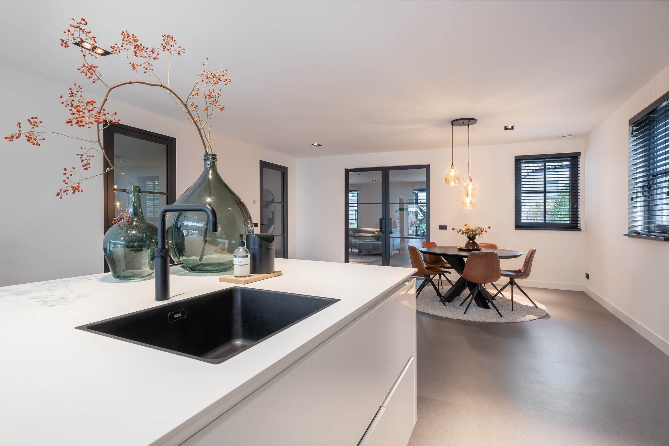 De royale leefruimtes zijn met veel oog voor detail afgewerkt. De indrukwekkende woonkeuken vormt het hart van de woning en is uitgevoerd met luxe materialen en hoogwaardige inbouwapparatuur. Aangrenzend bevindt zich de sfeervolle en ruime woonkamer met veel lichtinval. Een kantoorruimte, de separate wasruimte en de sterke verbinding met de tuin. De begane grond is voorzien van vloerverwarming, een extreem slijtvaste en krasbestendige troffelvloer die naadloos doorloopt. Deuren met magnetische sluiting en strak afgewerkte wanden en plafonds. De keuken is voorzien van alle gemakken, met een spoel- en kookeiland is het hier heerlijk koken.