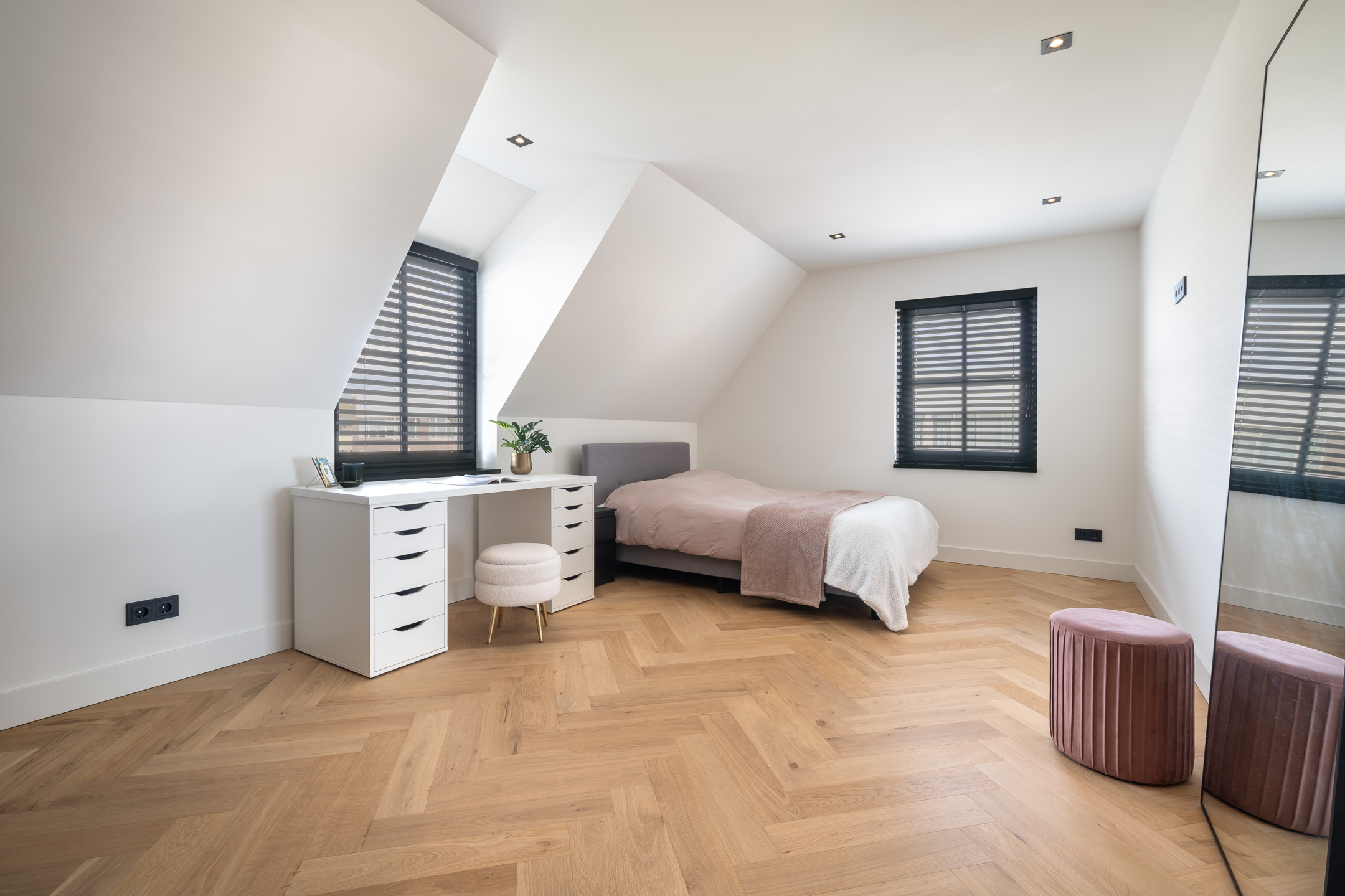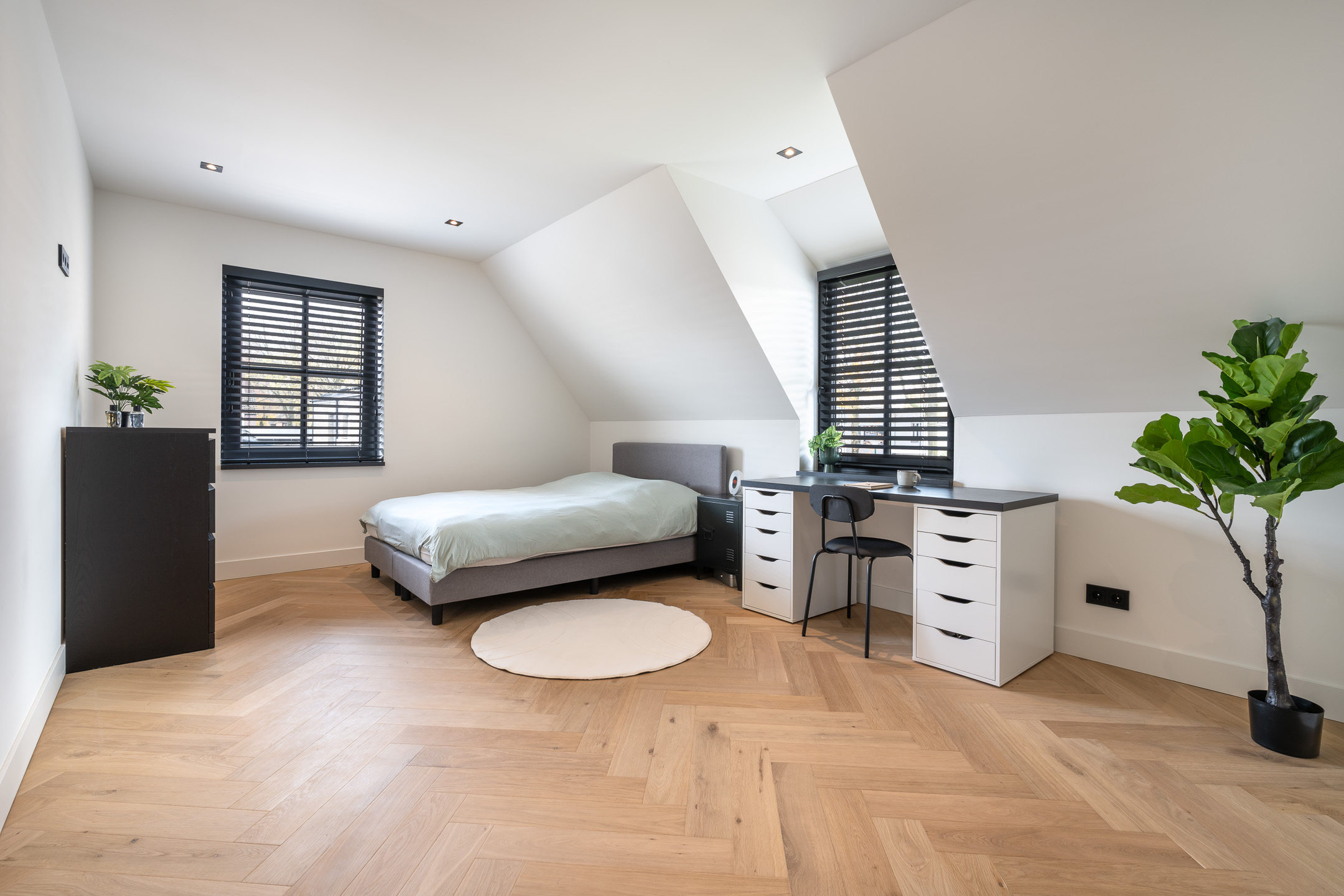De woning beschikt over maar liefst vier comfortabele slaapkamers, allen ruim van opzet en hoogwaardig afgewerkt. De hoofdslaapkamer beschikt over een inloopkast van formaat. En de badkamer is luxe afgewerkt met ligbad, inloopdouche, wastafel met meubel en een stortkoker voor de was. De royale tweede verdieping is uitermate geschikt voor het creëren van eventueel twee extra slaapkamers.