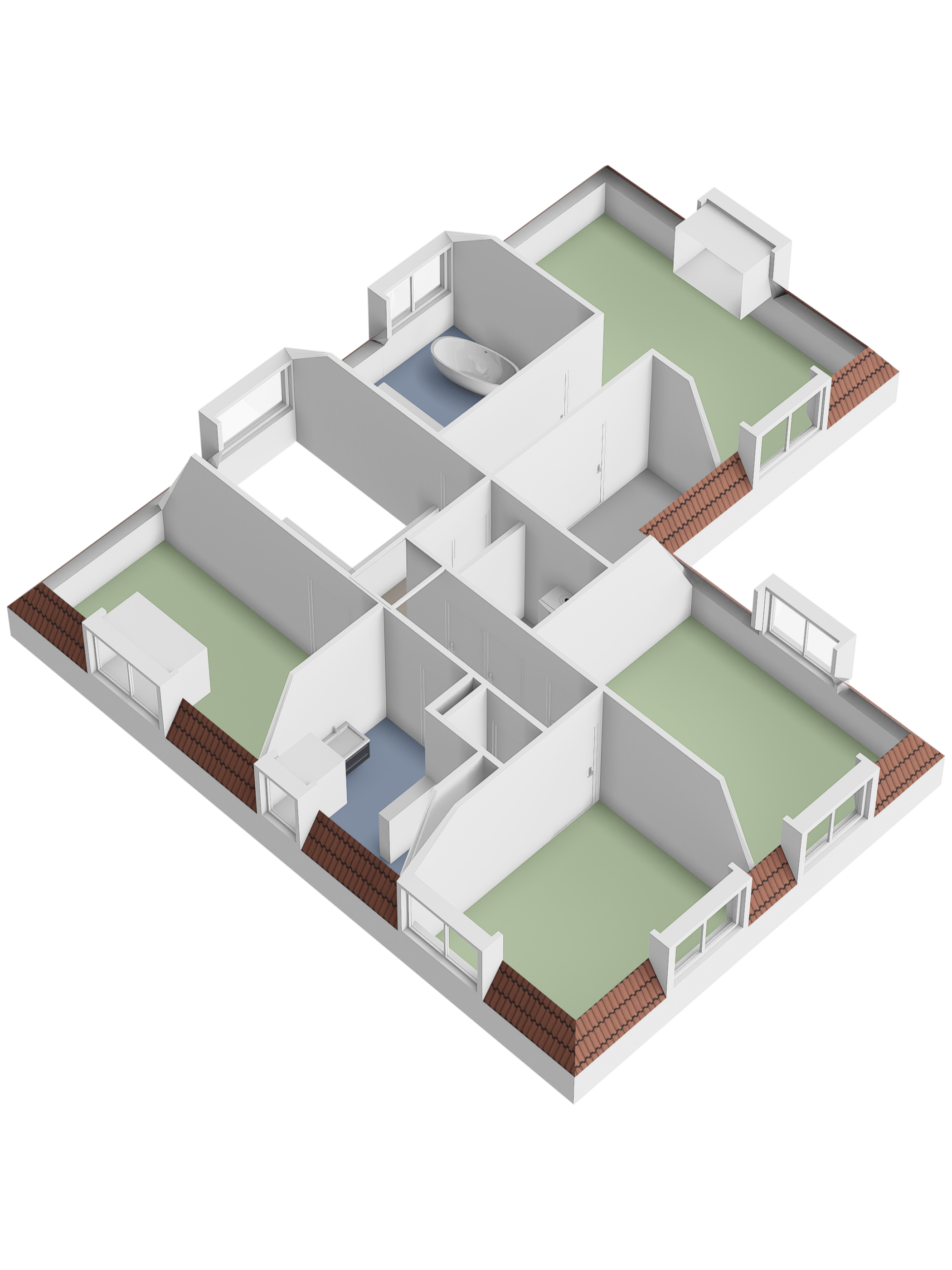 De master bedroom is voorzien van airconditioning en heeft een eigen zithoek, kleedkamer en luxe uitgevoerde badkamer met vrijstaand ligbad, dubbele wastafel, toilet, grote inloopdouche met regen- en handdouche en design handdoek radiator. Beide badkamers en de gang zijn voorzien van vloerverwarming.