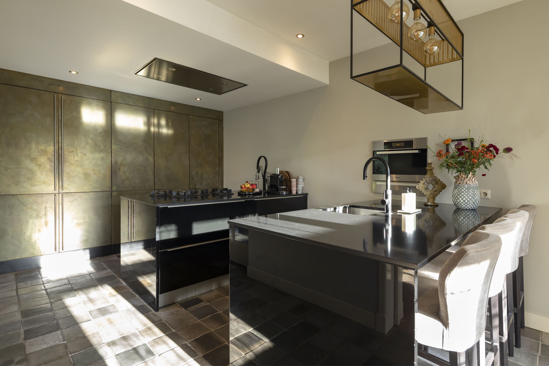 Houd je van koken én van gezelligheid? Dan past deze keuken perfect bij jou. Terwijl je namelijk aan het koken bent, kun je ondertussen ook gezellig borrelen met je vrienden die bij je in de keuken aanschuiven. Je zult zien, bij feestjes is het hier altijd ’n geliefde plek. De luxueuze keuken is voorzien van diverse inbouwapparatuur van Miele waaronder een stoomoven, een oven, een vaatwasser, een koelkast met ice crusher, een vriezer, een 5-pits gaskookplaat en een Quooker.