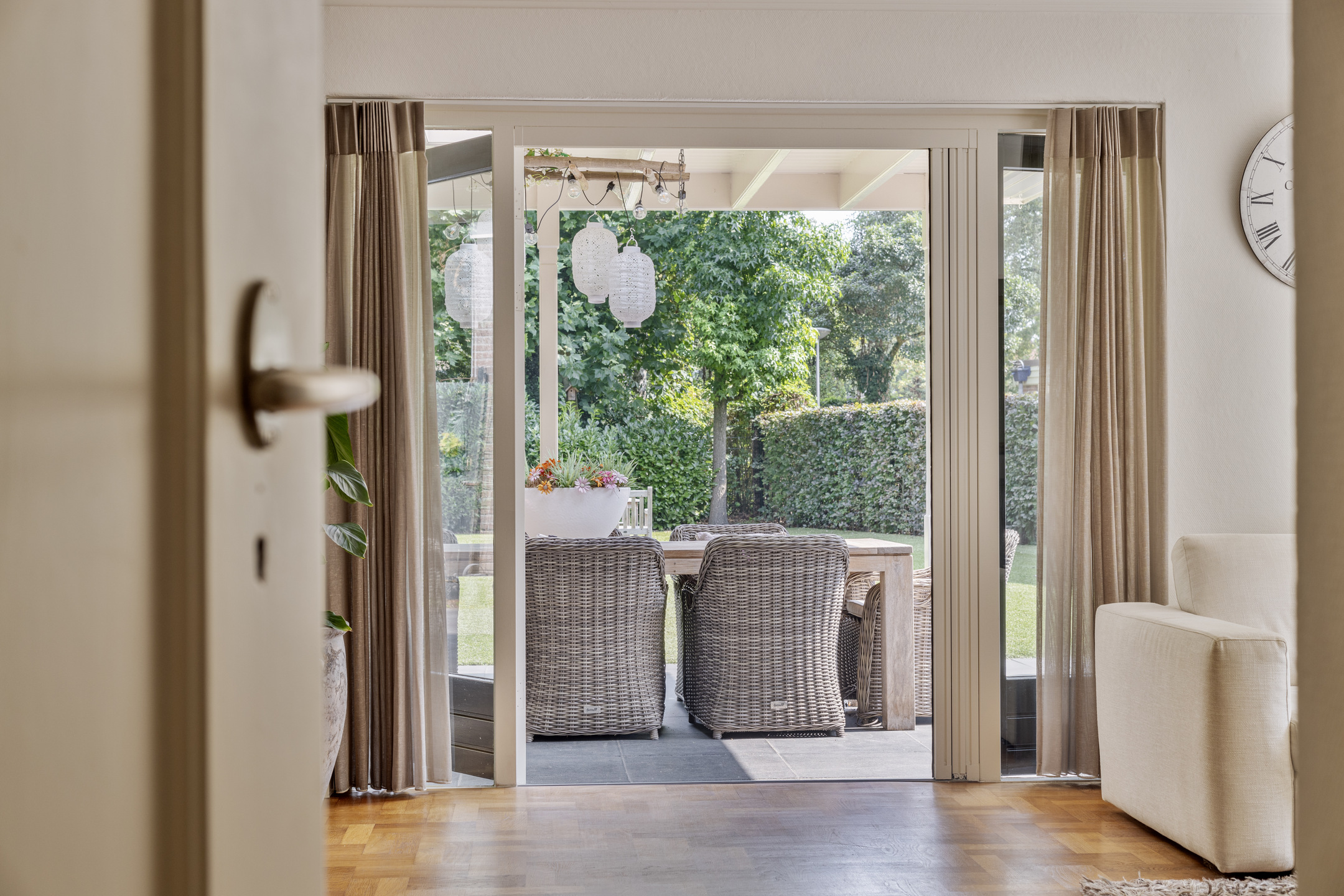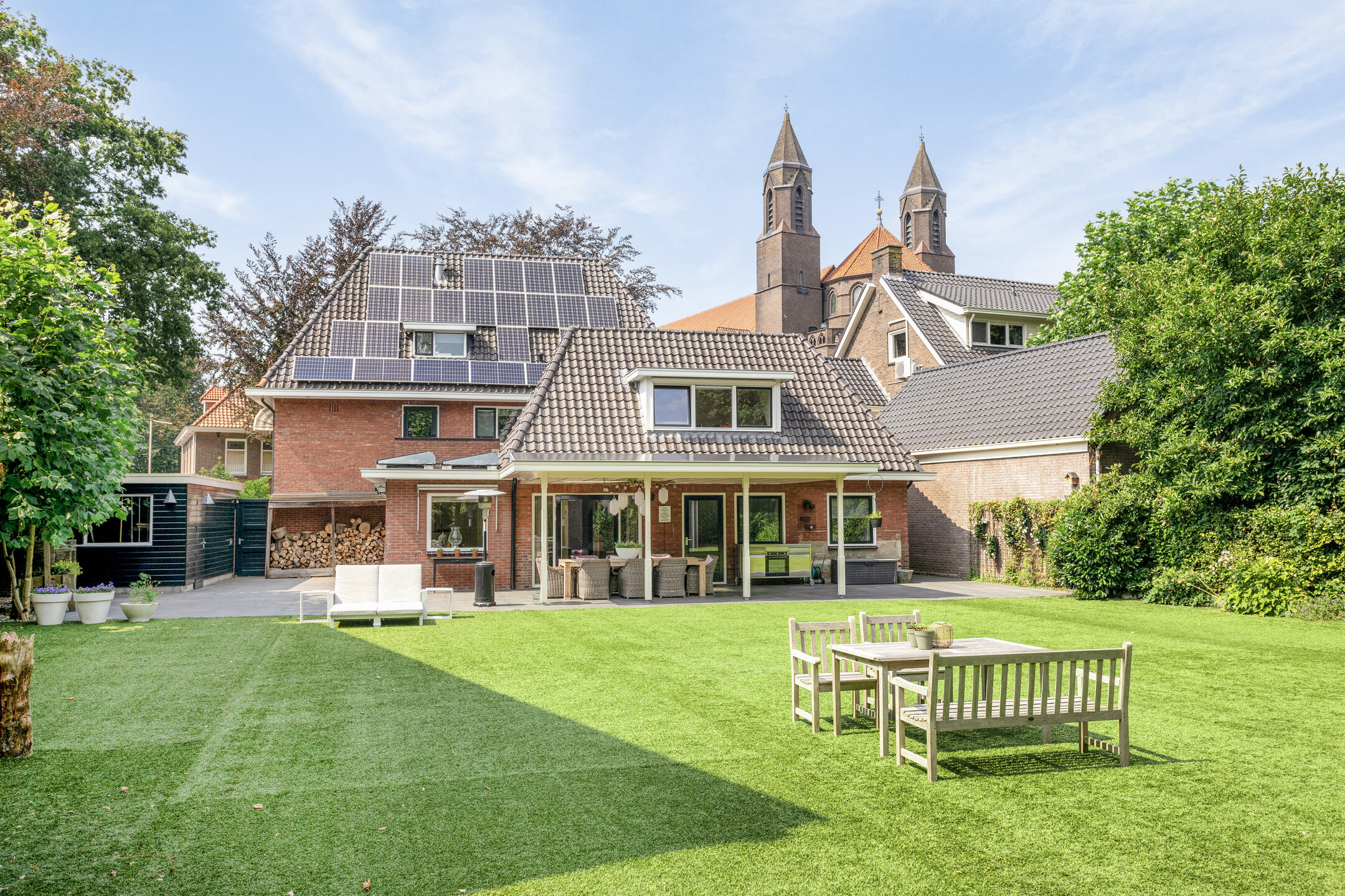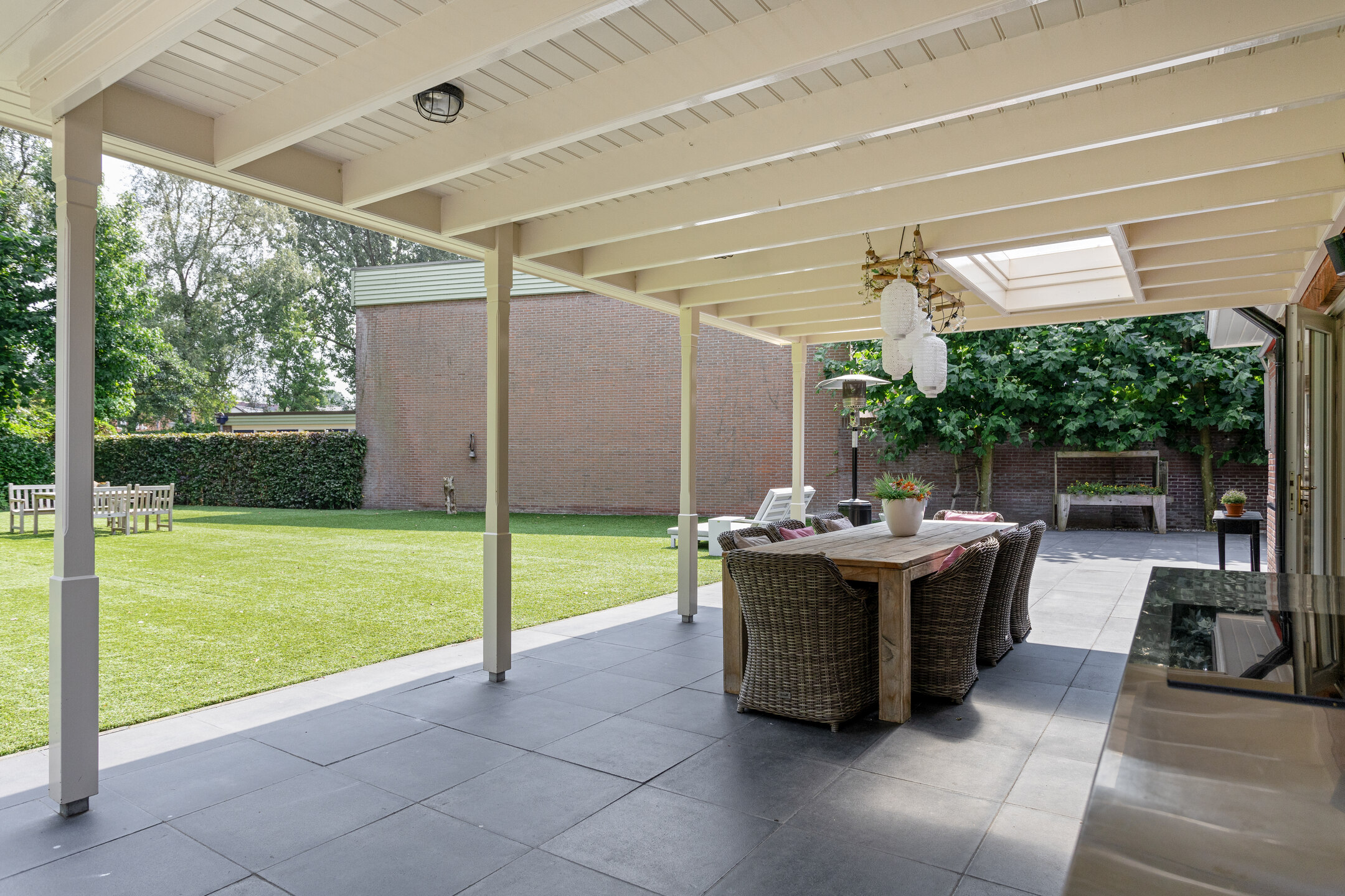Uniek aan deze woning is toch wel de achtertuin, wonen in het centrum van Oldenzaal maar het gevoel hebben alsof je buitenaf woont wanneer je plaatsneemt in deze heerlijke tuin met vrij en groen uitzicht, volop privacy en gelegen op het oosten. Een royale overkapping zorgt er voor dat je hier een groot gedeelte van het jaar goed kunt vertoeven. Nog niet genoeg bergruimte? Geen probleem, er is ook nog een vrijstaande stenen garage aanwezig aan de zijkant van de woning.
