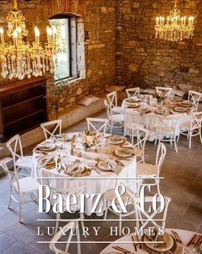 De begane grond draait om een riant gastronomisch vertrek: een professionele keuken en stijlvolle eetkamer grenzen direct aan de mediterrane tuinen en creëren een soepele overgang voor intieme bijeenkomsten of exclusieve evenementen. In het souterrain weerspiegelt de met steen uitgehouwen wijnkelder het verbonden karakter van het landgoed met de streek— ingericht voor de presentatie van lokale topwijnen.