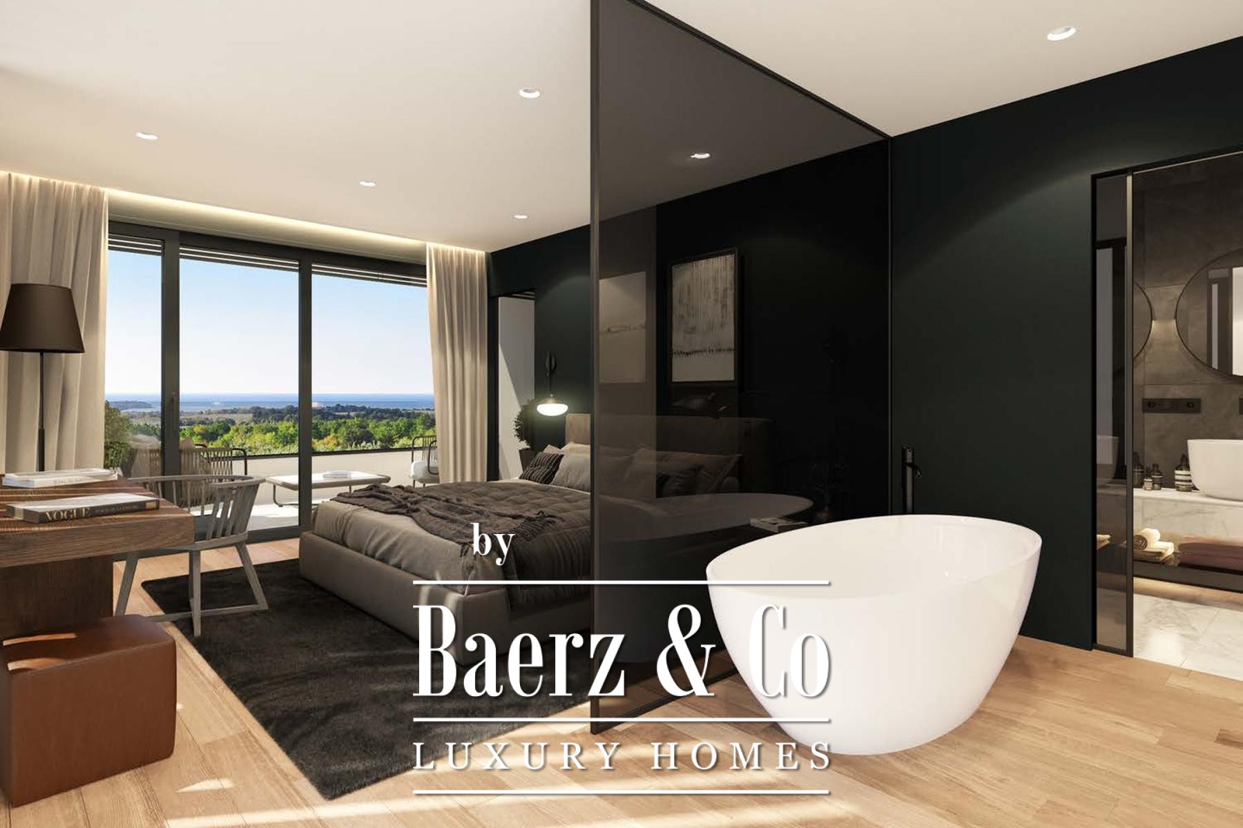 Met een oppervlakte van 213 m² is de woning zorgvuldig verdeeld over twee verdiepingen. De begane grond staat geheel in het teken van een ruime, open leefruimte met kookeiland en eetgedeelte. Grote glazen wanden laten overvloedig daglicht binnen en verbinden het interieur met een overdekt terras en fraai aangelegde tuin. De indeling omvat een slaapkamer met ensuite badkamer en inloopkast, een gastentoilet, wasruimte en technische ruimte. Op de verdieping zijn drie luxe slaapkamers, elk met een eigen badkamer, inloopkast en toegang tot brede terrassen met uitzicht op zee.