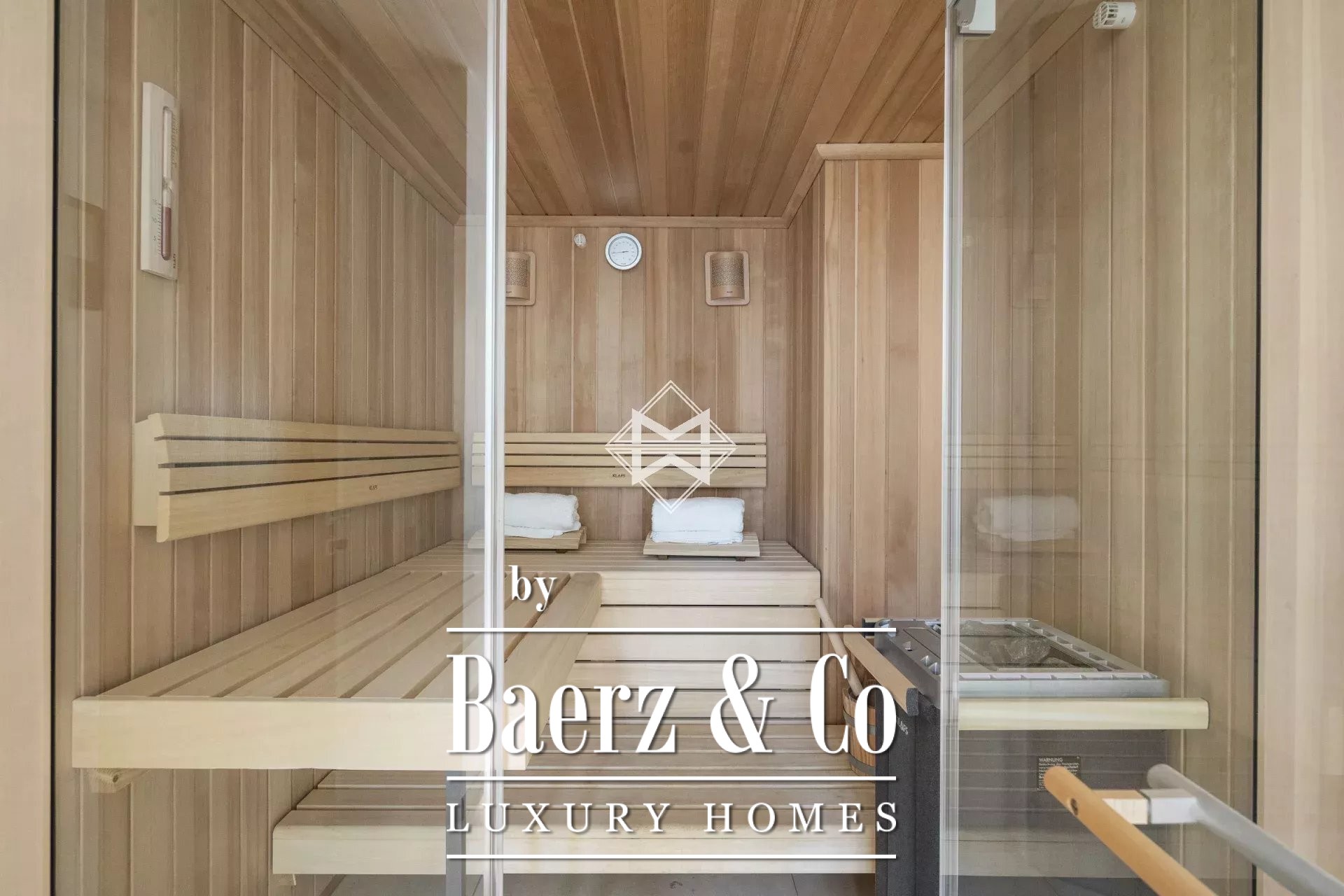 Centraal in de villa bevindt zich een volledig uitgeruste open keuken waar vorm en functie samenkomen, terwijl vloerverwarming en moderne voorzieningen het gehele jaar door comfort garanderen. De buitenruimtes nodigen uit tot rustig ontspannen of juist tot gezellig samenkomen; er is een verwarmd zwembad, een buiteneethoek en een lounge, omringd door volwassen beplanting. Veiligheid en gebruiksgemak staan voorop met onder meer airconditioning, dubbele beglazing, schuiframen, elektrische rolluiken, videobewaking en een kluis.