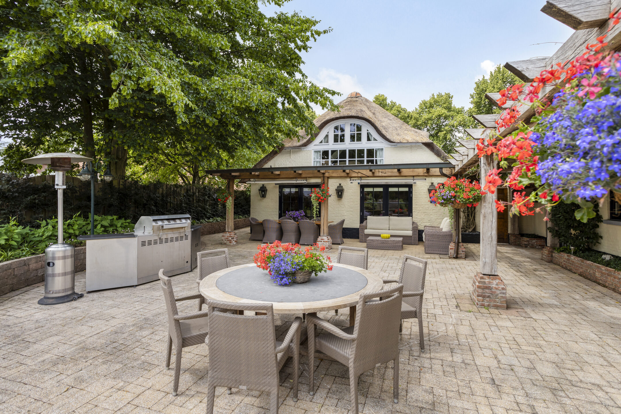 In een rustige straat aan de rand van Riethoven op een magnifiek perceel van 6.755 m² gelegen prachtige in oude stijl gerenoveerde woonboerderij met rieten kap. De woning is smaakvol verbouwd en beschikt over een groot, vrijstaand gastenverblijf, een royaal bijgebouw met ontspanningsruimte en fitnessruimte/gym, een ruime carport voor meerdere auto's en een prachtig aangelegde parkachtige tuin op het westen.