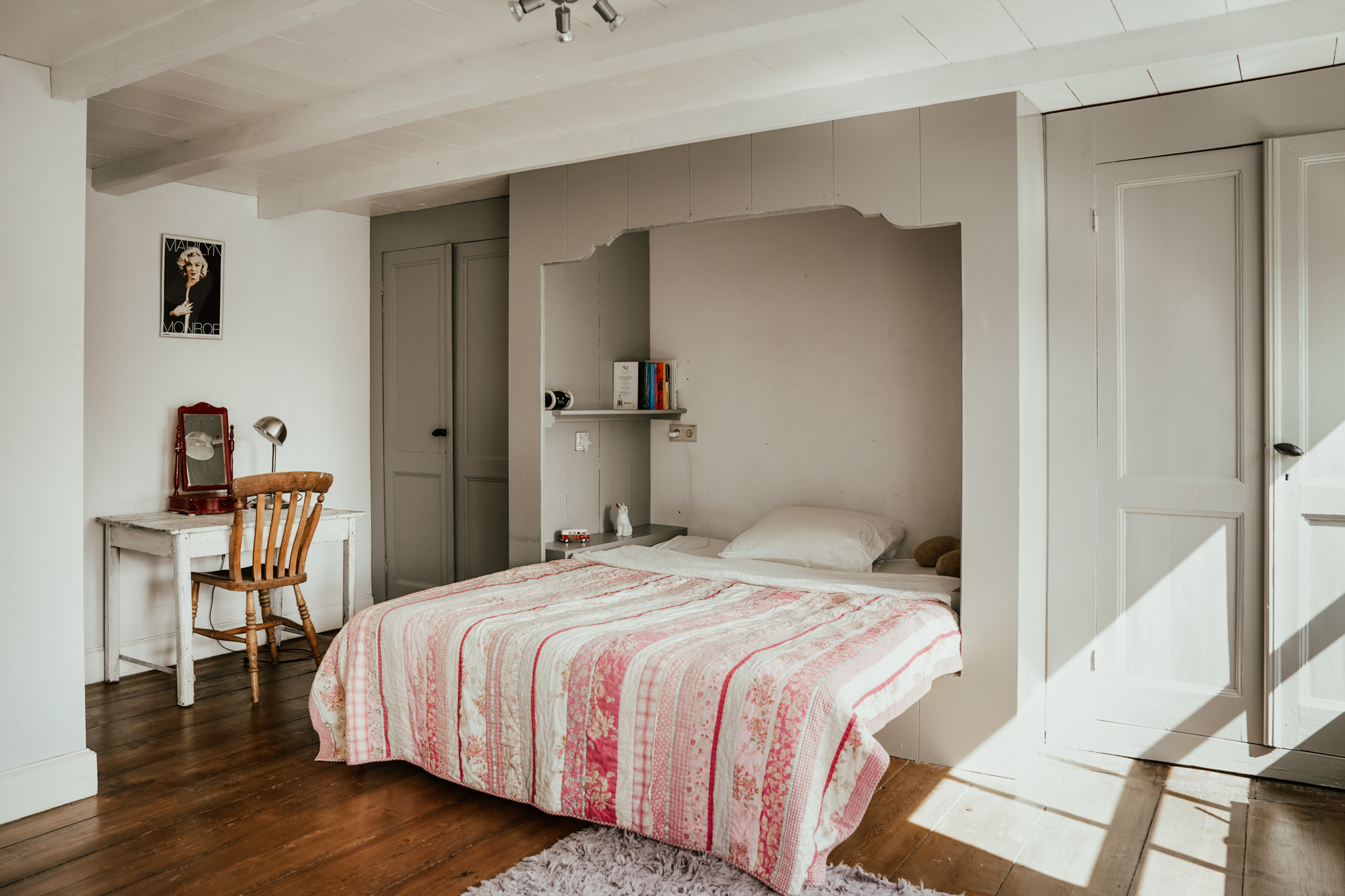 Onder de uitstekend geïsoleerde kap van het achterhuis liggen twee volwaardige slaapkamers met airco en een 4e badkamer. De slaapkamers zijn door de dakvensters en dakkapel aan de achterzijde heerlijk licht. De spantconstructie is fraai in het zicht gebleven en op verschillende plaatsen is vaste kastruimte gerealiseerd.