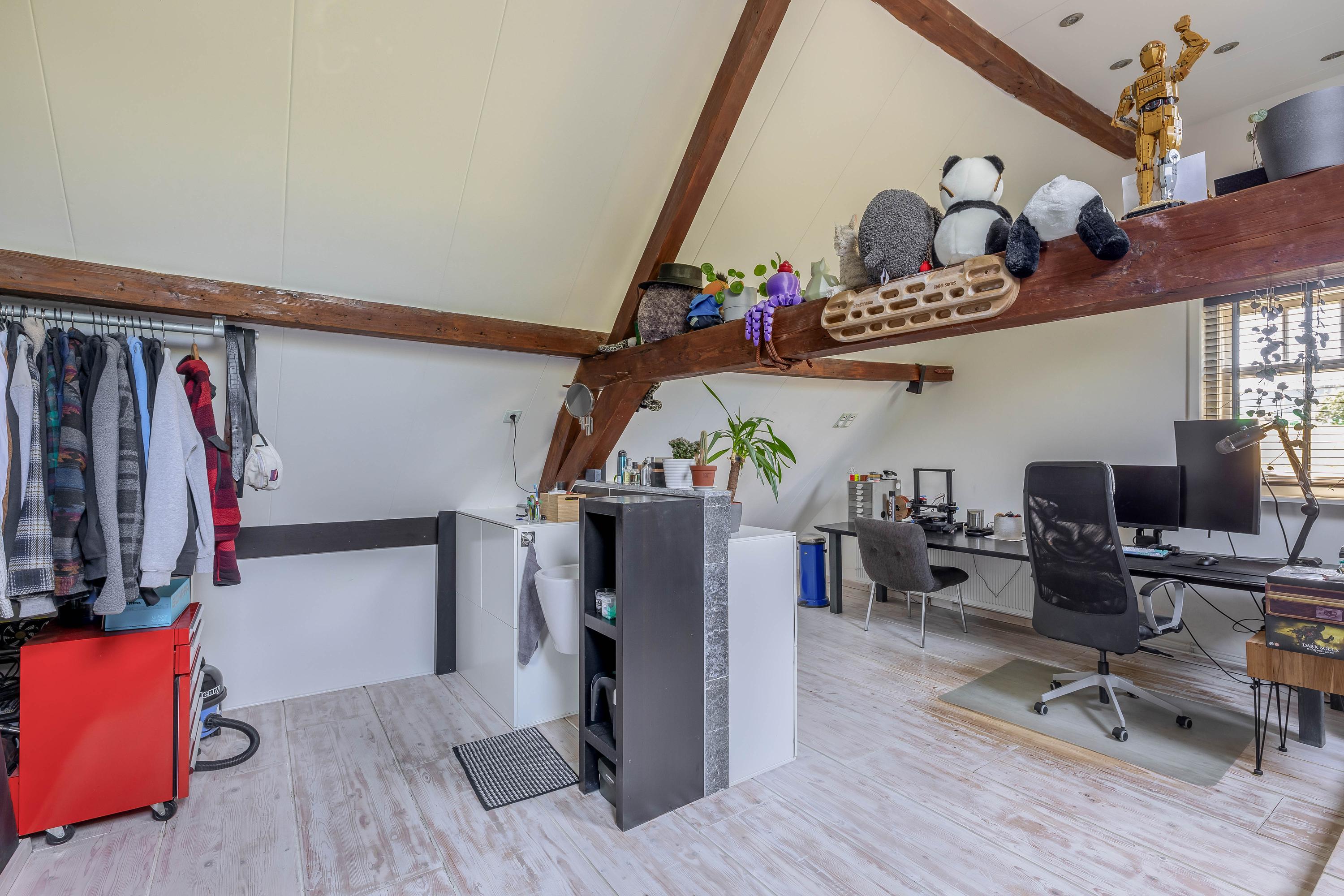slaapkamer aan voorzijde met 2 Veluxdakramen, houten vloerdelen en veel bergruimte,