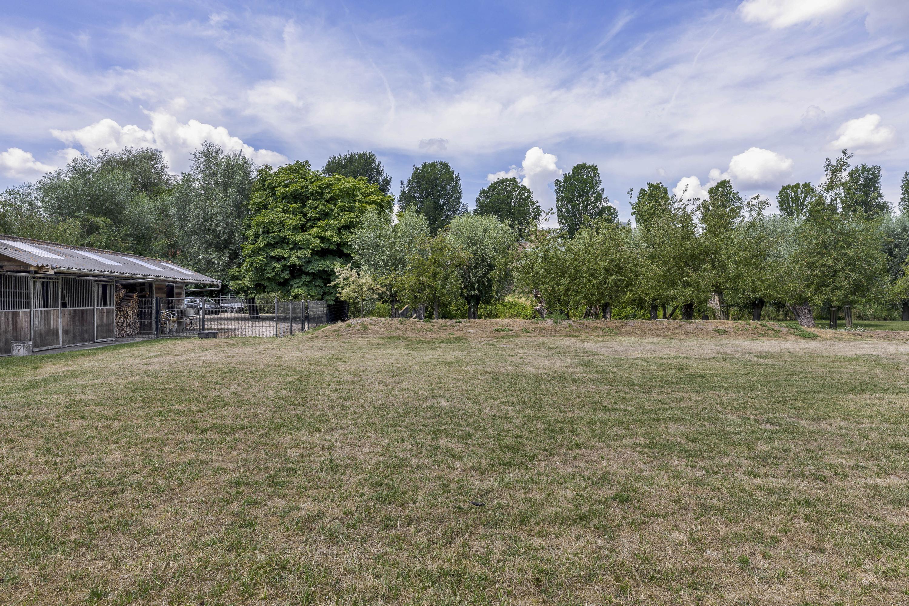 De woonboerderij ligt op 1.250 m² eigen grond en wordt omringd door circa 4.430 m² aanvullend gehuurde grond, waardoor het terrein royaal aanvoelt en een ongekend gevoel van vrijheid biedt. Verspreid over het perceel bevinden zich diverse fruitbomen zoals kersen-, walnoten-, appel- en perenbomen, die niet alleen zorgen voor sfeer en privacy, maar ook vele vogels aantrekken.