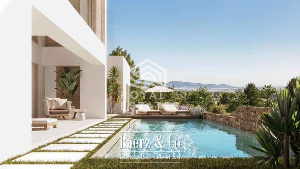 Het ontwikkelconcept vertaalt traditionele Ibizaanse architectuur in een eigentijdse stijl, gekenmerkt door strakke volumes, natuurlijke materialen en een open overgang tussen binnen en buiten. Met een verleende bouwvergunning kan het traject van visie naar realisatie snel worden vervolgd. De geplande villa biedt circa 520 m² woonoppervlak met vijf slaapkamers en vijf badkamers, waaronder aparte suites voor familie en gasten. Het interieurontwerp richt zich op een overvloed aan natuurlijk licht en een vloeiende overgang tussen leefruimte, eetkamer, terrassen en zwembadgedeelte.