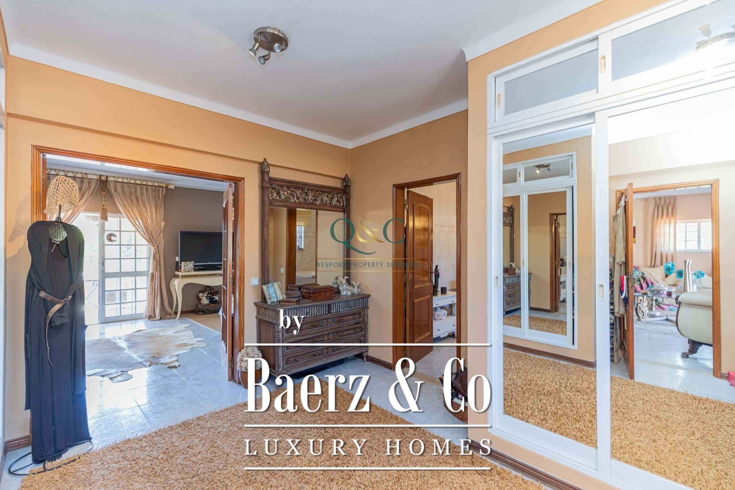 Upstairs, two generous landings open to balcony terraces, while the master suite enjoys a large bedroom, private terrace, walk-in dressing room, and luxurious en-suite bathroom. From one of the terraces, stairs rise to a rooftop terrace the perfect spot for entertaining, relaxing, or watching the sunset.
