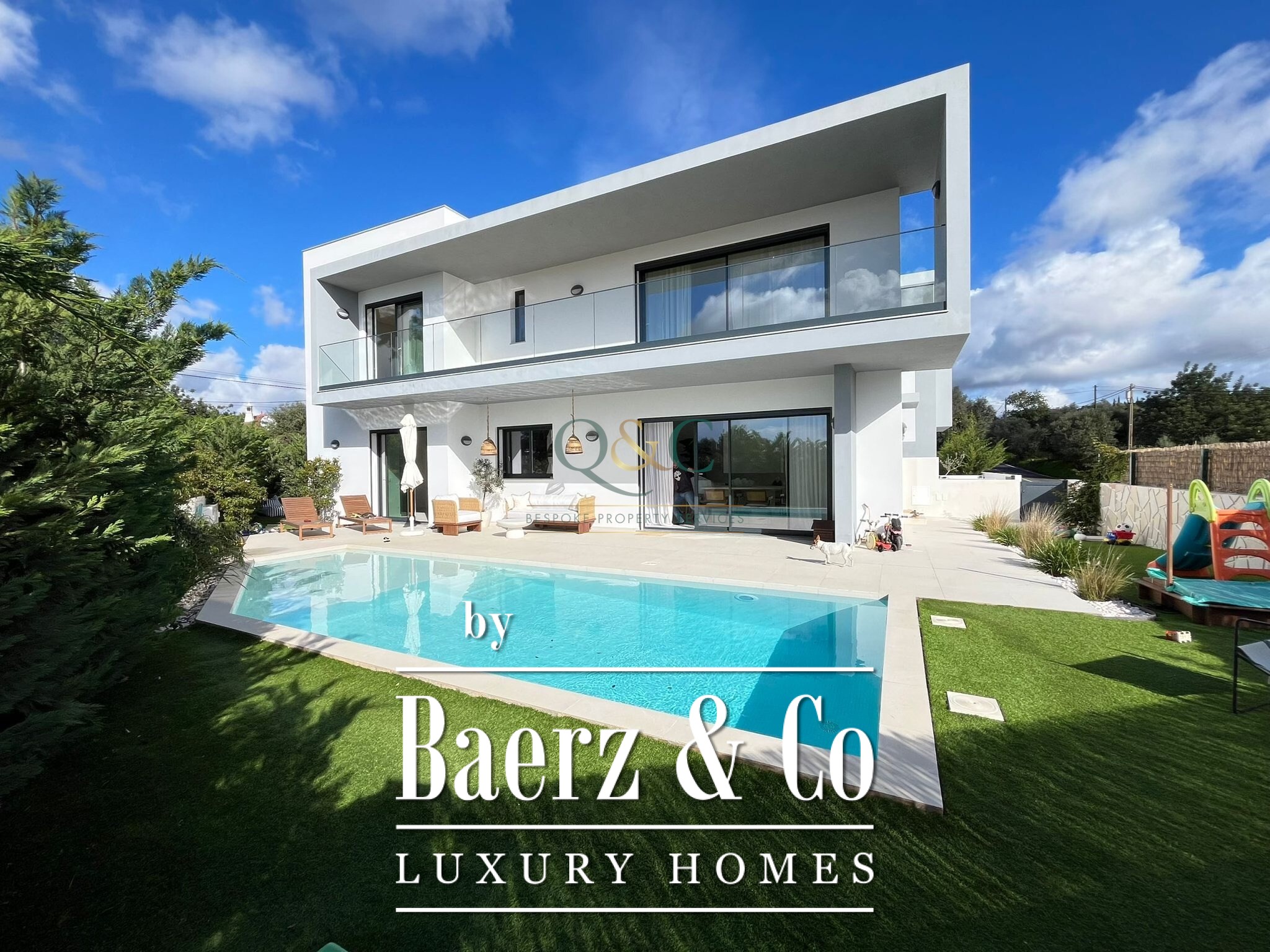 Op de begane grond zorgen de open woon- en eetkamer met marmeren ethanolhaard voor een subtiele balans tussen het binnenleven en zonlicht, ondersteund door centrale airconditioning. De open keuken, wasruimte en bijkeuken ondersteunen het dagelijks comfort, terwijl het terras uitnodigt tot ontspanning aan het chloorzwembad en de tuin, ontworpen voor stilte en rust. Vrijwel elke kamer is op het zuiden georiënteerd en baadt in overvloedig natuurlijk licht.