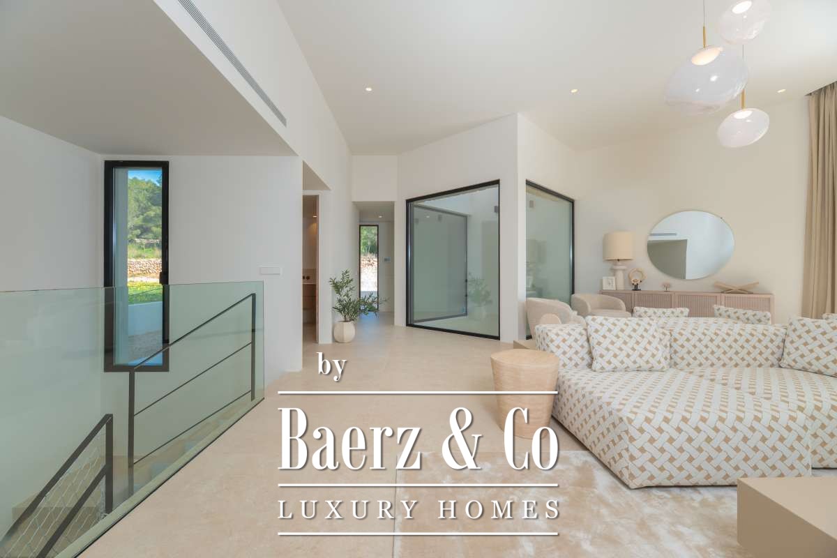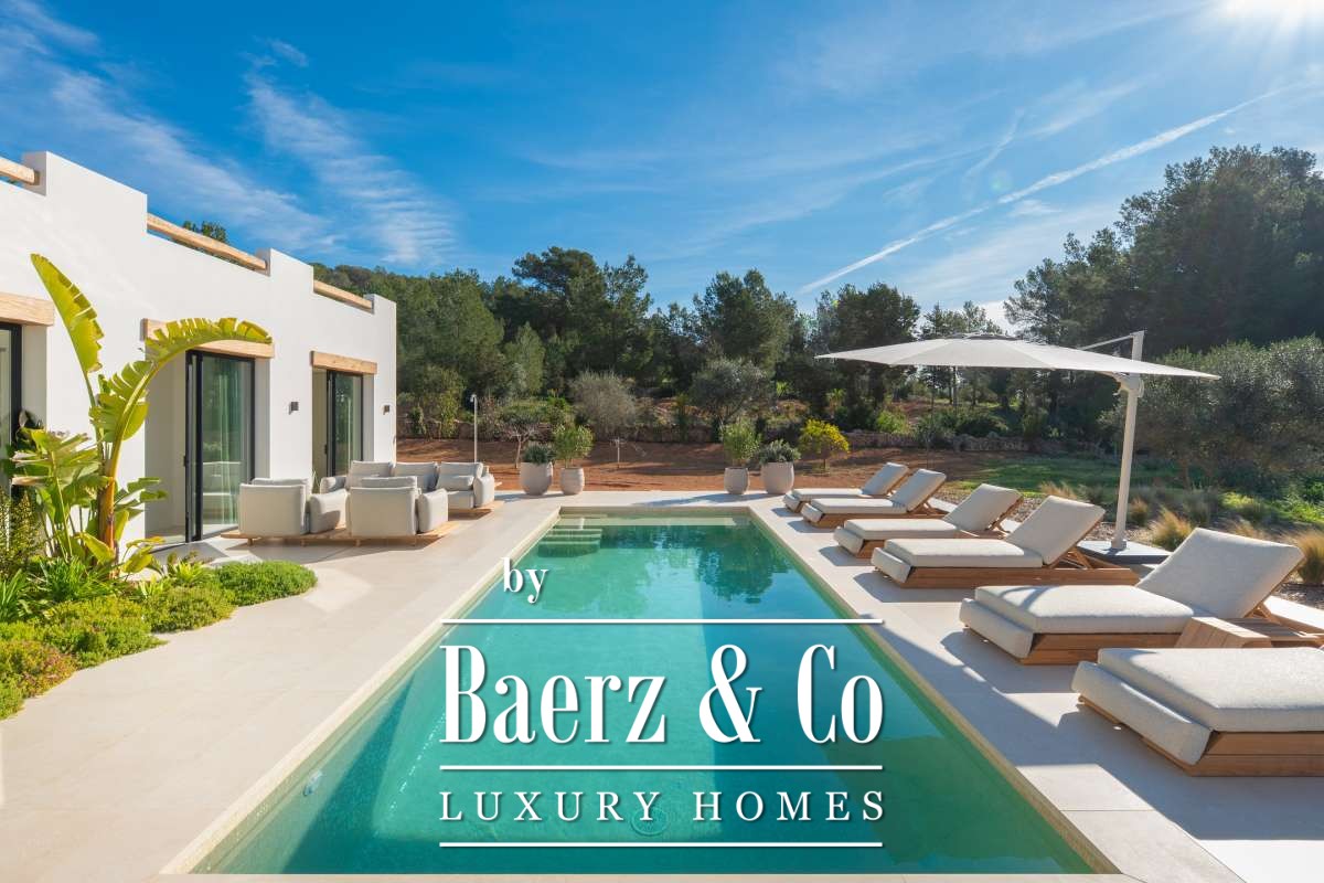 De omgevingDit eigendom bevindt zich in het weelderige landschap van Ibiza, in de buurt van Santa Gertrudis, en is gelegen op een groot perceel van 23.000 m2. Rondom het landgoed treft u olijfboomgaarden, sinaasappelbomen, pijnbomen en de typische stenen muurtjes aan. Deze Finca ligt op slechts 5 minuten afstand van het levendige dorp Santa Gertrudis en op 4 minuten afstand van de prestigieuze internationale school Morna, wat ideaal is voor gezinnen met kinderen. Bovendien ligt Ibiza-stad op slechts 15 minuten afstand en de luchthaven op 20 minuten, waardoor reizen eenvoudig en comfortabel is. Ibiza Estates Development is met trots gestart aan de bouw van deze spectaculaire landelijke villa.De villaDeze nieuwgebouwde villa in Ibiza is het toonbeeld van moderne architectuur en eco-vriendelijk design. De begane grond verwelkomt u met een ruime hal van circa 26 m², die leidt naar drie prachtig ontworpen slaapkamers, elk met hun eigen unieke karakter. De eerste slaapkamer, van 20 m², en de tweede, van 22 m², beschikken beide over een eigen badkamer met douche, wastafel en toilet. De masterbedroom, een royale ruimte van ongeveer 30 m², biedt een luxe badkamer met dubbele wastafels, een stijlvolle douche, toilet en een vrijstaand bad. Dat maakt het de ultieme oase van rust en privacy. De begane grond herbergt tevens een ruime woonkamer van circa 50 m² die naadloos overgaat in een royale keuken van ongeveer 40 m². De woonkamer, verfraaid met een grote vide van 5 m² en een elegante doorkijk-open haard die de ruimte met de keuken verbindt, grenst direct aan een veranda met een betoverend uitzicht op het zwembad. Dit open en vloeiende ontwerp combineert de perfecte balans tussen binnen en buiten, waardoor de natuurlijke schoonheid van Ibiza uw dagelijks leven binnenstroomt. Een ruime open trap leidt naar de kelderverdieping, een toevoeging die zowel functioneel als esthetisch aantrekkelijk is. De kelderverdieping, met een extra woonlaag van in totaal 165 m², biedt een schat aan mogelijkheden. Het omvat twee technische ruimtes waarvan de grote van buitenaf toegankelijk is – ideaal voor onderhoudswerkzaamheden – en een overige ruimte van 83 m² die naar eigen smaak kan worden ingericht met faciliteiten zoals een sauna, bioscoop of gym. Ook biedt de kelder de mogelijkheid voor een guesthouse of nanny kamer van circa 27 m² met een aparte toegang vanaf de buitenzijde, wat extra flexibiliteit en privacy biedt. Deze villa combineert de allernieuwste ontwerpelementen met een milieuvriendelijke aanpak, waardoor het een ideale keuze is voor degenen die zowel luxe als duurzaamheid waarderen.De buitenruimtesDe prachtig aangelegde tuinen zijn elegant verlicht en ontworpen met het oog op minimaal onderhoud. Op het perceel kan in de toekomst nog een extra gastenverblijf van 30m2 worden gebouwd. Op het binnenplein staan twee charmante originele Ibicenco-structuren. Dit alles vormt een zeer uitzonderlijk eigendom, dat wordt gerealiseerd volgens de hoogste kwaliteitsstandaard en zich op een werkelijk unieke locatie bevindt.