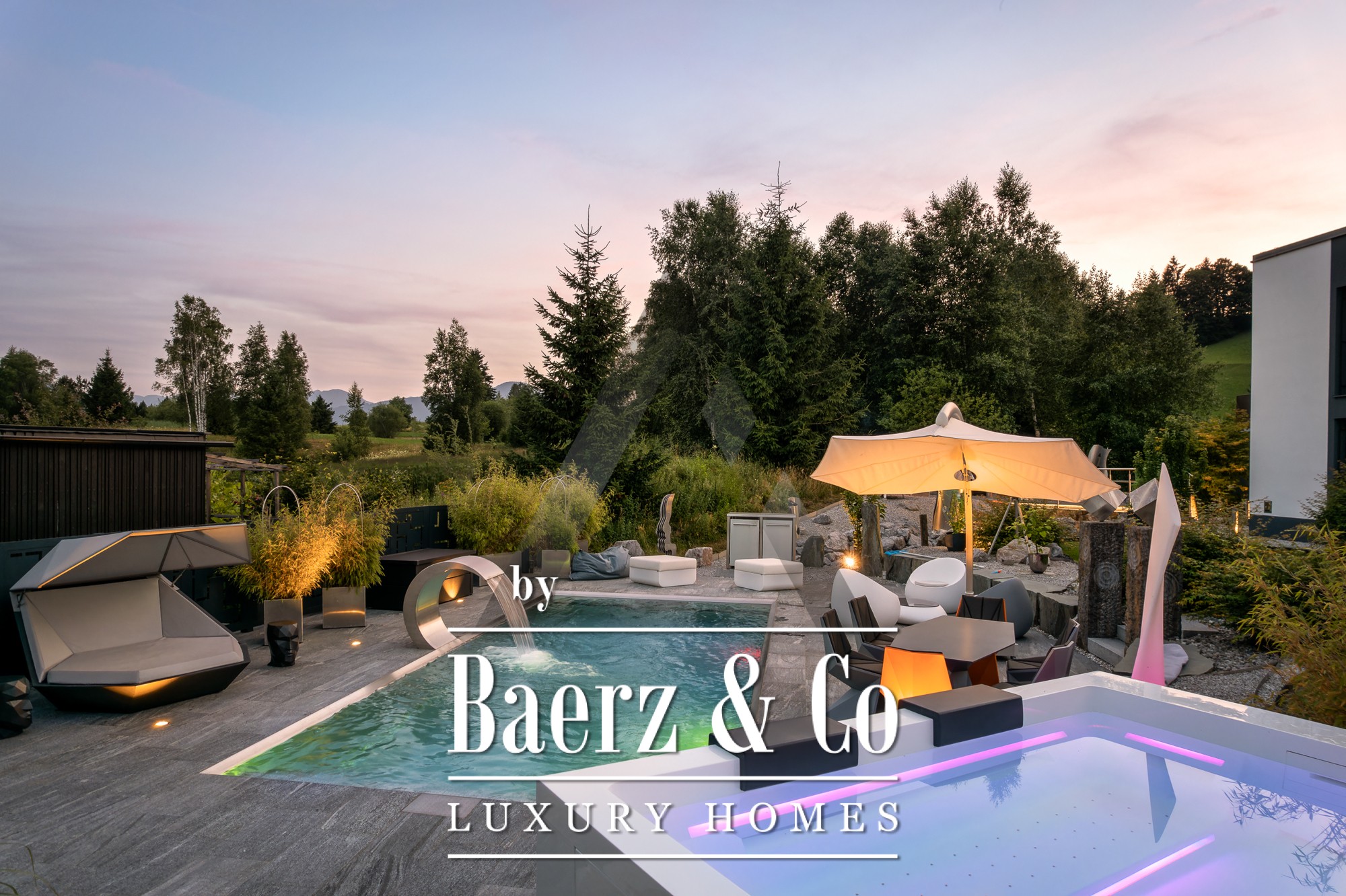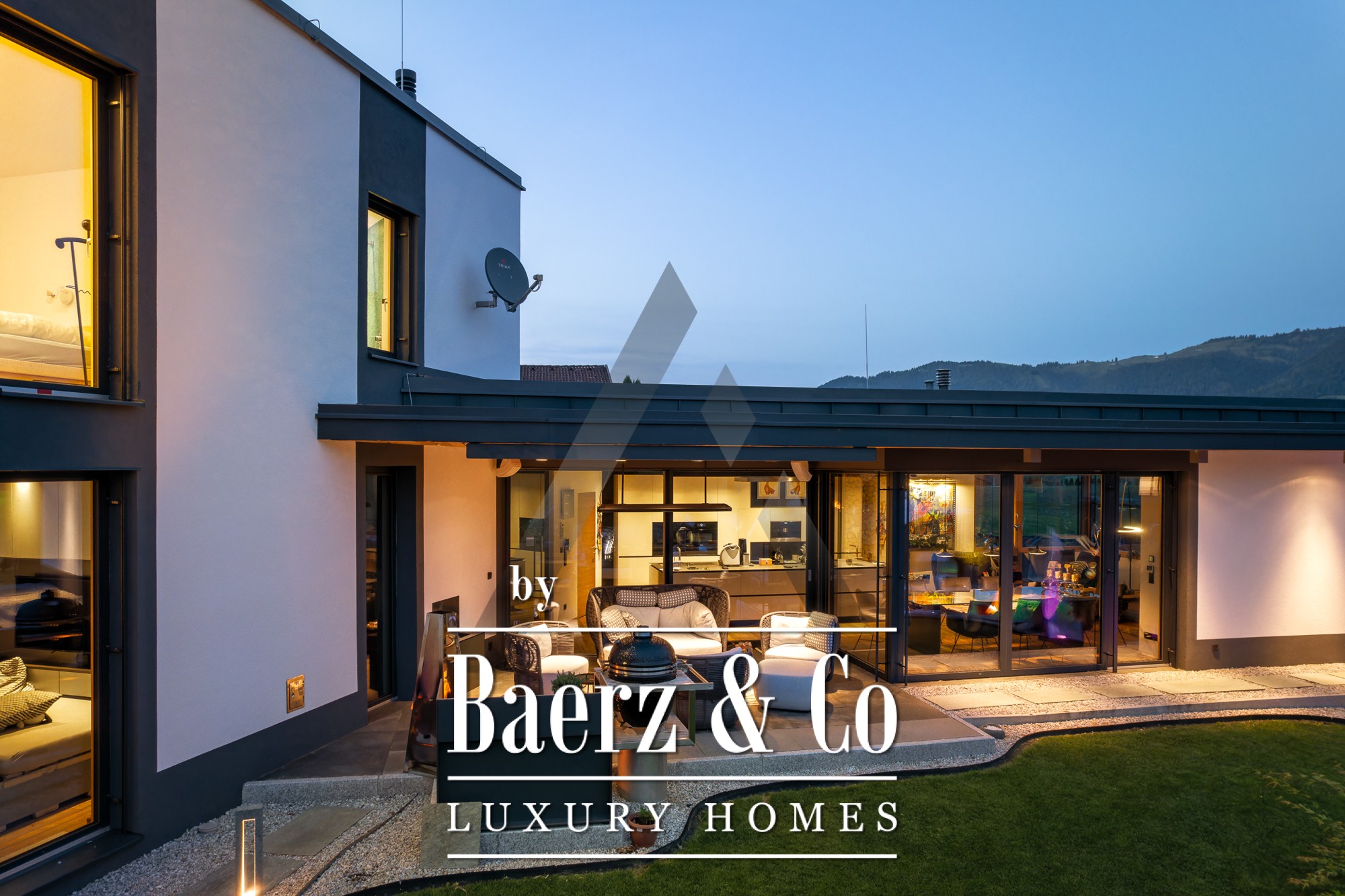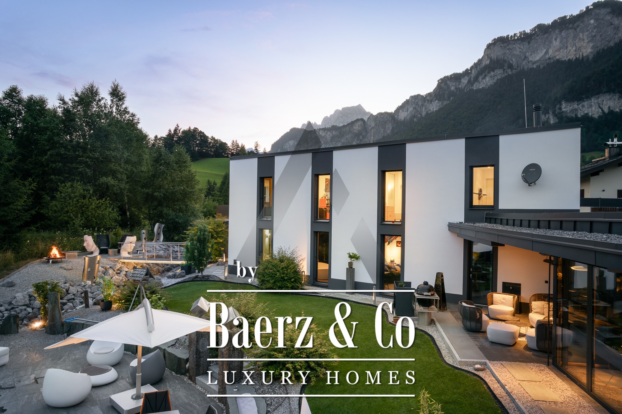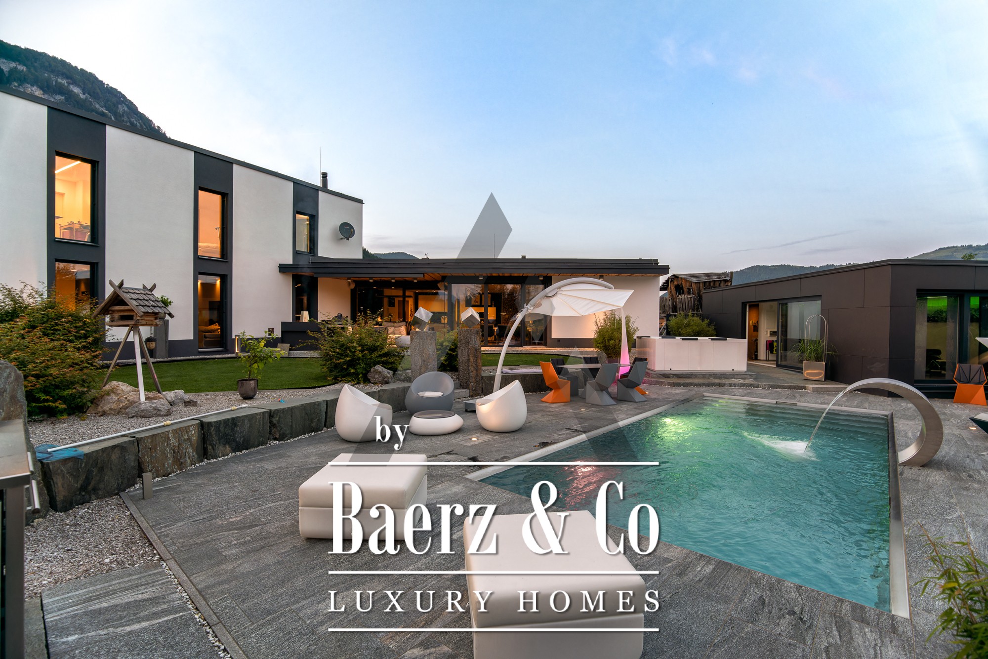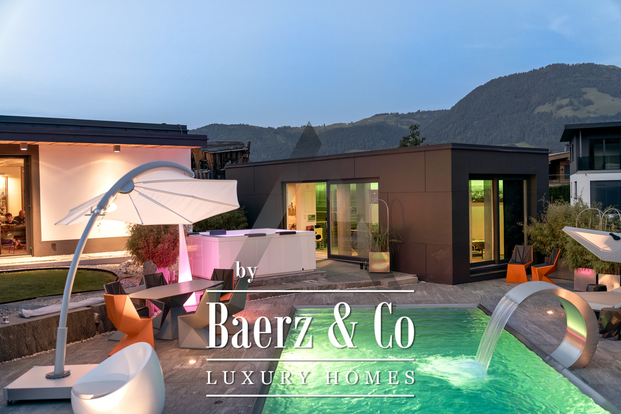 Vrijstaande woning St. Johann in Tirol is gelegen op een rustige, zonnige locatie met een weids uitzicht op de Kitzbüheler Horn en de Wilder Kaiser. Deze eigentijdse villa biedt 418 m² woonoppervlak op een perceel van 1.186 m² en belichaamt het verfijnde alpine leven. De idyllische tuin beschikt over een vijver, aangelegde beekjes, royale terrassen en een panoramisch berglandschap. Buiten geniet u van een roestvrijstalen zwembad, een Treesse designer whirlpool en een sauna, ideaal voor ontspannen ochtenden en verkwikkende middagen.