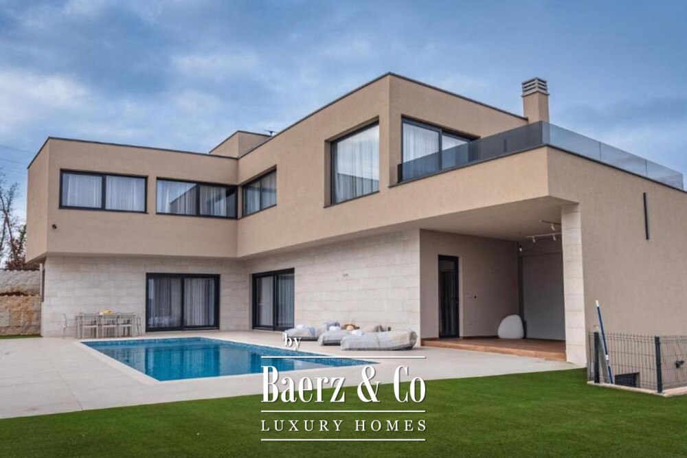 Luxe villa Tinjan biedt een zeldzame combinatie van privacy, elegantie en panoramisch uitzicht in het hart van Centraal-Istrië. Deze moderne woning ligt op een fraai aangelegd perceel van 781 m², waar grote glazen wanden het daglicht door de 370 m² woonoppervlakte laten stromen en het adembenemende uitzicht op de berg Učka het interieur met de buitenwereld verbindt.