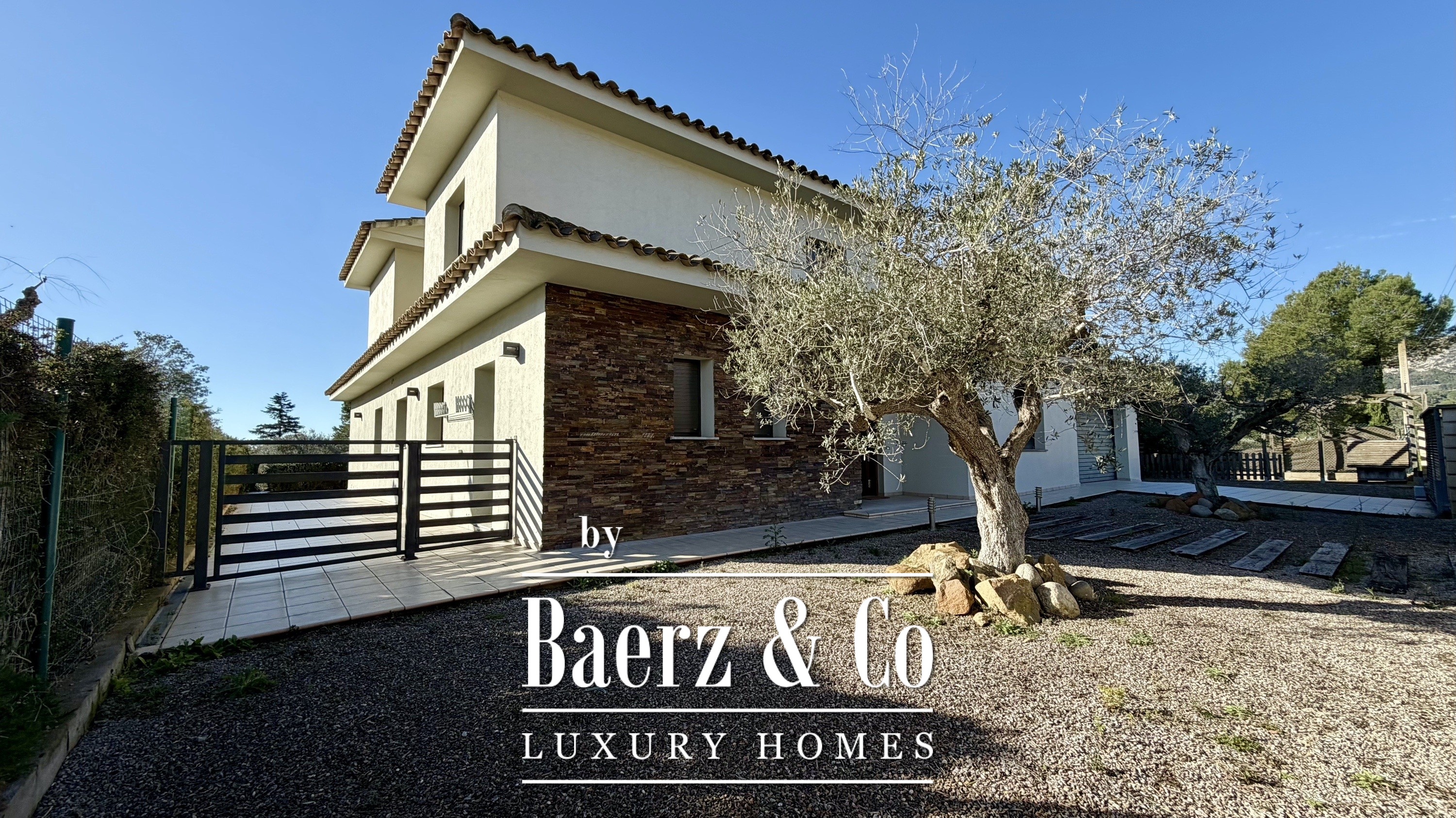 Op de bovenverdieping bevinden zich drie extra slaapkamers—twee met eigen badkamer—en een aparte badkamer, waardoor privacy voor familie en gasten is gewaarborgd. Alle kamers genieten van veel licht, ruimtelijkheid en rustgevend uitzicht, met zowel zee- als plattelandspanorama’s verspreid door de woning. Buiten draait het leven om de fraai aangelegde mediterrane tuin en het privézwembad, omlijst door terrassen en een paviljoen met kleedfaciliteiten.