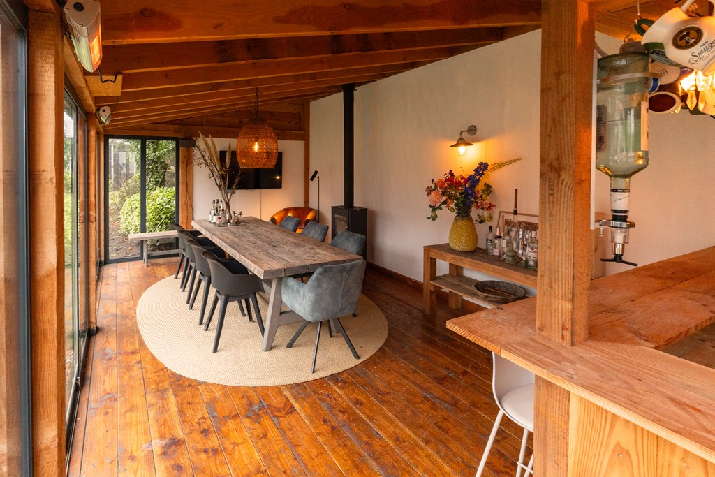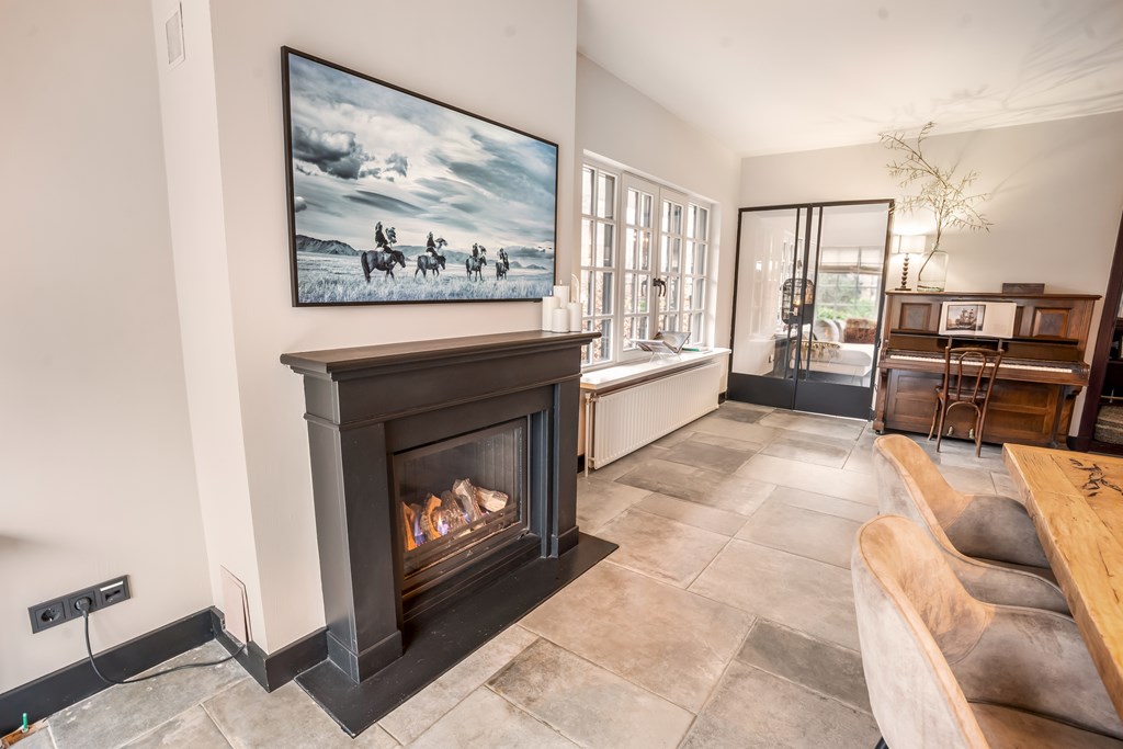 De sfeervolle woonkamer-en-suite van ca. 55 m² is heerlijk licht, voorzien van een gezellige houtkachel en vernieuwde kozijnen met roedeverdeling. Alle wanden en het plafond zijn in 2025 strak gestuct en geschilderd. Vanuit de eetkamer kijkt u vrijuit over de fraaie tuin met als eyecatcher de ruime en moderne veranda met bar en houtkachel. In de eetkamer is ruimte voor een grote familietafel en deze ruimte beschikt over een gashaard voor extra warmte en sfeer. Op de gehele begane grond is een prachtige nieuwe tegelvloer aangebracht.
