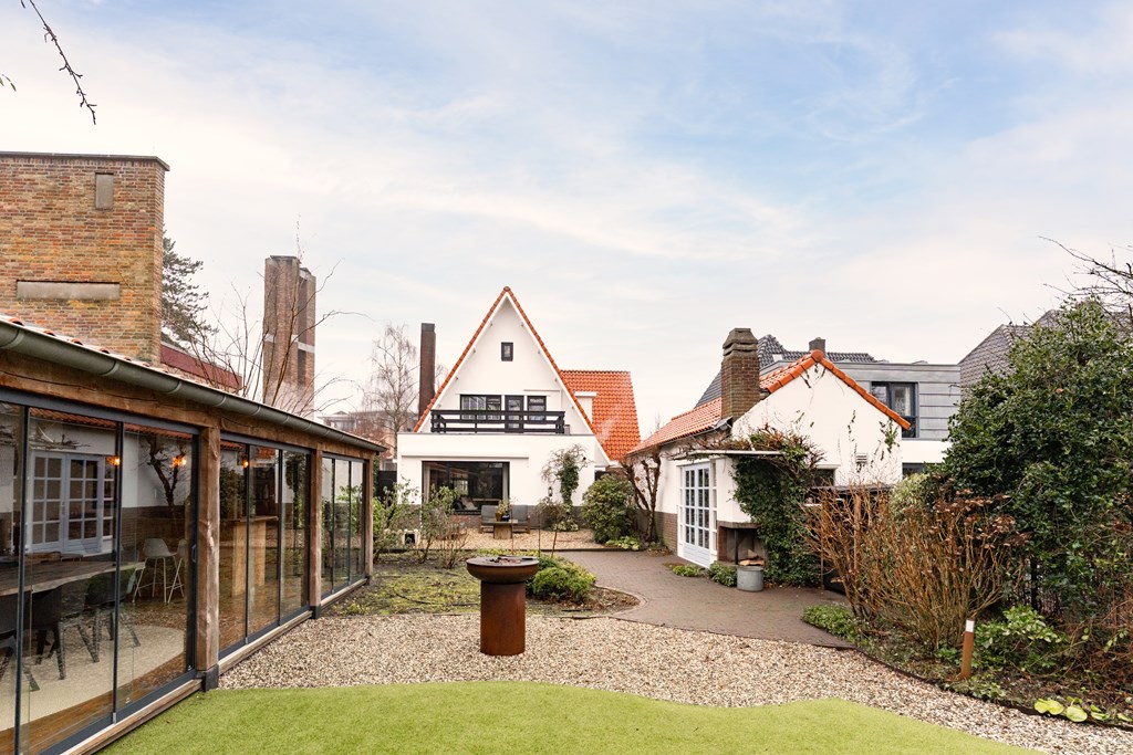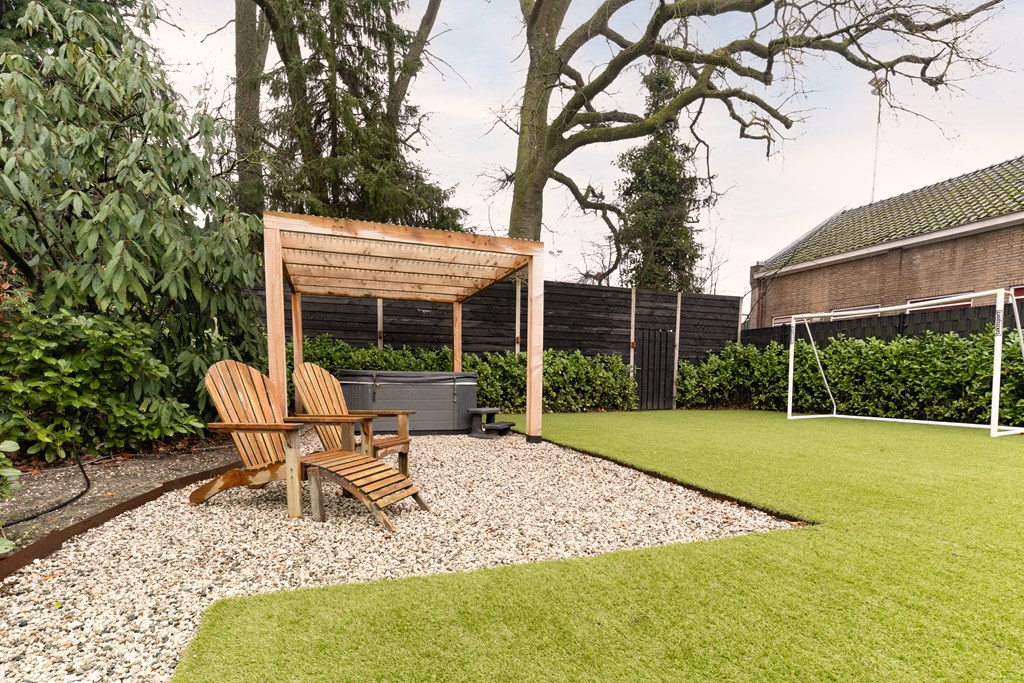 De woning is gelegen op een riant perceel van 1.043 m². Zowel aan de voor- als aan de achterzijde is de tuin groen, ruim en verzorgd en beschikt het over een ruime veranda met sfeervolle houtkachel. De in 2021 aangelegde achtertuin ligt op het zuidoosten en biedt veel privacy door hoge bomen en beschikt over een beregeningsinstallatie en fraaie tuinverlichting. Door de diverse terrassen, is er op elk moment van de dag een zonnige plek te vinden.