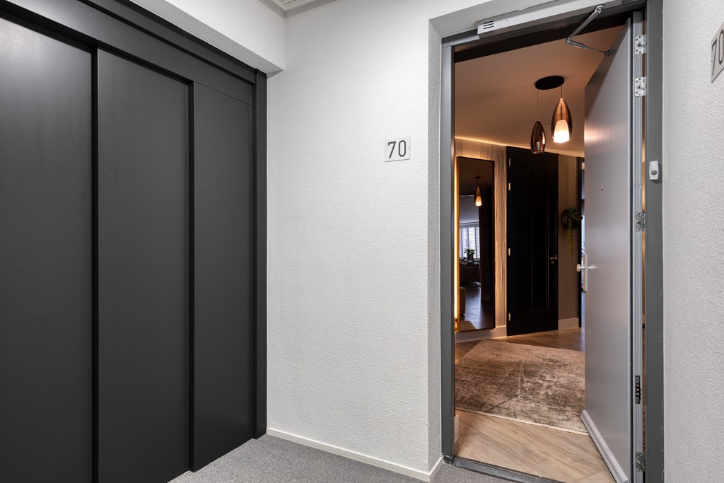De entree van Rembrandt Résidence maakt direct een verzorgde en representatieve indruk. Via de gezamenlijke, afgesloten entree met bellentableau en brievenbussen bereikt u het stijlvolle trappenhuis en de lift die u comfortabel naar het appartement brengt. In de onderbouw beschikt u over een royale privéberging, ideaal voor fietsen en extra opslag, en toegang tot de afgesloten parkeergarage waar twee eigen parkeerplaatsen tot uw beschikking staan. Bovendien zijn er nog twee optionele extra parkeerplaatsen bij te kopen voor € 20.000,- per parkeerplaats. Alles is ruim opgezet, overzichtelijk en van het niveau dat u bij dit appartement mag verwachten.
