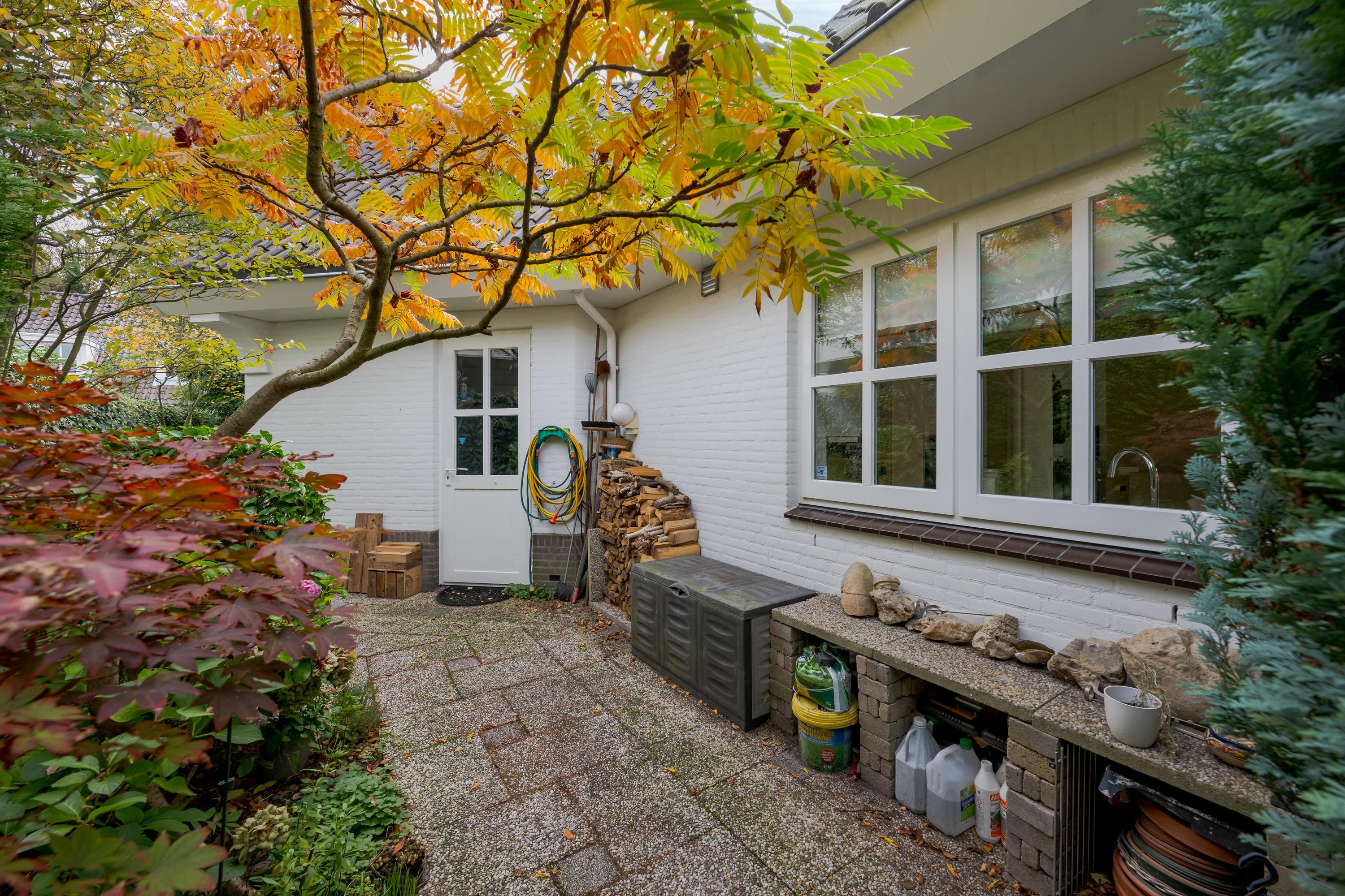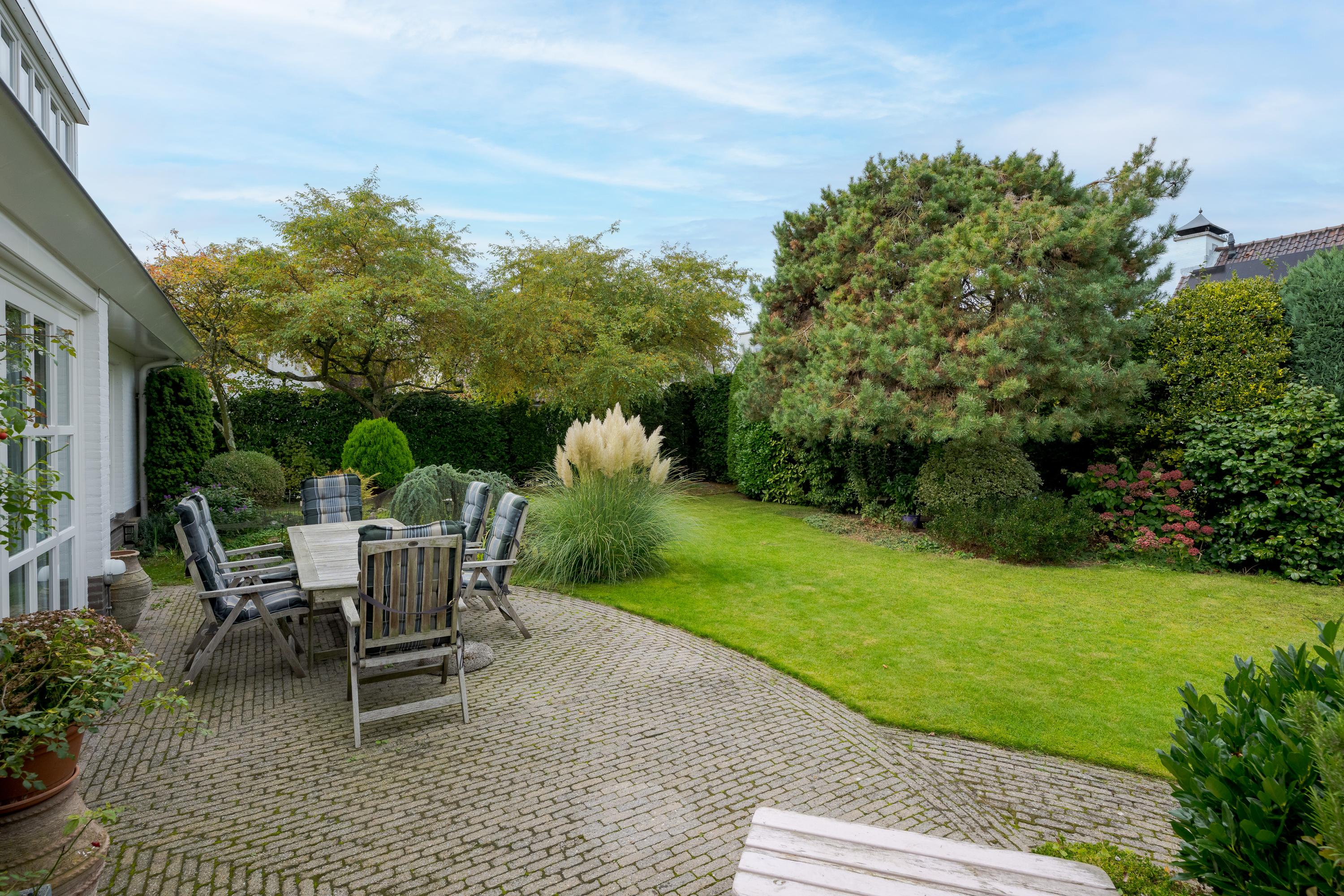 De fraai aangelegde tuin rondom biedt diverse terrassen en zithoeken, waar u de hele dag kunt kiezen tussen zon of schaduw. De volwassen beplanting zorgt voor volledige privacy en een groen uitzicht het hele jaar door.