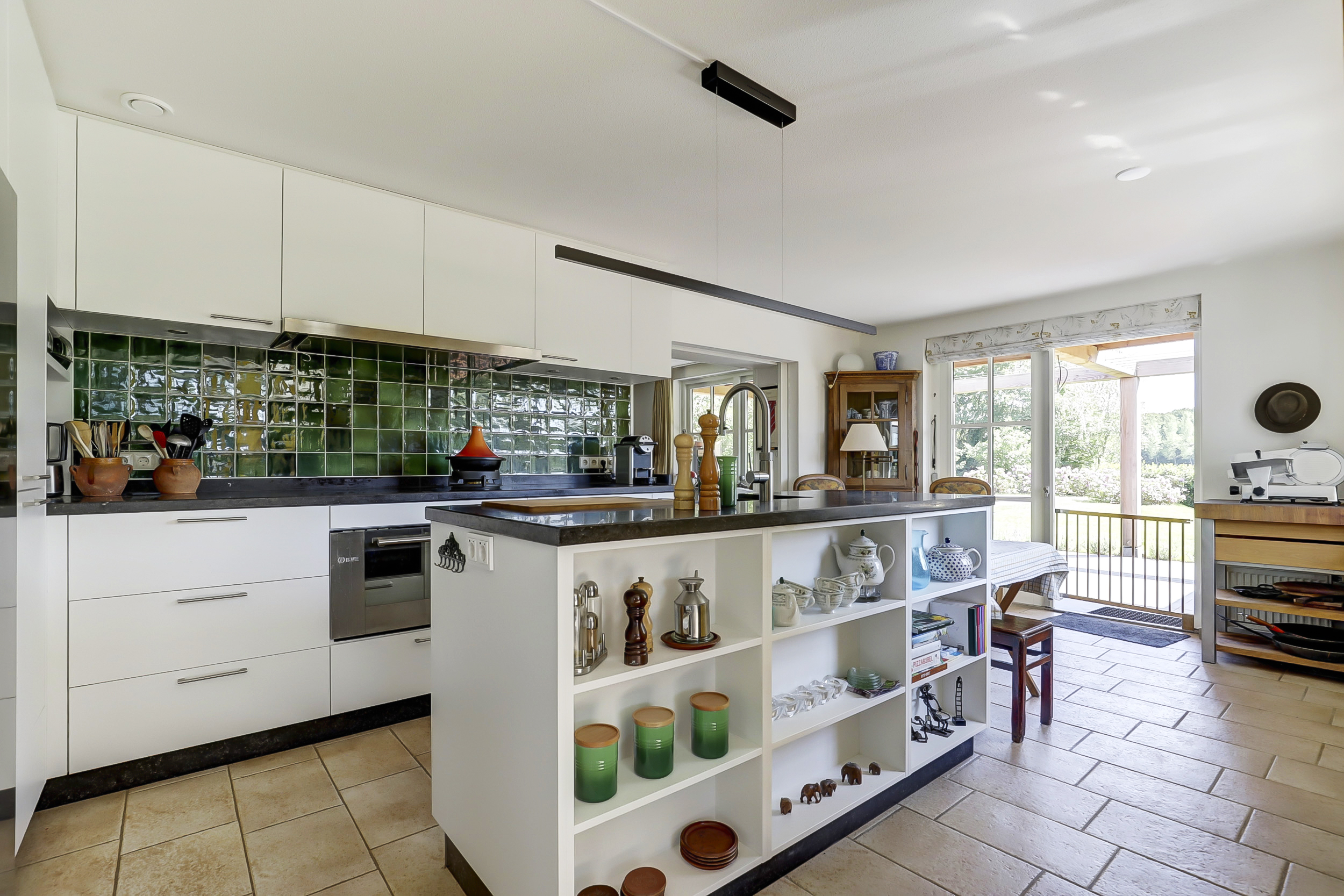 De keuken werd in 2023 geplaatst en is puntgaaf. De fronten zijn matwit en het werkblad is uitgevoerd in een stoer natuursteen. De keuken is van alle gemakken voorzien, zoals een 4-in-1 kokendwaterkraan (Quooker), een wijnklimaatkast, een koelvriescombinatie, afwasmachine, combimagnetron en een extra brede inductieplaat plus een gaswokbrander en heteluchtoven (90 cm).