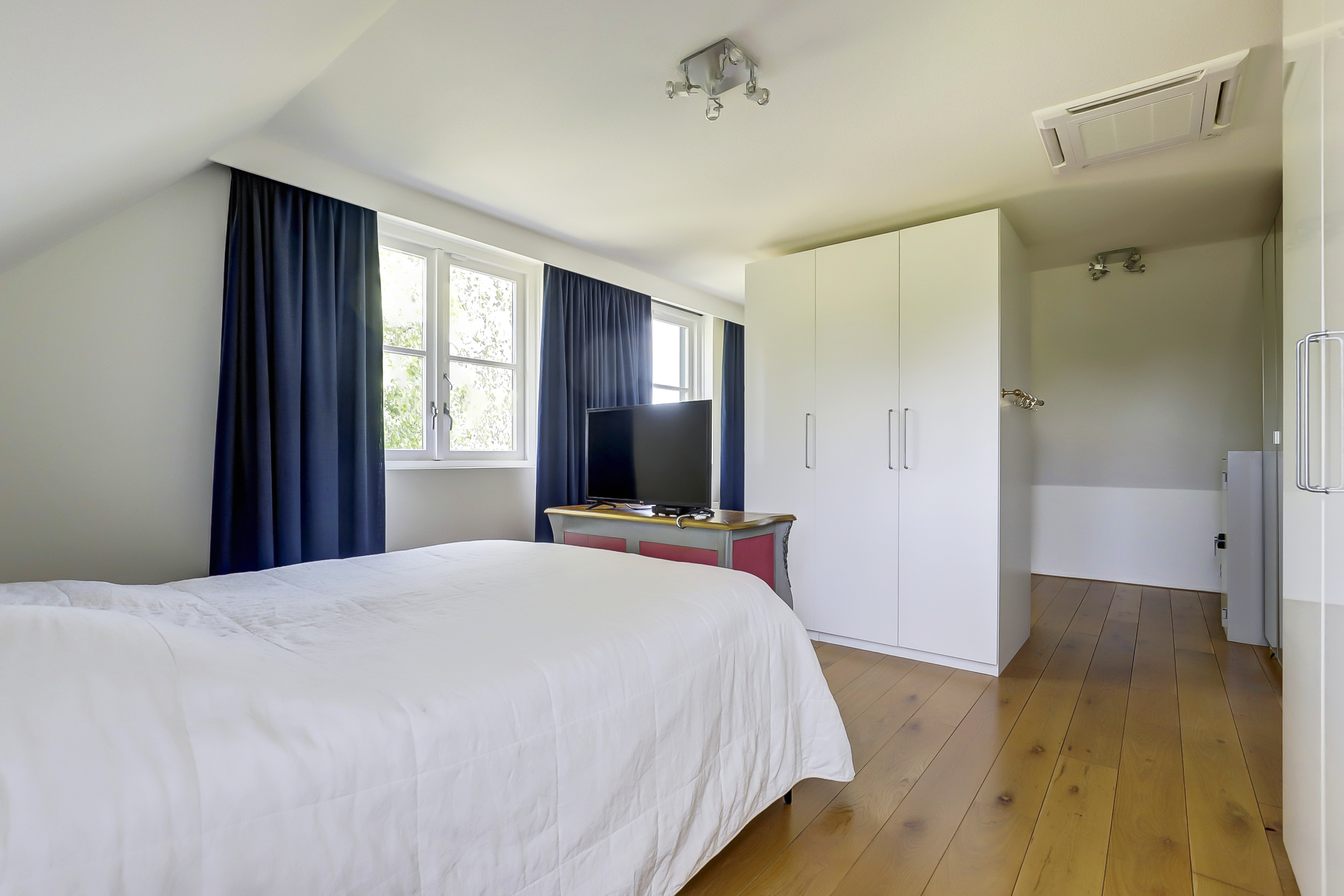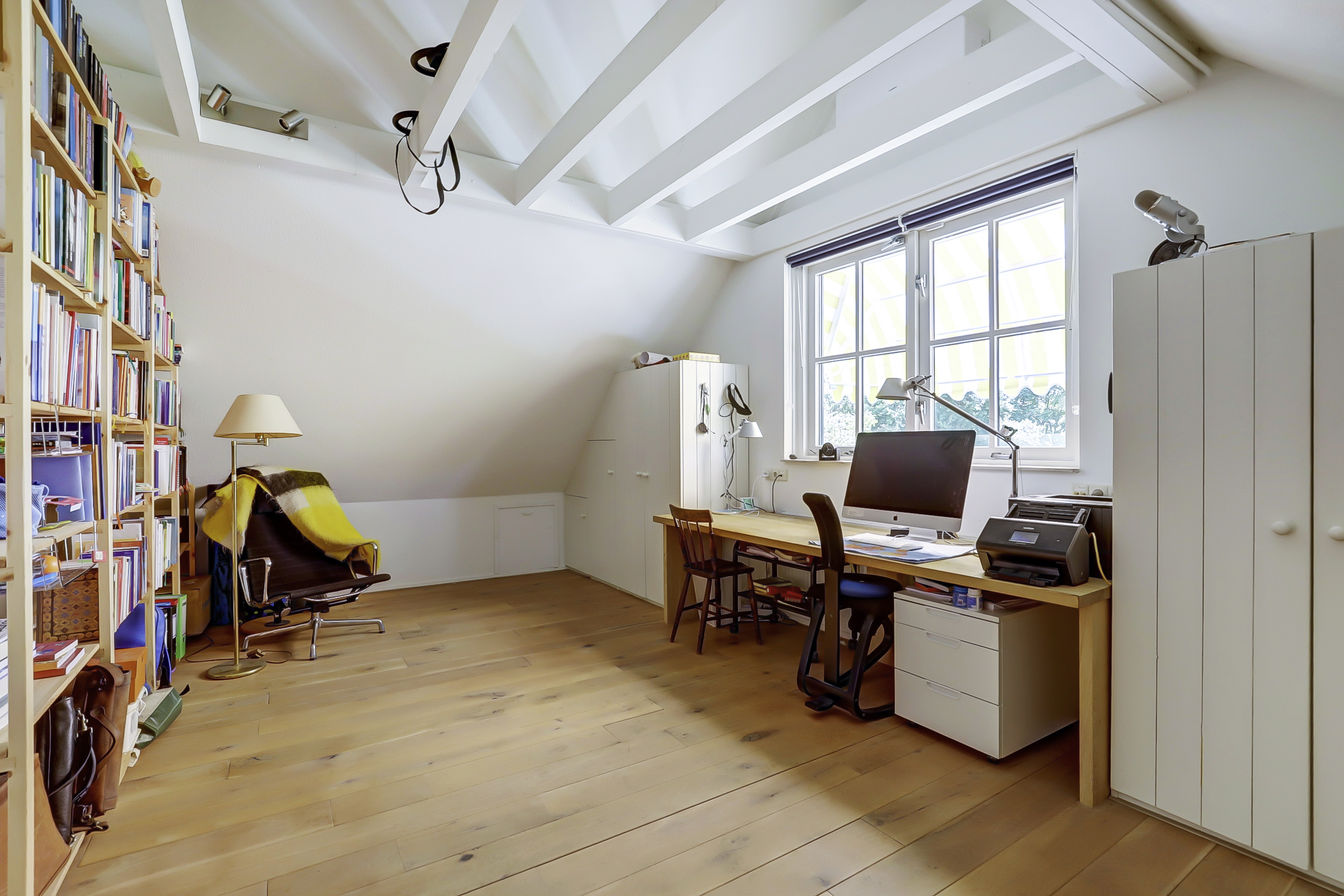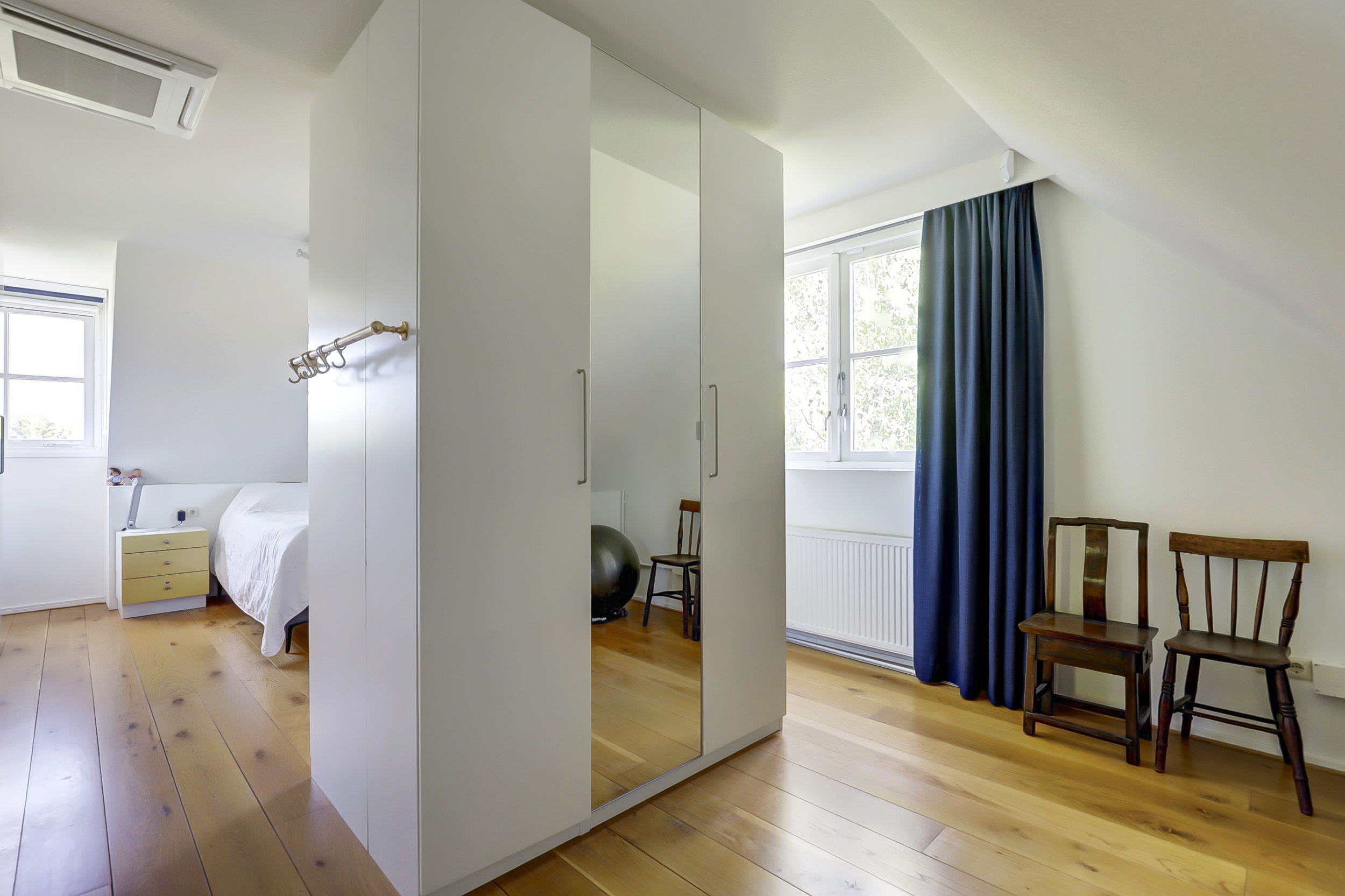 Wilt u graag meer kamers? Door het volume van de vertrekken is het goed denkbaar dat u één of twee kamers splitst. De ouderslaapkamer en huidige studeerkamer boven is voorzien van airconditioning.