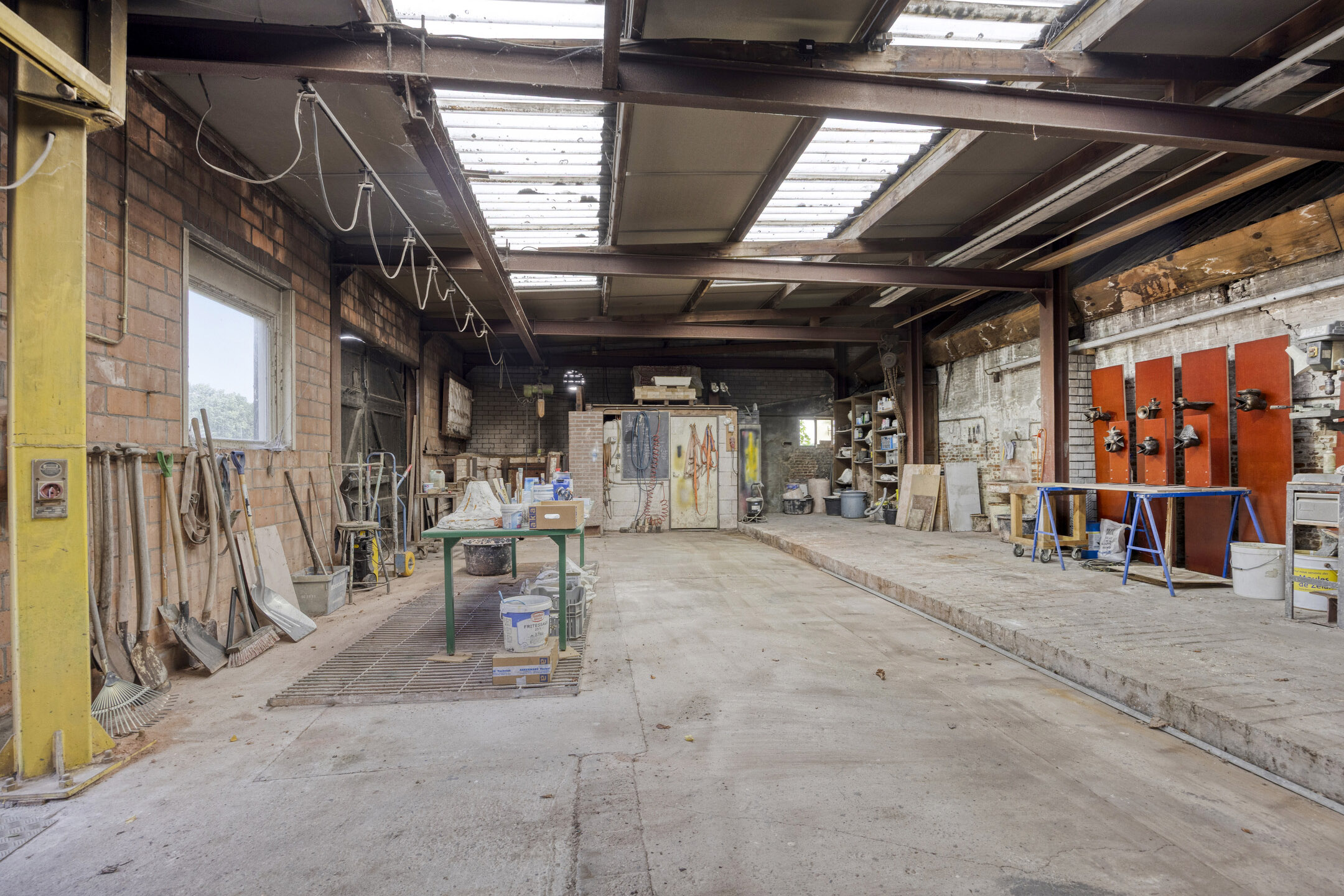 Buitenshuis zijn een 2-tal royale schuren aanwezig van ca. 302 en 49 m² waarvan de grote schuur de originele kap nog grotendeels in het zicht heeft. Bijzonder stoer met de volledige houten constructie in beeld. Een bijzondere plek om te werken, maar ook zeker een unieke plek voor zo nu en dan een feestje!