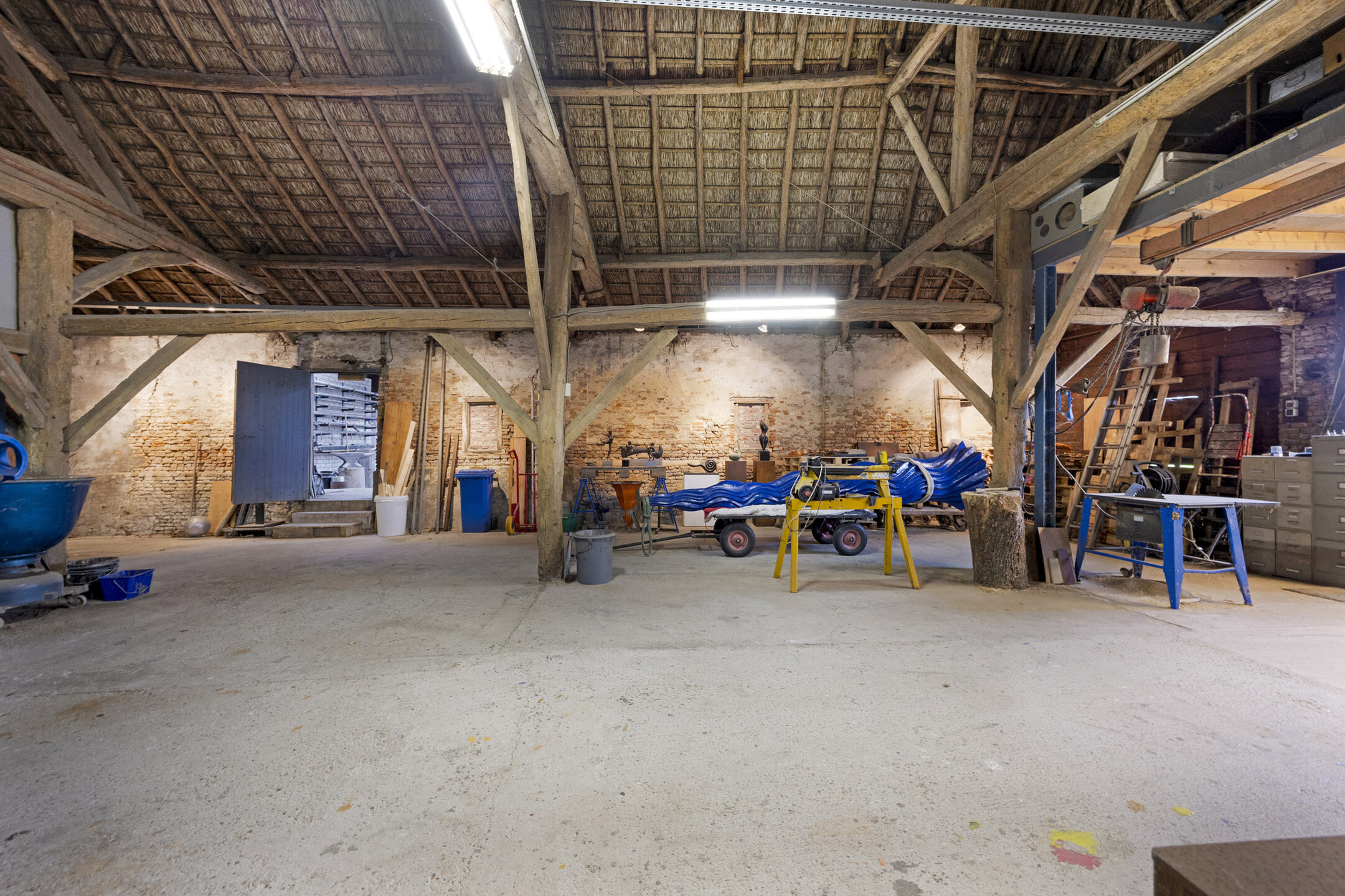 inpandig atelier als gesitueerd aan de voorzijde van de woonboerderij (ca. 87 m²), multifunctioneel in te richten / te gebruiken voor meerdere doeleinden, voorzien een keukenblok, een 2e trap naar de 1e verdieping, tuindeuren naar tuin/terras, loopdeur naar oprit, wandafwerking stucwerk, betonvloer en deels bestrating, balkenplafond.