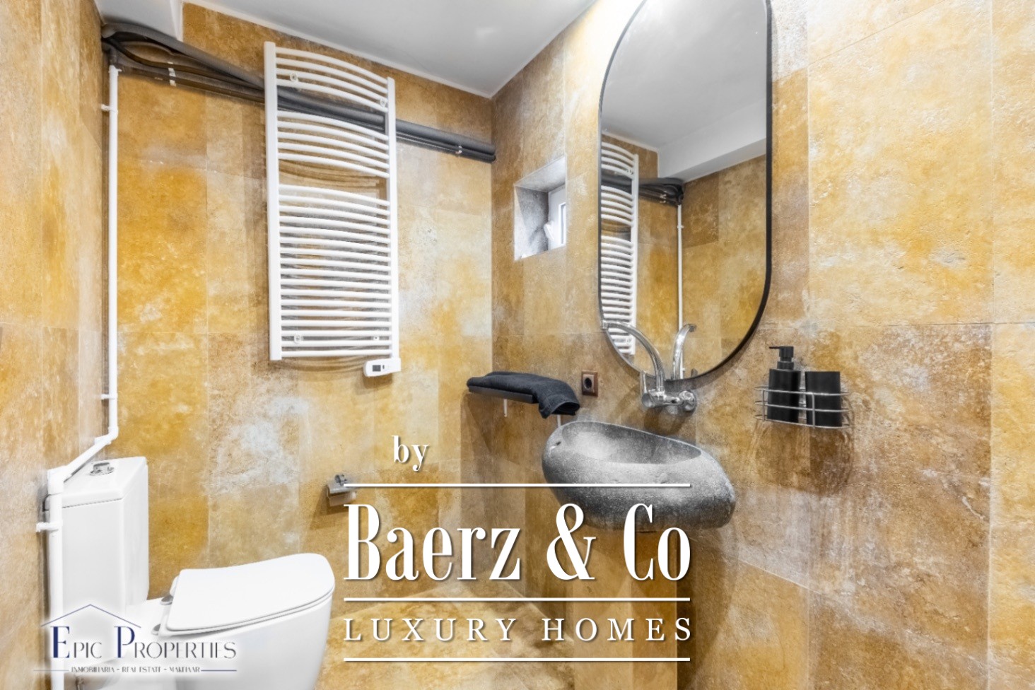 Отдельно от основной резиденции расположен гостевой дом с двумя этажами и приватным доступом на каждый уровень, предлагая гибкость размещения. Первый этаж открыт и наполнен атмосферой покоя с спальней, ванной комнатой и выходом к бассейну. Второй уровень включает в себя гостиную, кухню, спальню, ванную комнату и балкон с панорамными видами на море — идеальное сочетание приватности и гостеприимства.