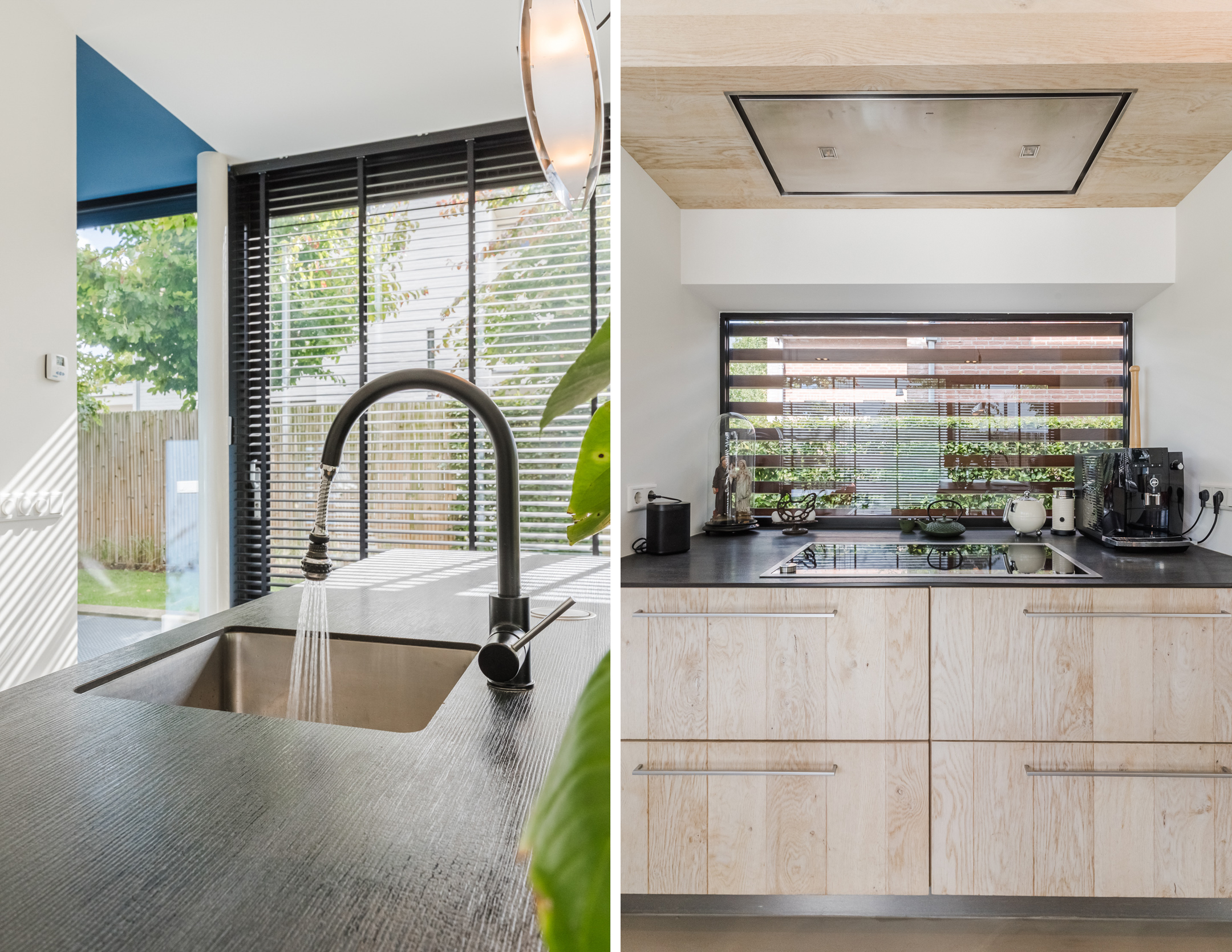 Основные жилые пространства поражают масштабом и открытостью: высокие потолки, панорамные окна от пола до потолка, плавные переходы на просторные террасы. На первом этаже более 100 м² отведено для общения и уединения—от открытой кухни с посудомоечной машиной Gaggenau и широким холодильником до залитых светом гостиных и многофункционального помещения, подходящего под студию или кабинет. Каждая зона поддерживает визуальную связь с садом на юго-востоке и крытой террасой, где через специально выполненное отверстие в кровле гармонично растет дерево.