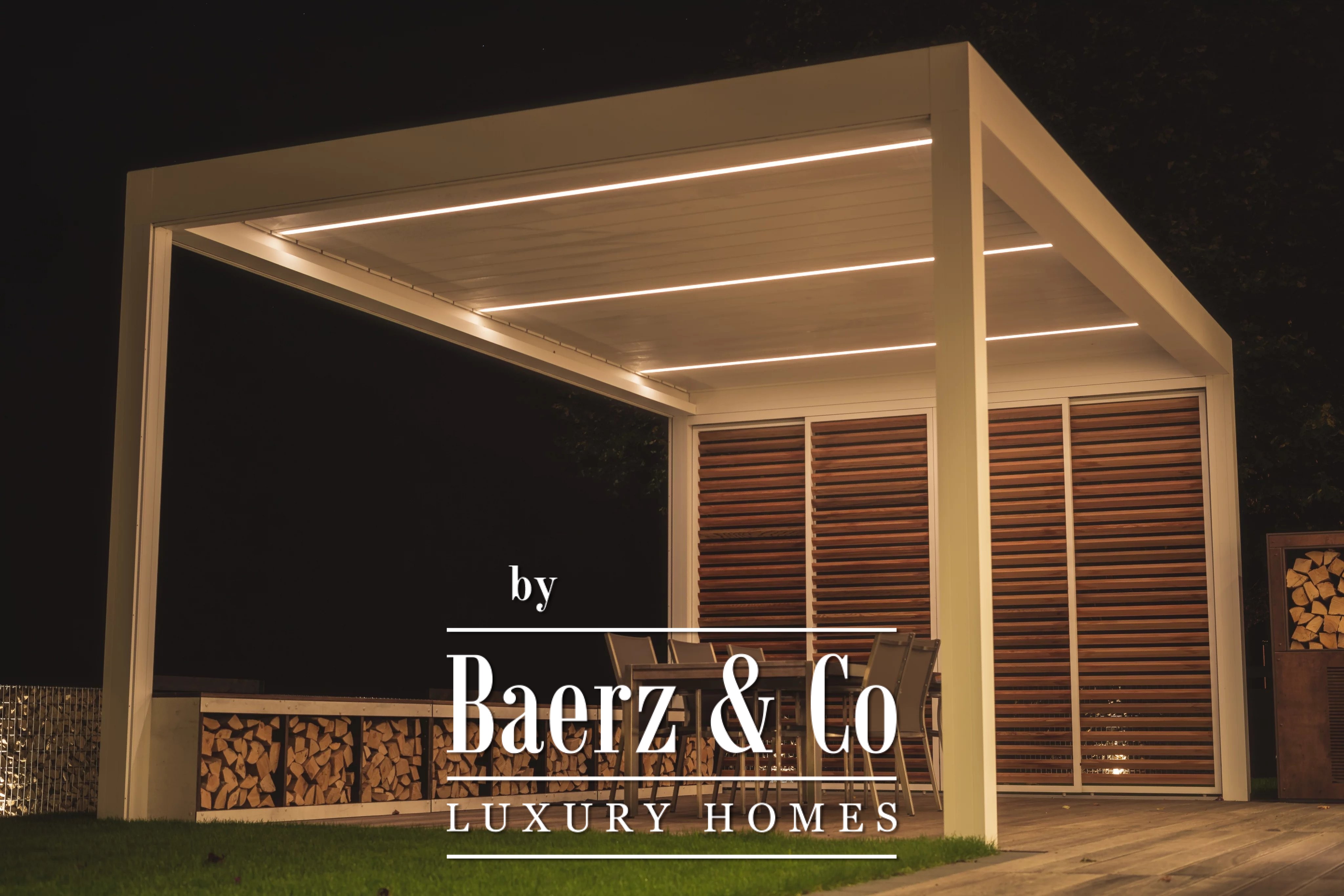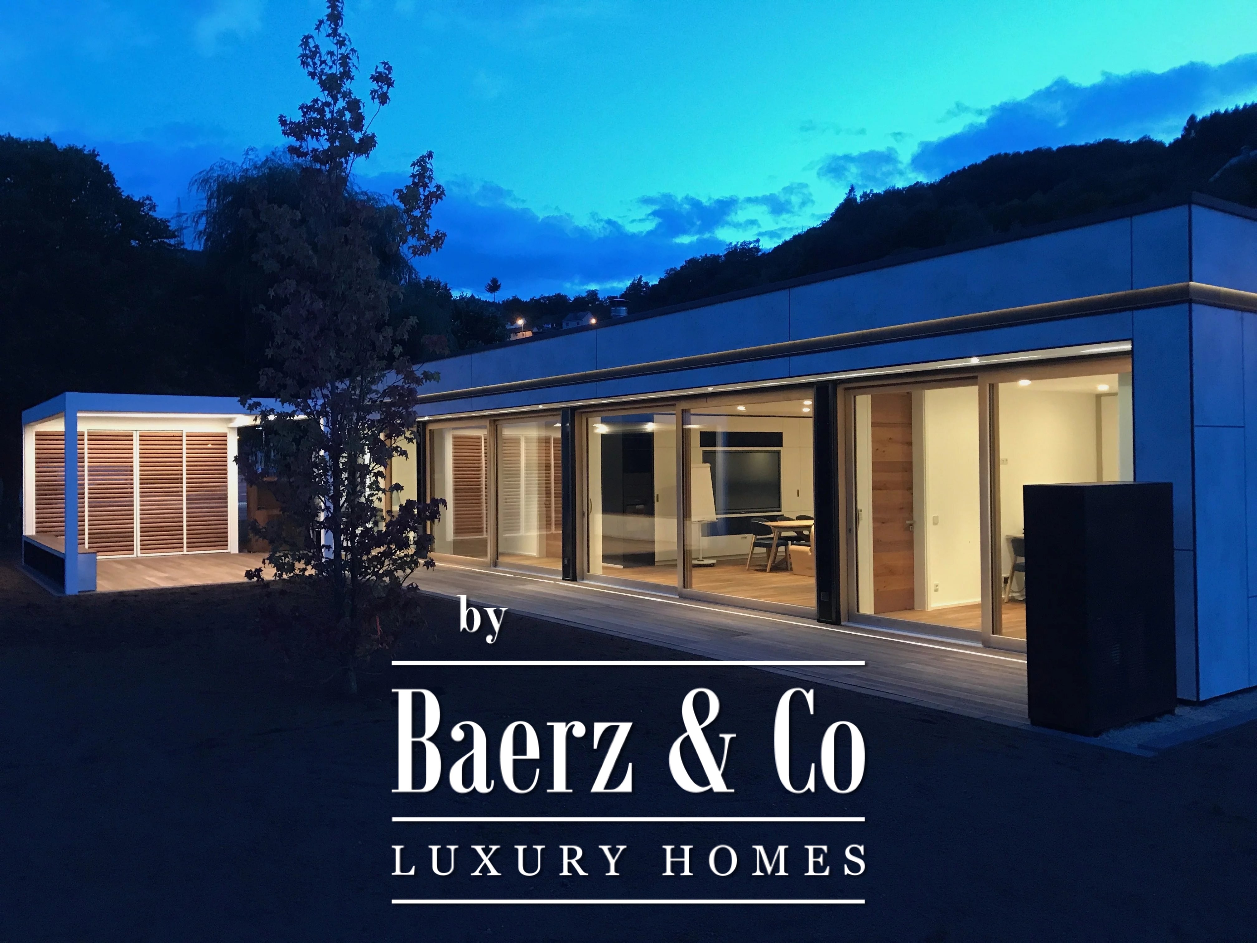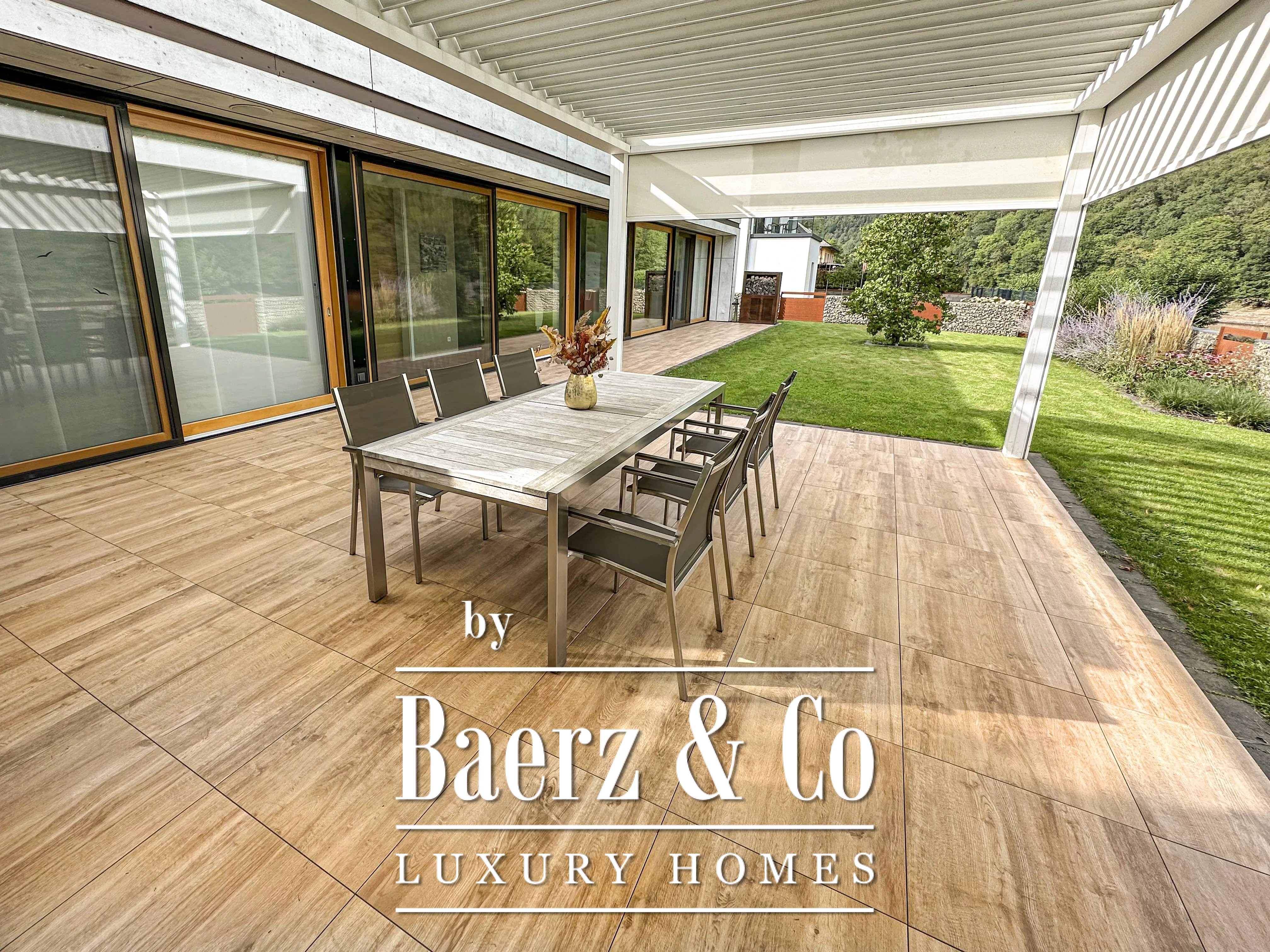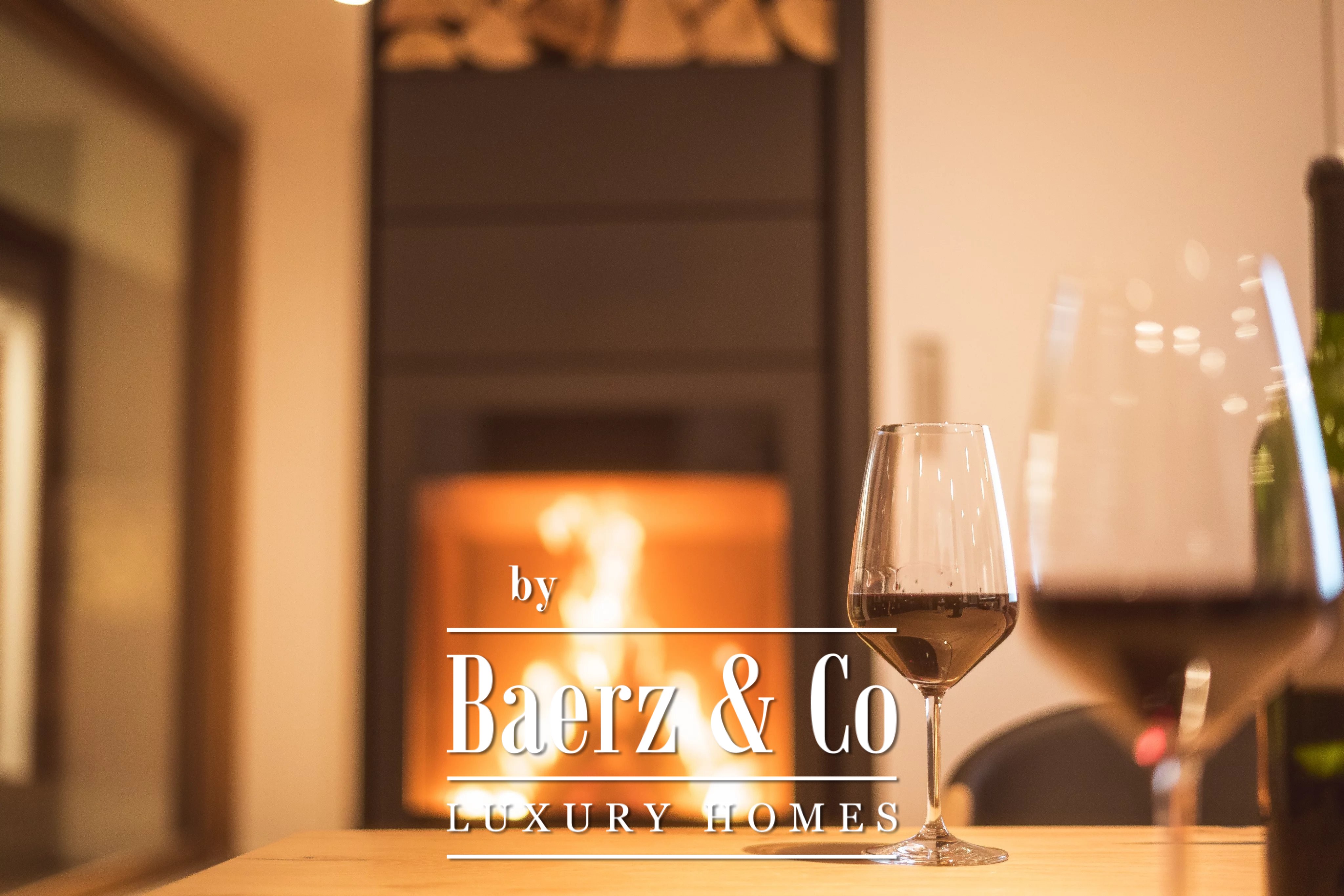 В интерьере акцент сделан на комфорт и точность. Резиденция полностью меблирована и оснащена бытовой техникой высокого класса, включая холодильник, посудомоечную машину, духовой шкаф и микроволновую печь. Такие детали, как тройное остекление, умный термостат, электрические жалюзи и продвинутая система автоматизации, придают дому тихую эффективность. Кондиционер и приточно-вытяжная вентиляция поддерживают оптимальный микроклимат, а оптоволоконный интернет и видеодомофон обеспечивают современный комфорт.