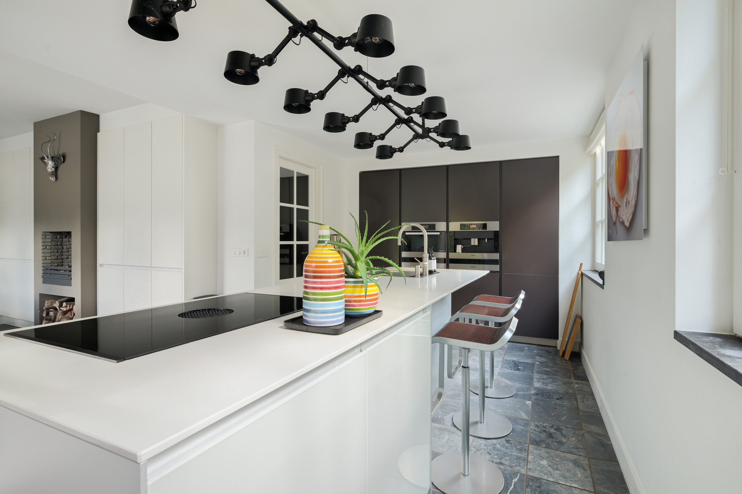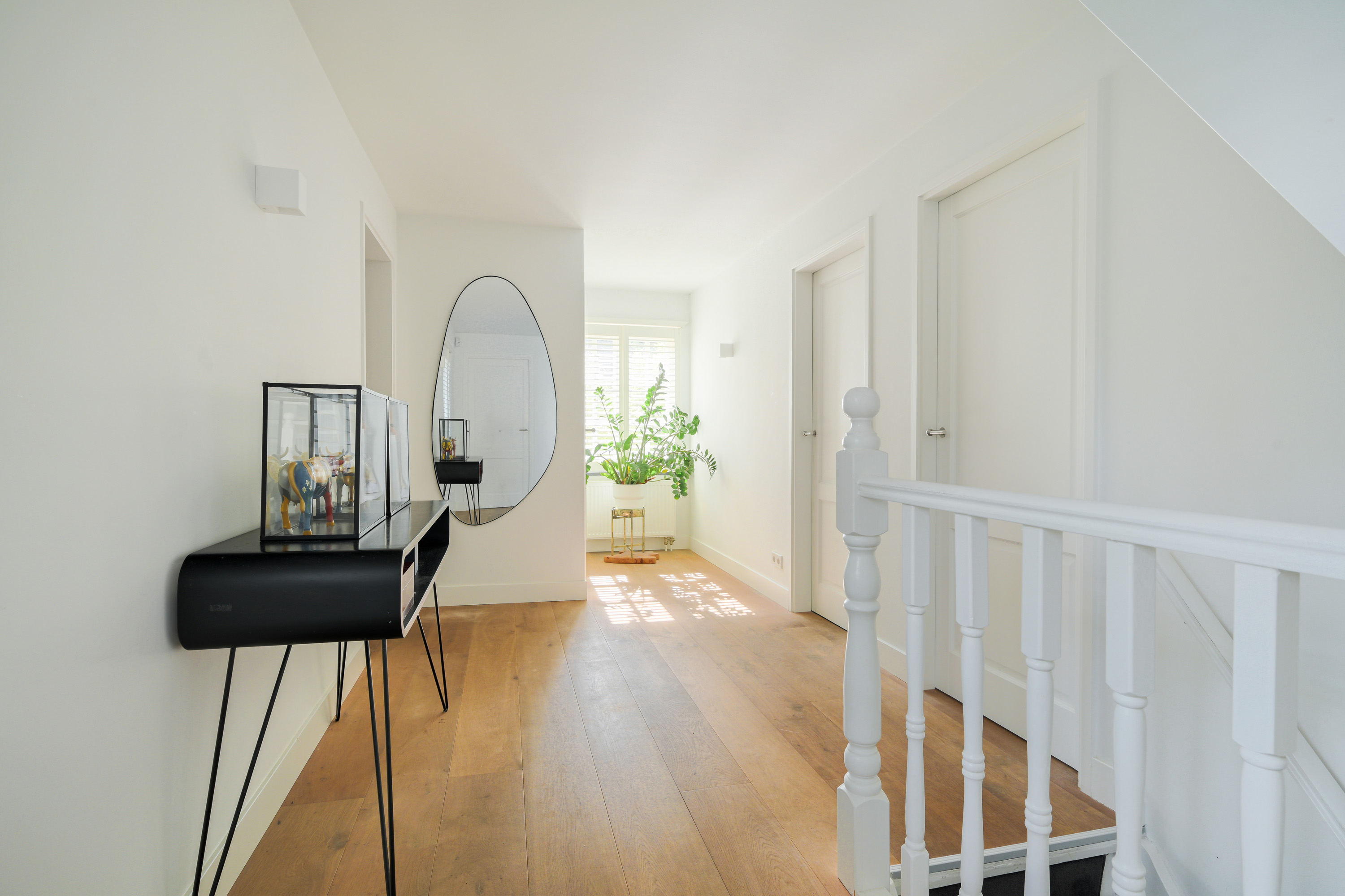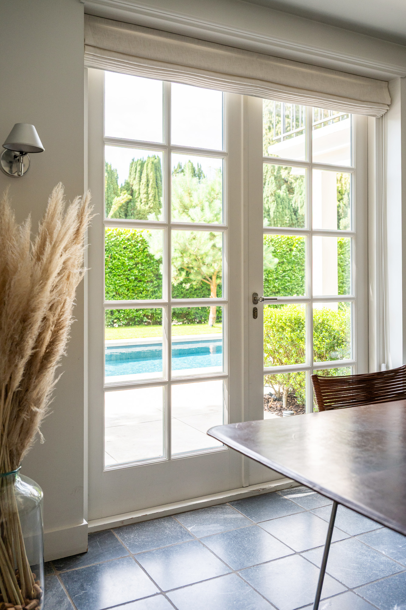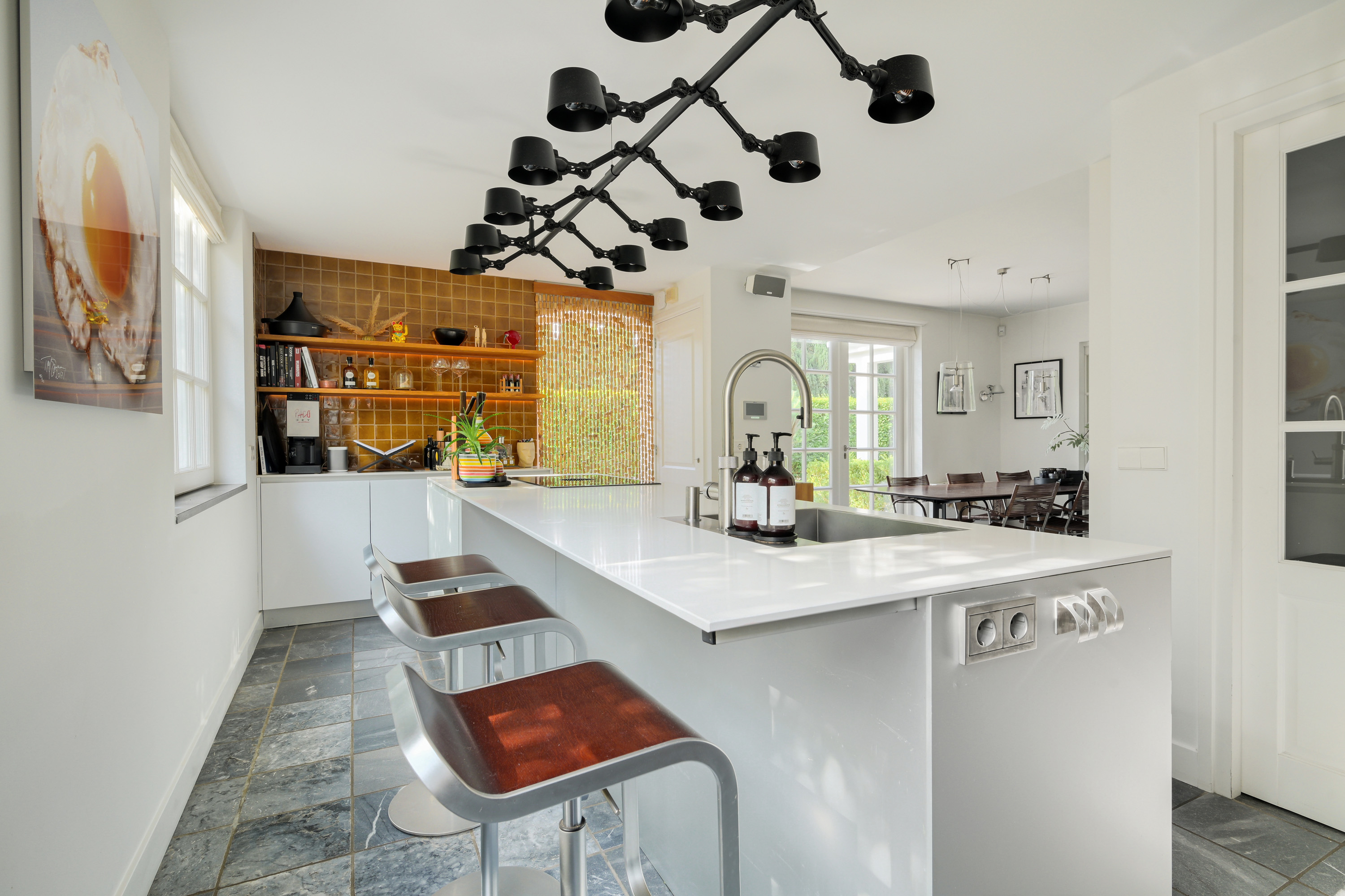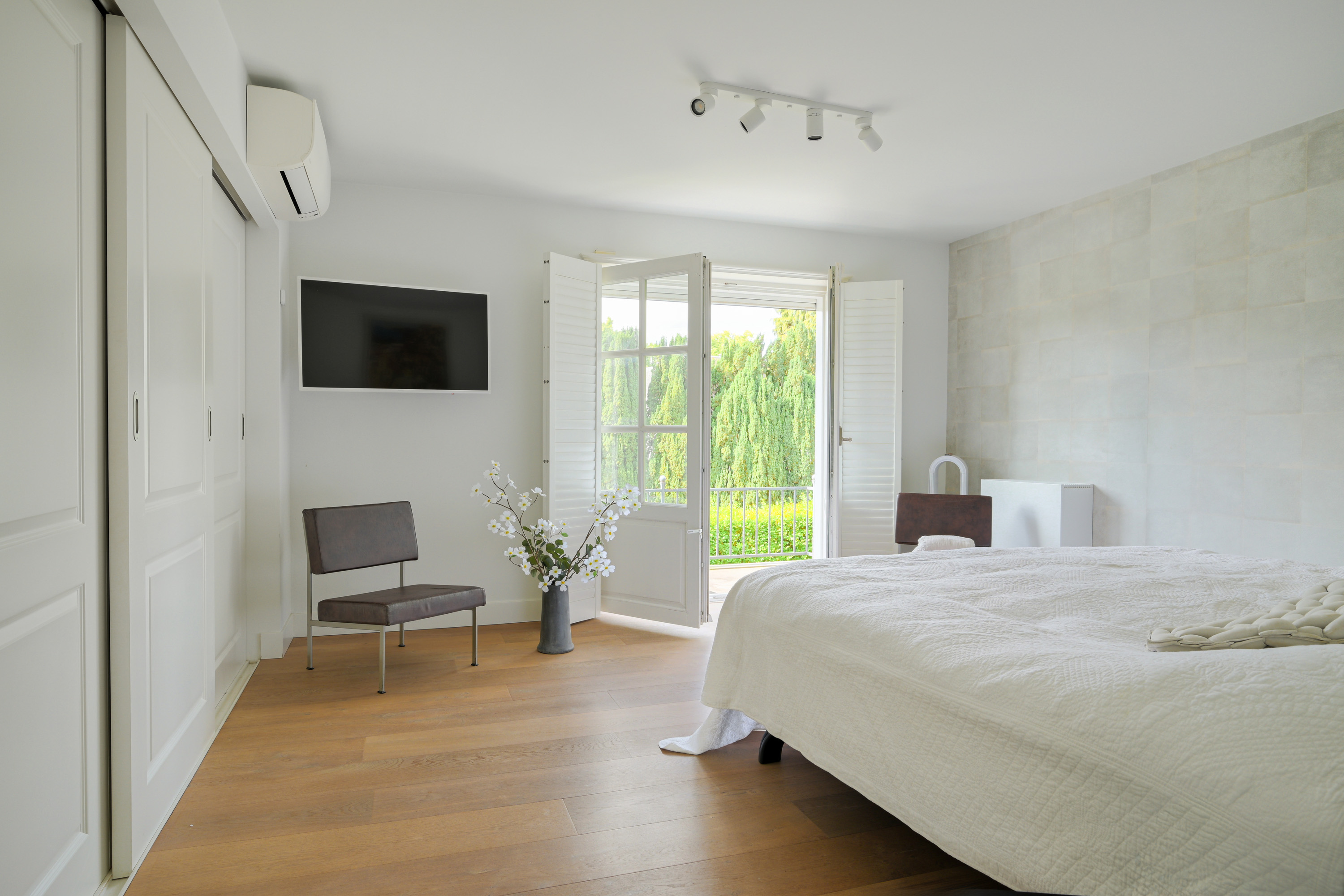 Открытая планировка ведёт вас через выразительный вестибюль в светлые помещения, наполненные естественным светом. Широкие деревянные половицы создают спокойную цельность во всех зонах, а французские двери обеспечивают плавное соединение между интерьером и зелёными садами. Гостиная и столовая ориентированы на сад, открывая многослойные виды и гармоничный ритм — как для семейной жизни, так и для приватных встреч. Индивидуальная кухня Valcucine оснащена высокотехнологичной техникой, композитными столешницами и центральным островом, формируя функциональное и гостеприимное пространство в доме.