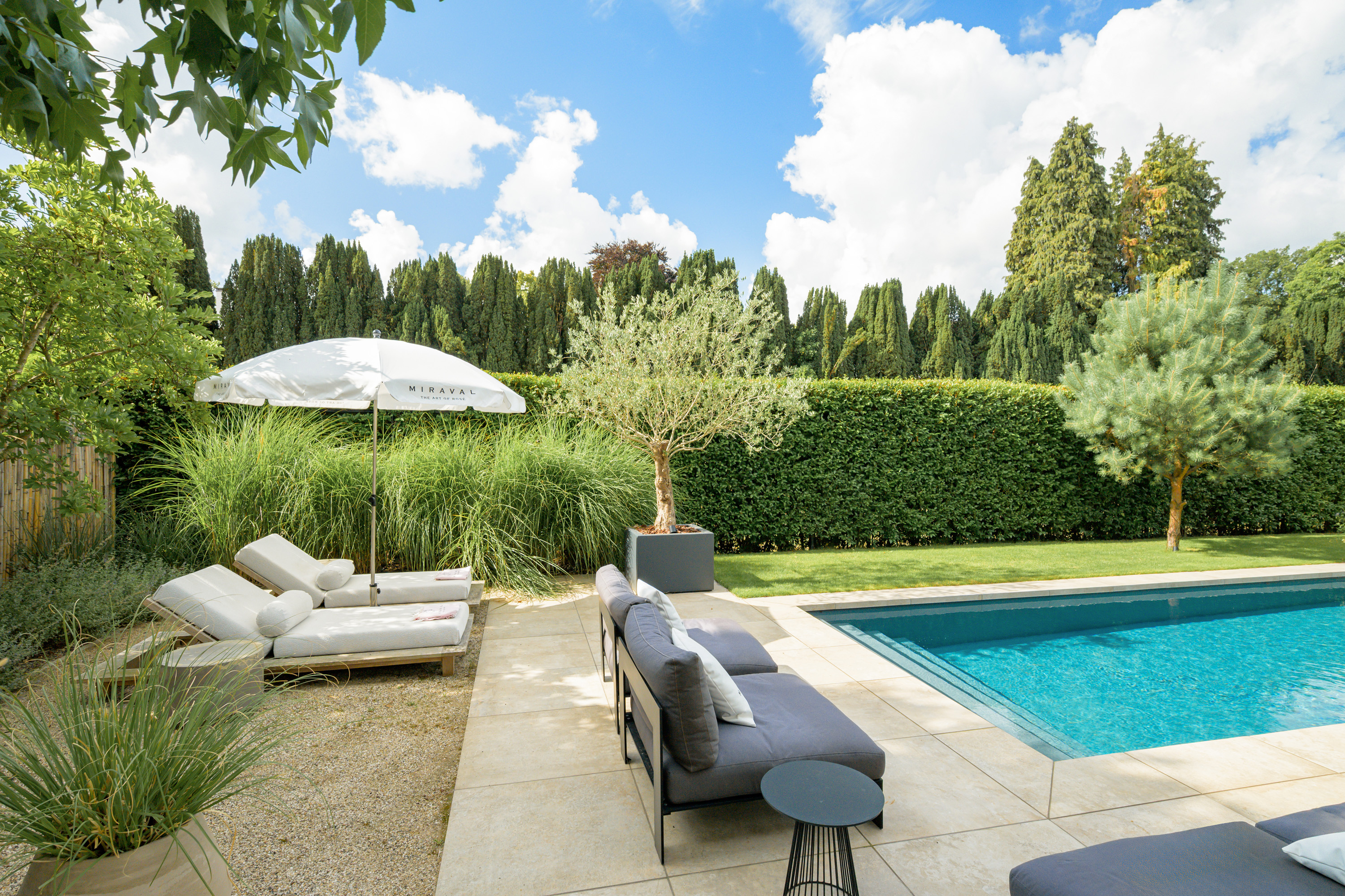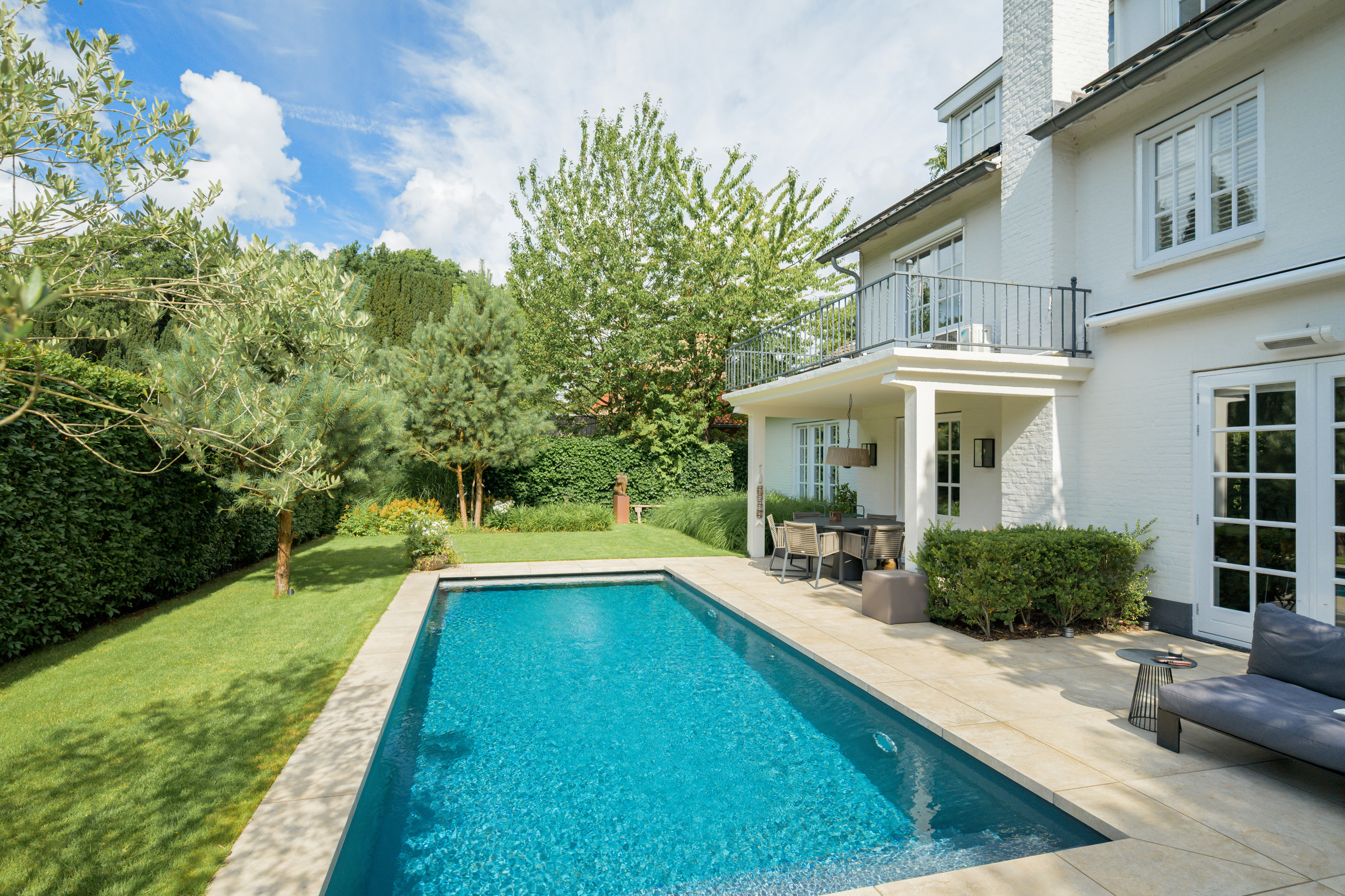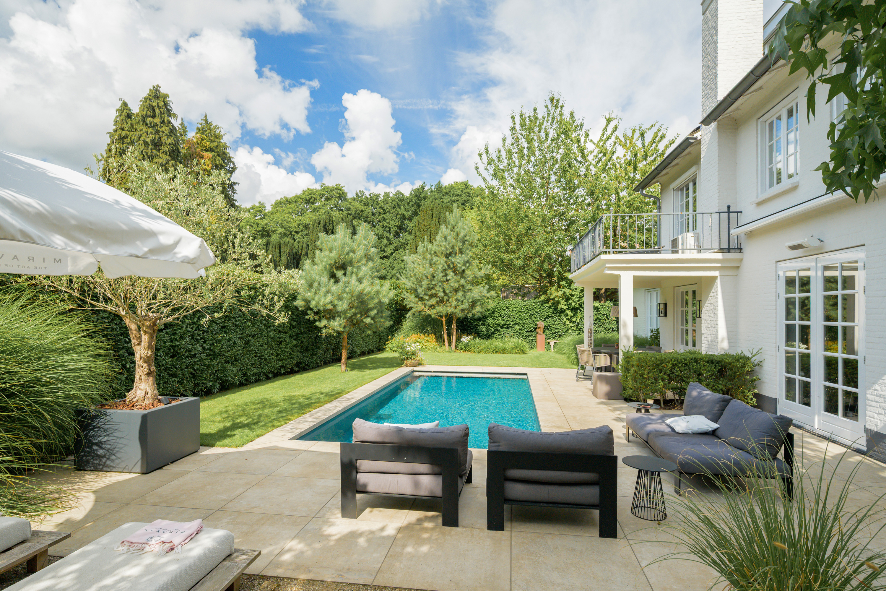 На участке площадью 660 м² ландшафт под руководством Ronnie Renette включает элегантный подогреваемый бассейн, террасы с орнаментальными травами и зрелыми деревьями для полной приватности. Хозяйственная постройка даёт надёжное место для хранения вещей, полностью автоматизированную систему бассейна и доступ в гараж. Электрические ворота обеспечивают парковку для нескольких машин, гарантируя удобство и уединение.