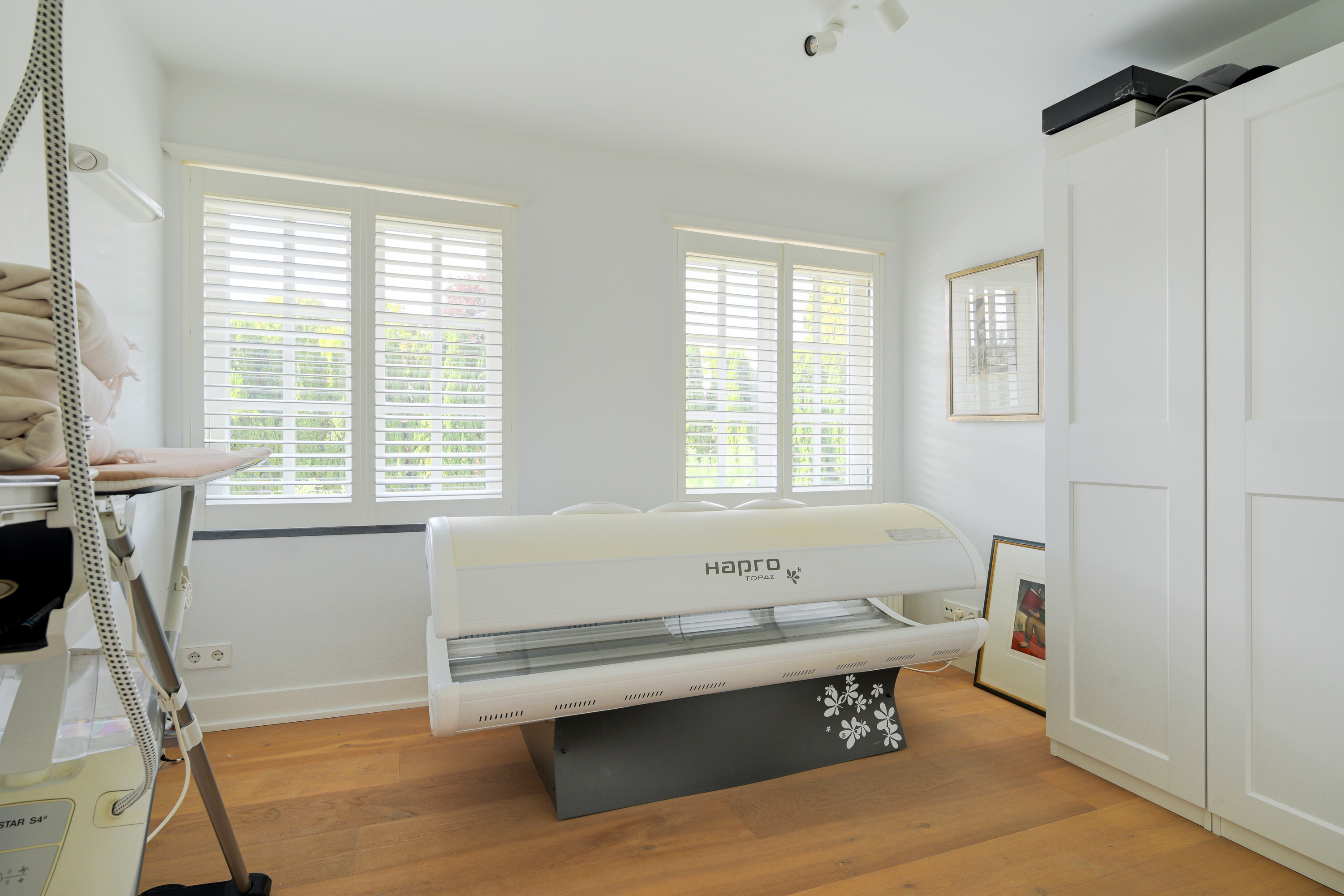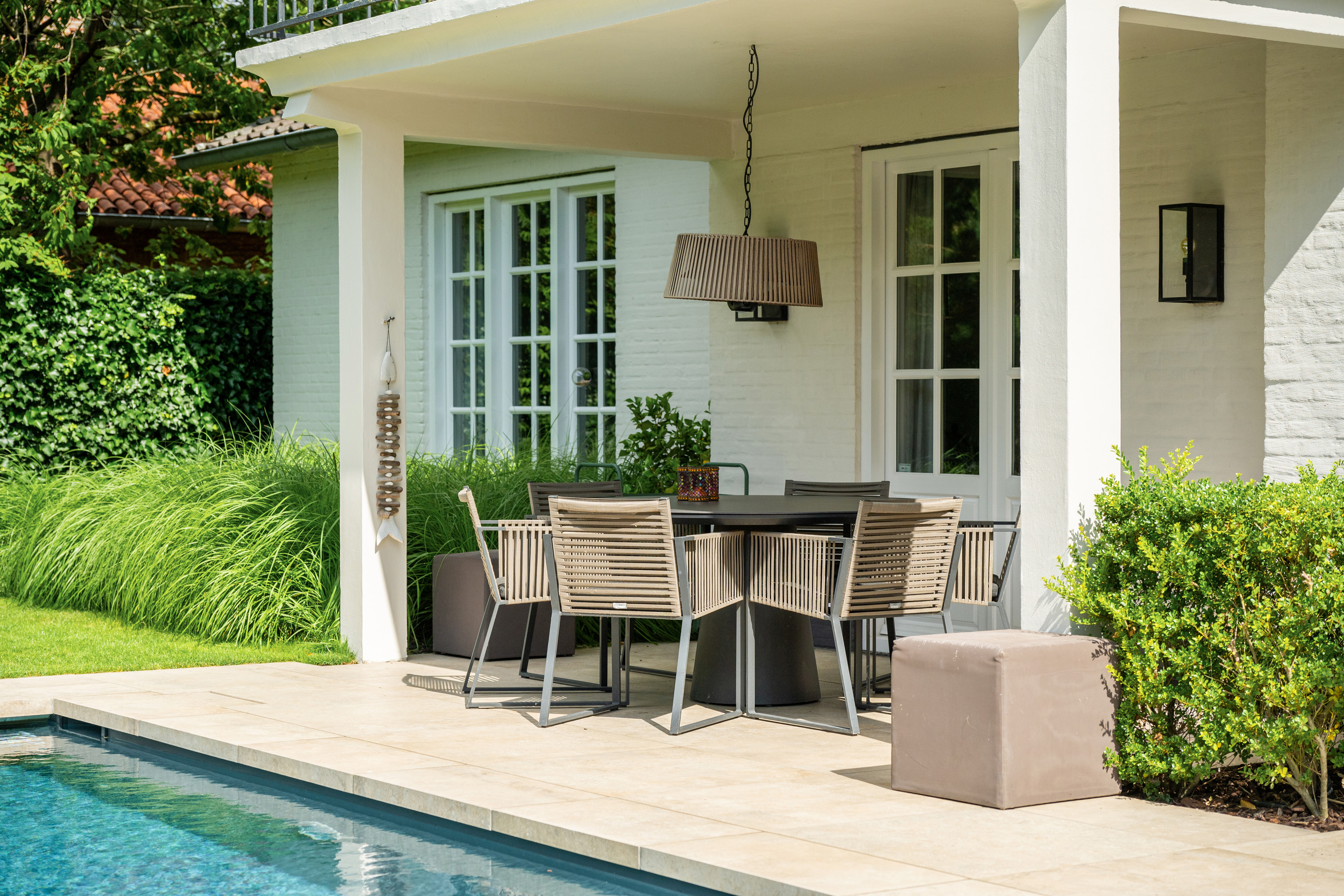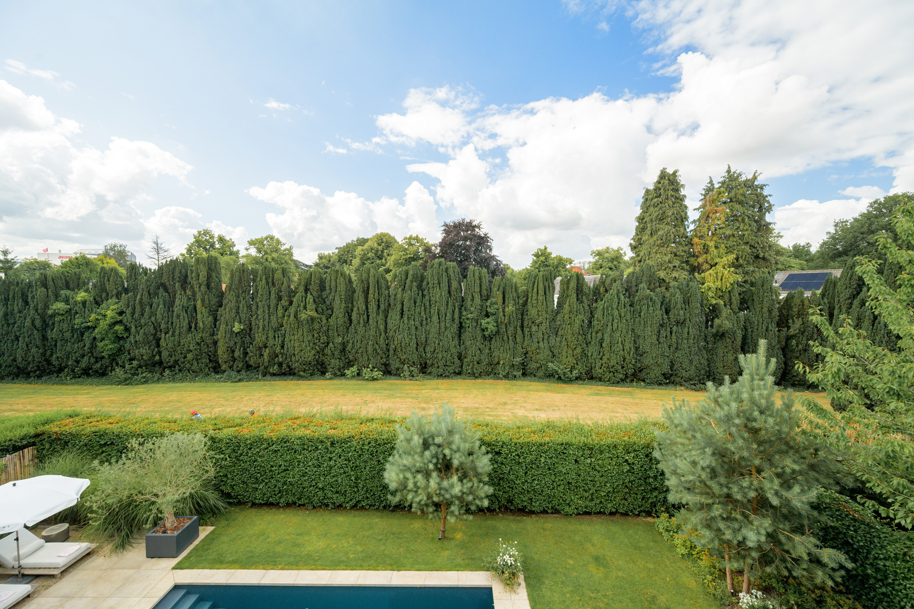 На участке площадью 660 м² ландшафт под руководством Ronnie Renette включает элегантный подогреваемый бассейн, террасы с орнаментальными травами и зрелыми деревьями для полной приватности. Хозяйственная постройка даёт надёжное место для хранения вещей, полностью автоматизированную систему бассейна и доступ в гараж. Электрические ворота обеспечивают парковку для нескольких машин, гарантируя удобство и уединение.