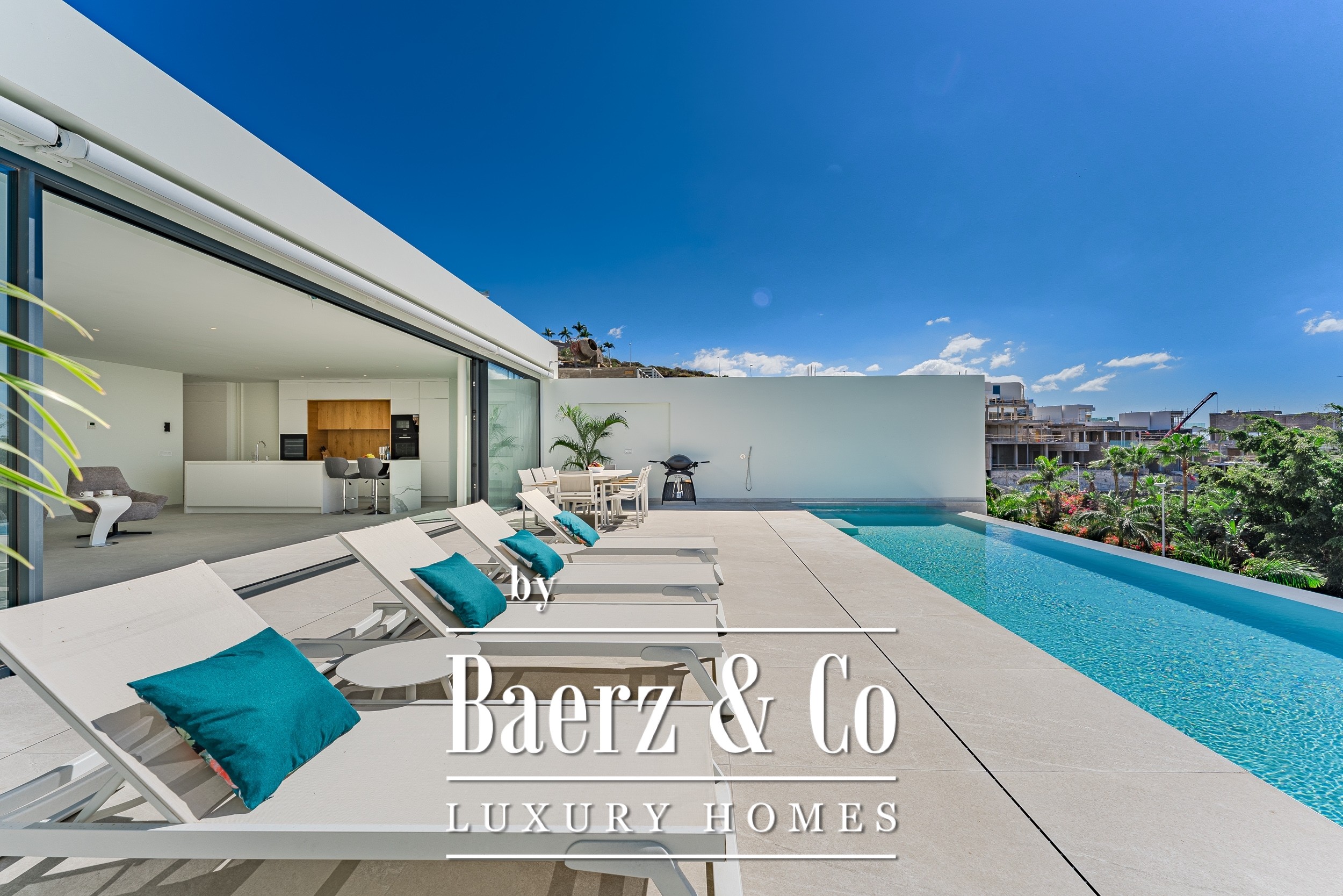 Обрамленная панорамными видами на океан в сторону Ла Гомеры, вилла расположена на трех уровнях, наполненных естественным светом благодаря окнам от пола до потолка, что формирует мягкую, залитую солнцем атмосферу. Открытая планировка включает четыре просторные спальни, пять ванных комнат, элегантные гардеробные и многофункциональные пространства, где каждый элемент проработан и выполнен из материалов высшего качества. Террасы и патио объединяют внутренние и внешние зоны, а панорамный бассейн-инфинити устремляется к горизонту, создавая ощущение полной релаксации без преград.