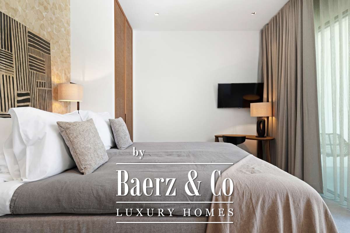 Пять просторных спален с ванными комнатами располагаются на нижнем уровне, каждая с выходом на собственный балкон или террасу с видом на обширные тропические сады и бассейн. Главные спальни выходят на тихий сад и имеют прямой доступ к террасе у бассейна. По всей вилле наличие теплых полов, кондиционирования воздуха, двойного остекления и полной системы сигнализации обеспечивает комфорт и спокойствие.