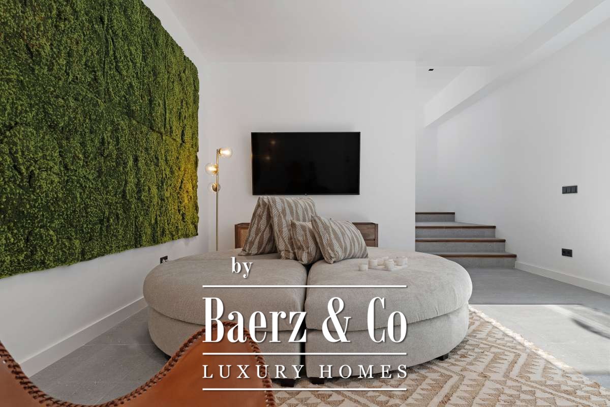 Под открытым небом раскрывается истинный стиль жизни в Can Furnet. Главный бассейн с интегрированной джакузи, окружённый пальмами, создает атмосферу спа. Множество лежаков, балийская кровать и встроенные зоны отдыха формируют идеальные пространства для релаксации. Поднимитесь на террасу на крыше, чтобы насладиться панорамными видами и вторым бескрайним бассейном — идеальным для приватных праздников или тихих вечеров с панорамой Дальт Вила. Парковка, охраняемый периметр, безупречные отделки и полная меблировка позволяют въехать сразу и без хлопот — для тех, кто ищет эксклюзивную виллу в самом динамичном сердце Ивисы.
