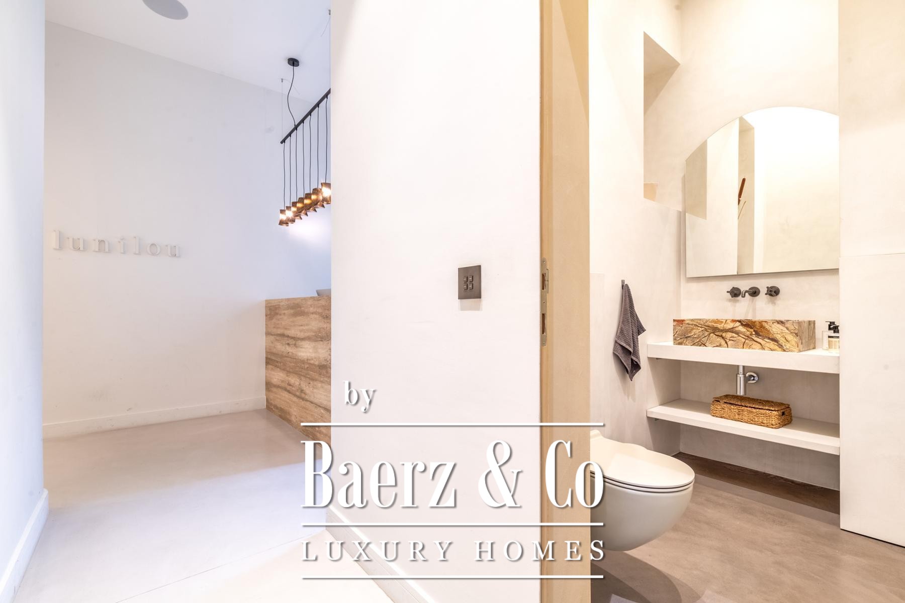 В интерьерах проведена комплексная реконструкция: усиленные монолитные перекрытия, бесшовные эпоксидные полы, современное столярное оформление, теплый пол и интегрированная система кондиционирования. Оба помещения наполнены естественным светом, чему способствуют высокие потолки и представительный вход, создавая атмосферу простора и уюта. В настоящее время недвижимость используется для представительного бизнес-направления, однако пространство идеально подходит для размещения офисов, консультационных или медицинских кабинетов. По желанию возможно преобразование в просторные роскошные апартаменты с четырьмя спальнями и четырьмя ванными комнатами.
