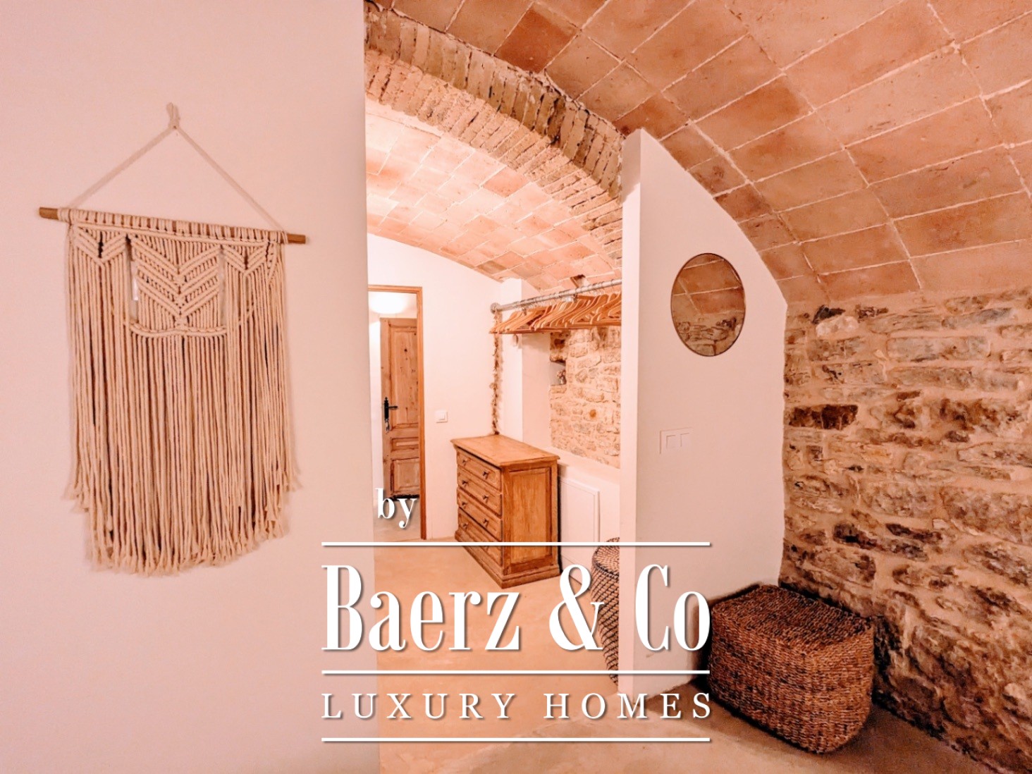 В жилом пространстве площадью 1 000 м² главное здание дышит благодаря сводчатым потолкам, отполированному бетону, природному камню и массивному дубу. Античные каменные полы формируют атмосферу при входе, открытые планировки наполняют пространство спокойствием и способствуют общению. Усадьба разделена на три секции: оригинальный фермерский дом площадью 650 м²; частная резиденция в 150 м²; и апартаменты для обслуживающего персонала площадью 200 м². В девяти спальнях и восьми ванных комнатах предусмотрены гостевые люксы с отдельными террасами и выходом в сад. Крытая и открытая террасы, профессиональная кухня и оригинальные камины дарят комфорт в любое время года.