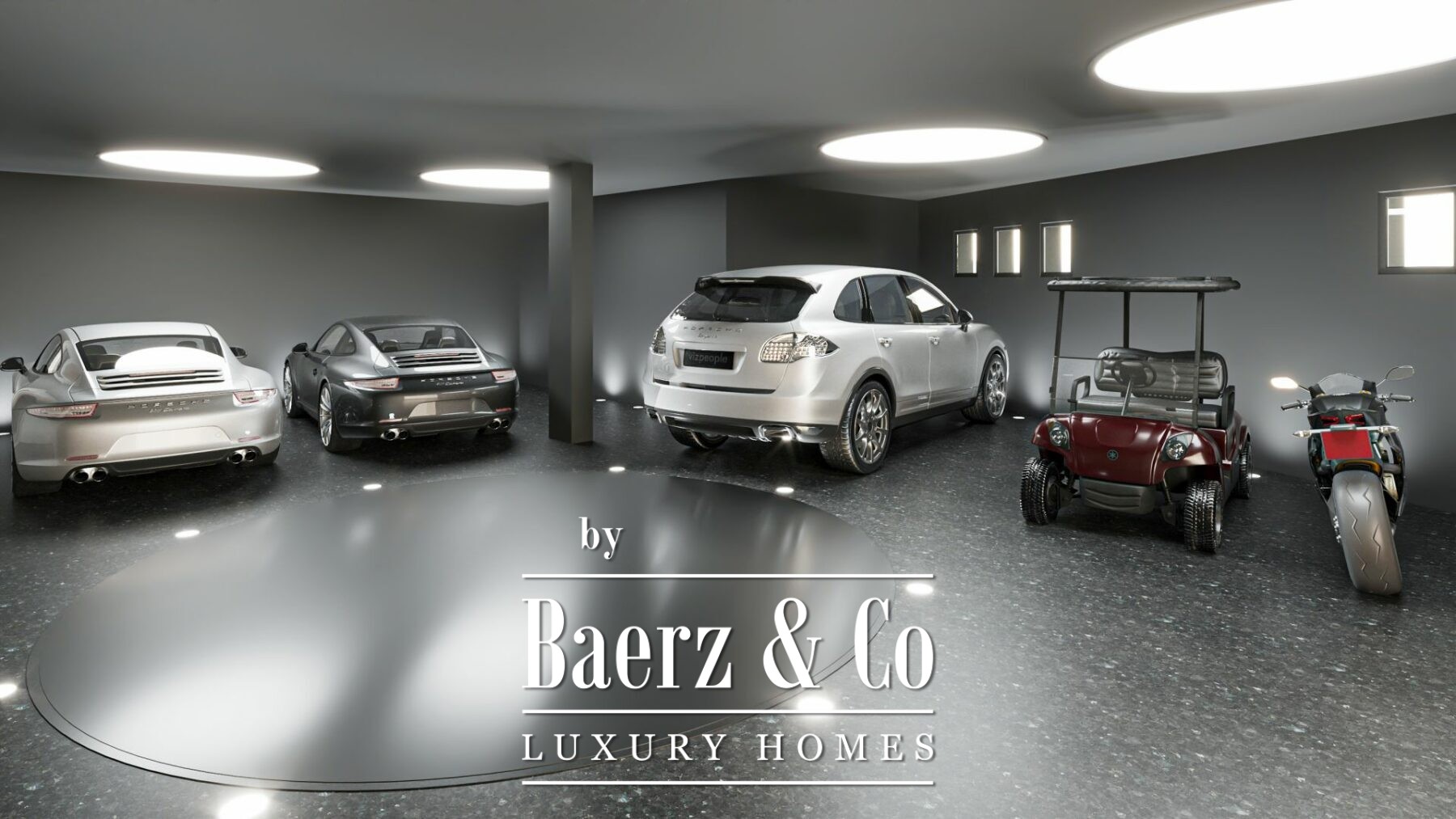 В цоколе площадью 250 м² высокие потолки создают ощущение простора, где сливаются отдых и досуг. Здесь располагается приватный кинозал, спа-зона с сауной и парной комнатой, полностью оснащённый тренажерный зал и винный погреб. Просторный и функционально организованный гараж с вращающейся платформой для автомобилей обеспечивает легкость доступа и объединяет внутренние пространства с тихим ландшафтным садом.